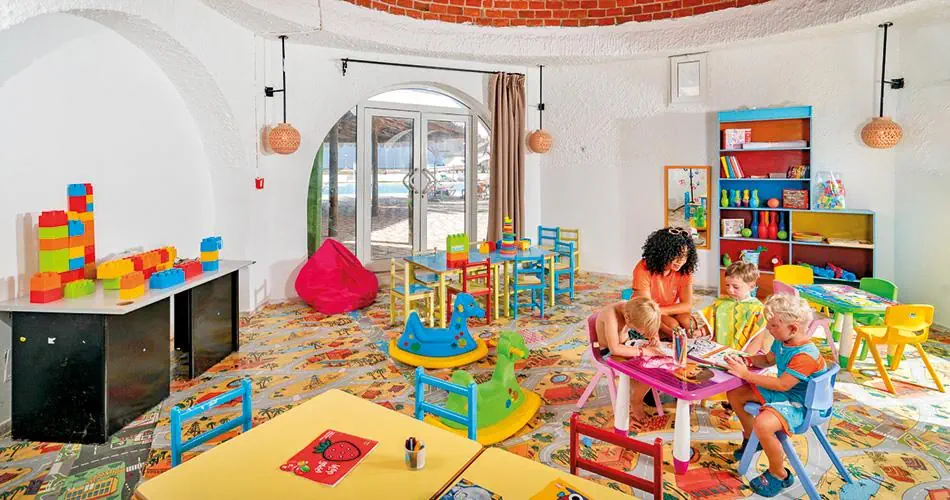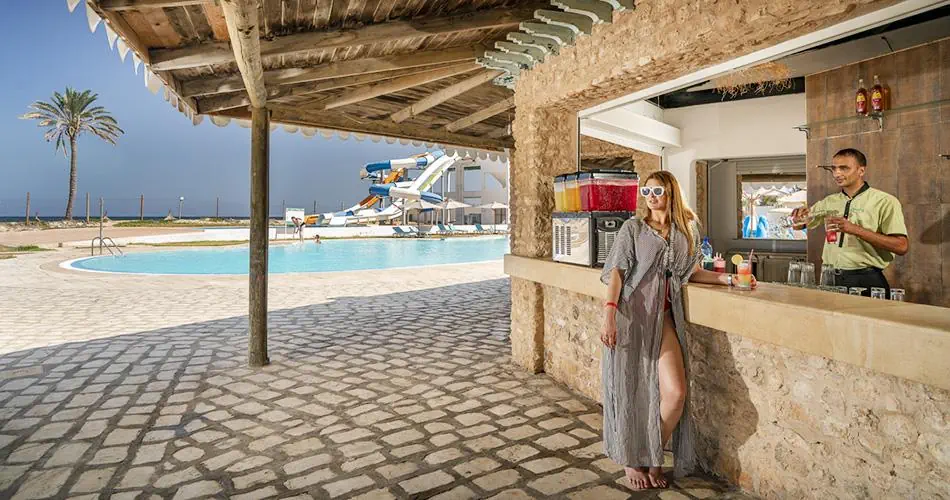 Recepcja 3 restauracje w tym 1 płatna (restauracja Tunezyjska a la carte "Cousscouserie") 2 bary Kawiarenka mauretańska (kawa turecka, szisha oraz Tunezyjskie słodycze są płatne) Basen ze zjeżdżalniami (dostępny dla dzieci od 6 lat), dzieci do 6 lat mają małe zjeżdżalnie na poziomie brodzika. 2 baseny zewnętrzne, brodzik Amfiteatr Centrum SPA Sklepy Fryzjer Wyremontowany w 2023 Oficjalna kategoria: VV* Holiday Village (Wioska wakacyjna)