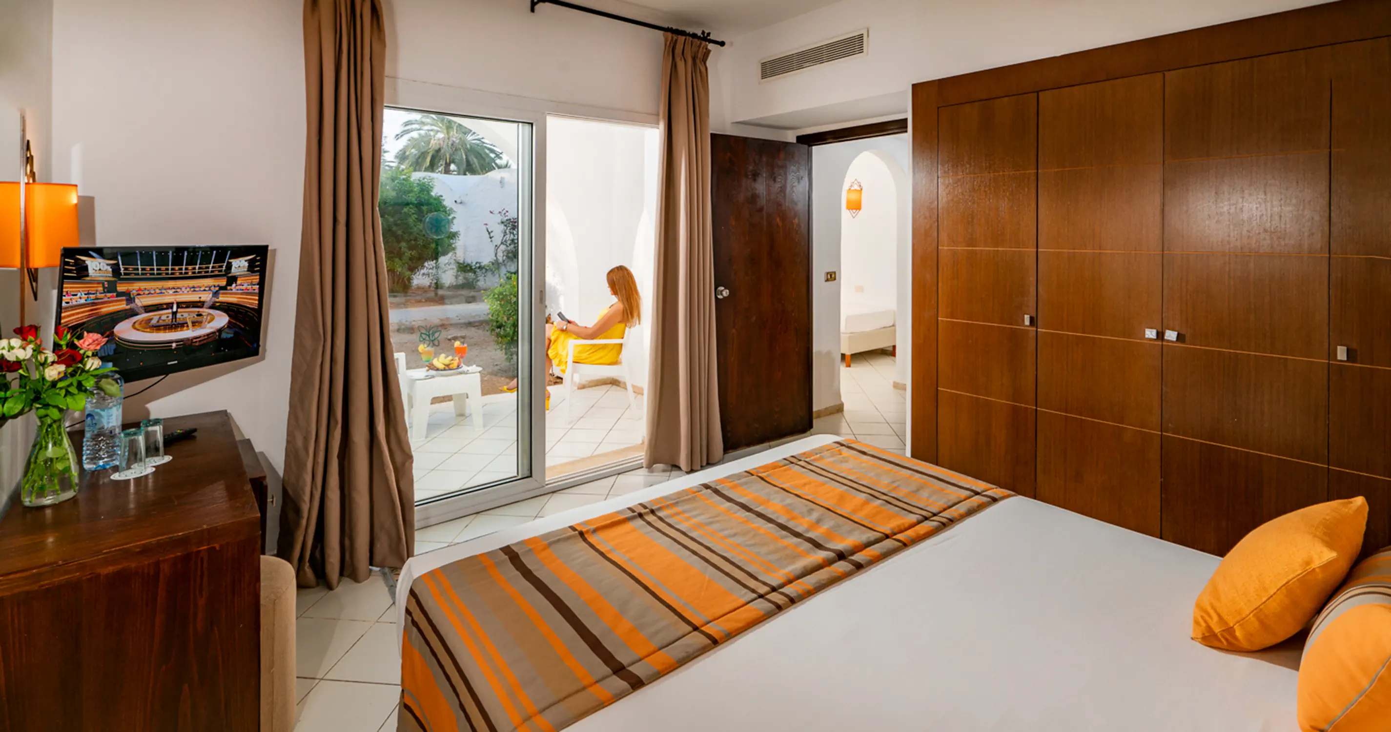 Bungalow: - Klimatyzacja (15.06-15.09) - Łazienka z wanna lub prysznicem, suszarka do włosów - TV- Sat, telefon - Sejf - bezpłatny - Minilodówka - bezpłatna - Sofa jako dostawka - Łóżeczko dziecięce na zapytanie - bezpłatne - Taras Pokój Standard Family: - Wyposażenie jak w pokoju Bungalow - 2 sofy jako dostawki - Balkon lub taras Pokój Superior Family: - Wyposażenie jak w pokoju Bungalow - 2 sypialnie - Balkon lub taras - Maksymalne obłożenie: 3 dorosłych + 1 dziecko lub 4 dorosłych