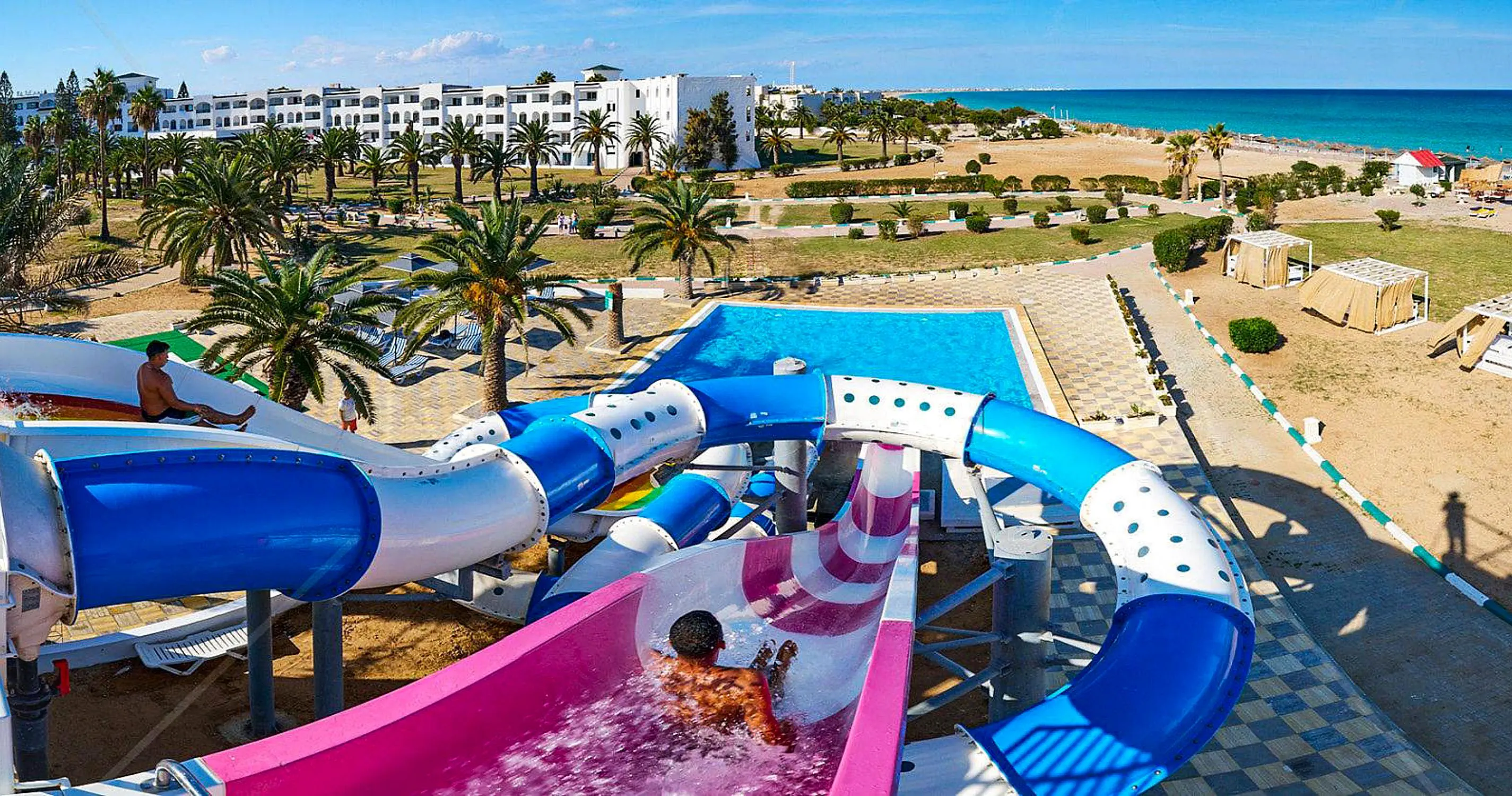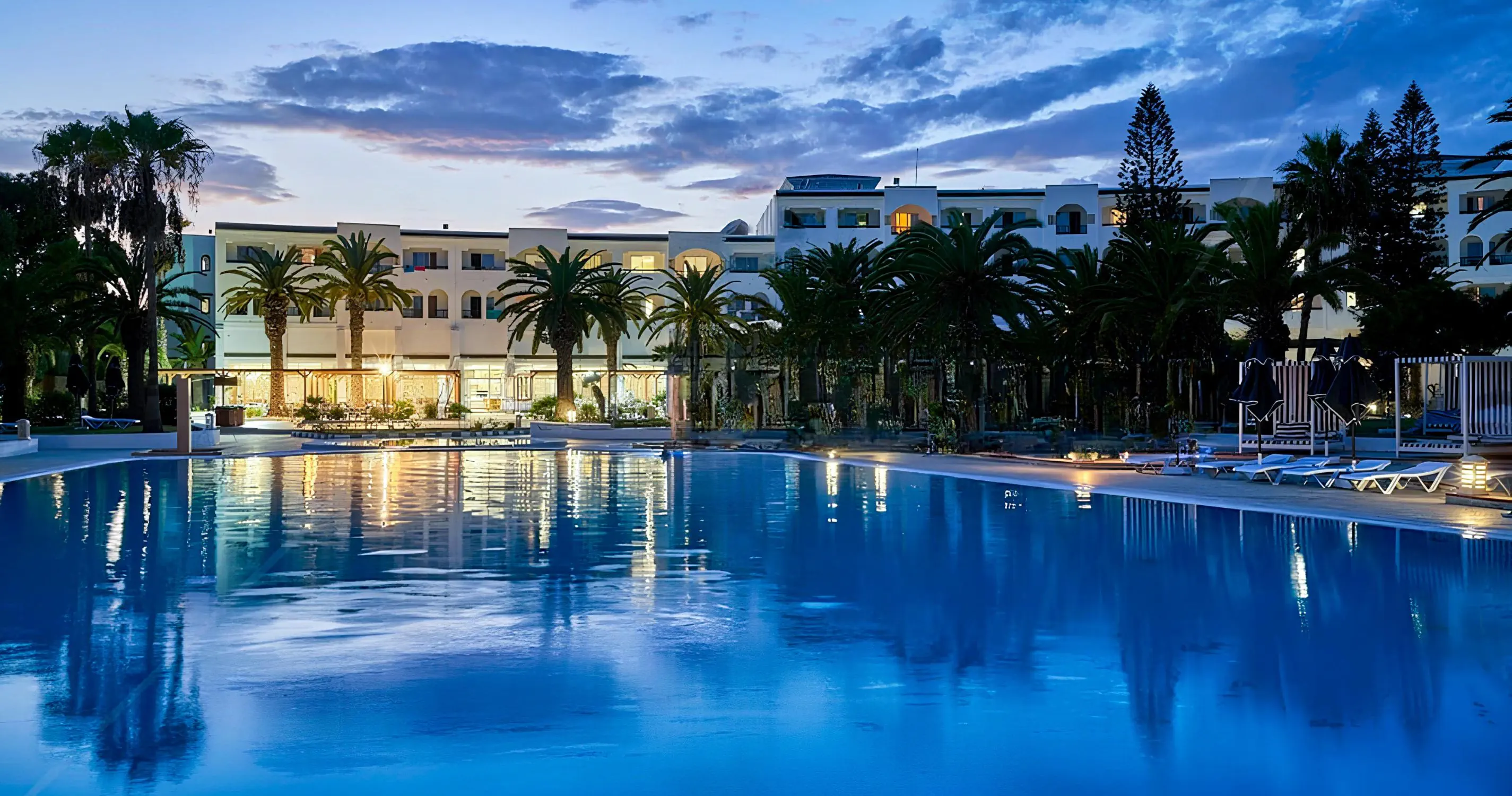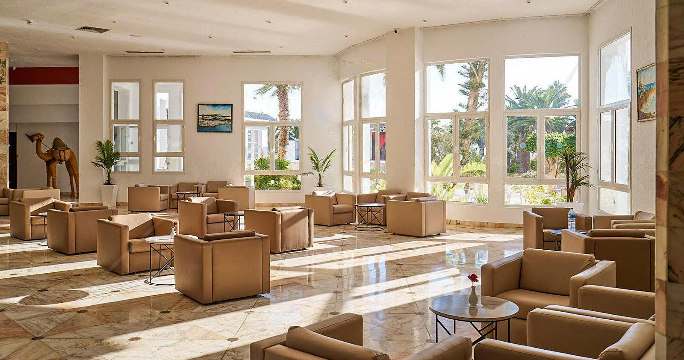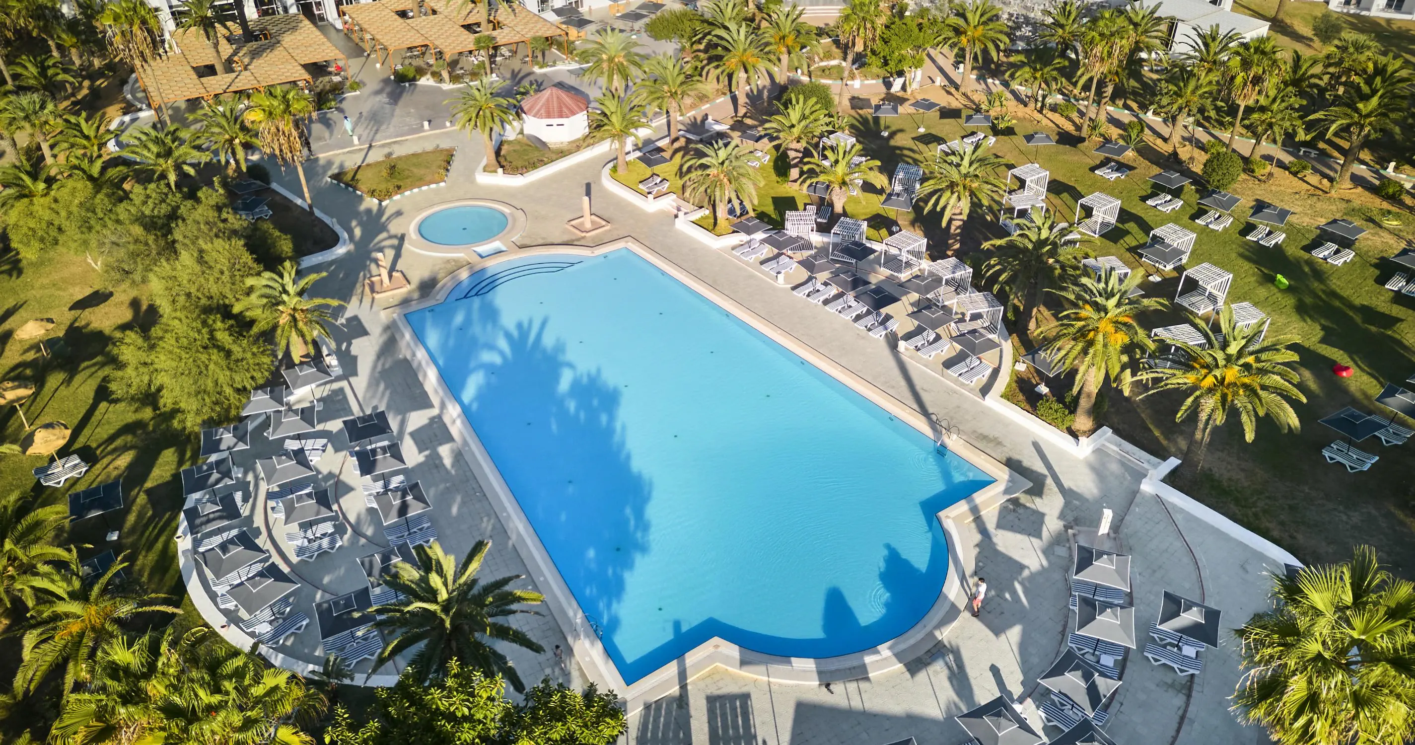 Recepcja 2 restauracje w tym 1 a'la carte (restauracja tunezyjska) 2 bary Kawiarenka mauretańska (kawa turecka, szisha oraz lokalne słodycze - płatne) 2 baseny zewnętrzne, w tym 1 dla dzieci Aquapark, czynny w godzinach 10:00-12:00 oraz 15:00-17:00 w ciągu dnia Amfiteatr Centrum SPA Sklepy Fryzjer Wyremontowany w 2025 Oficjalna kategoria 4*