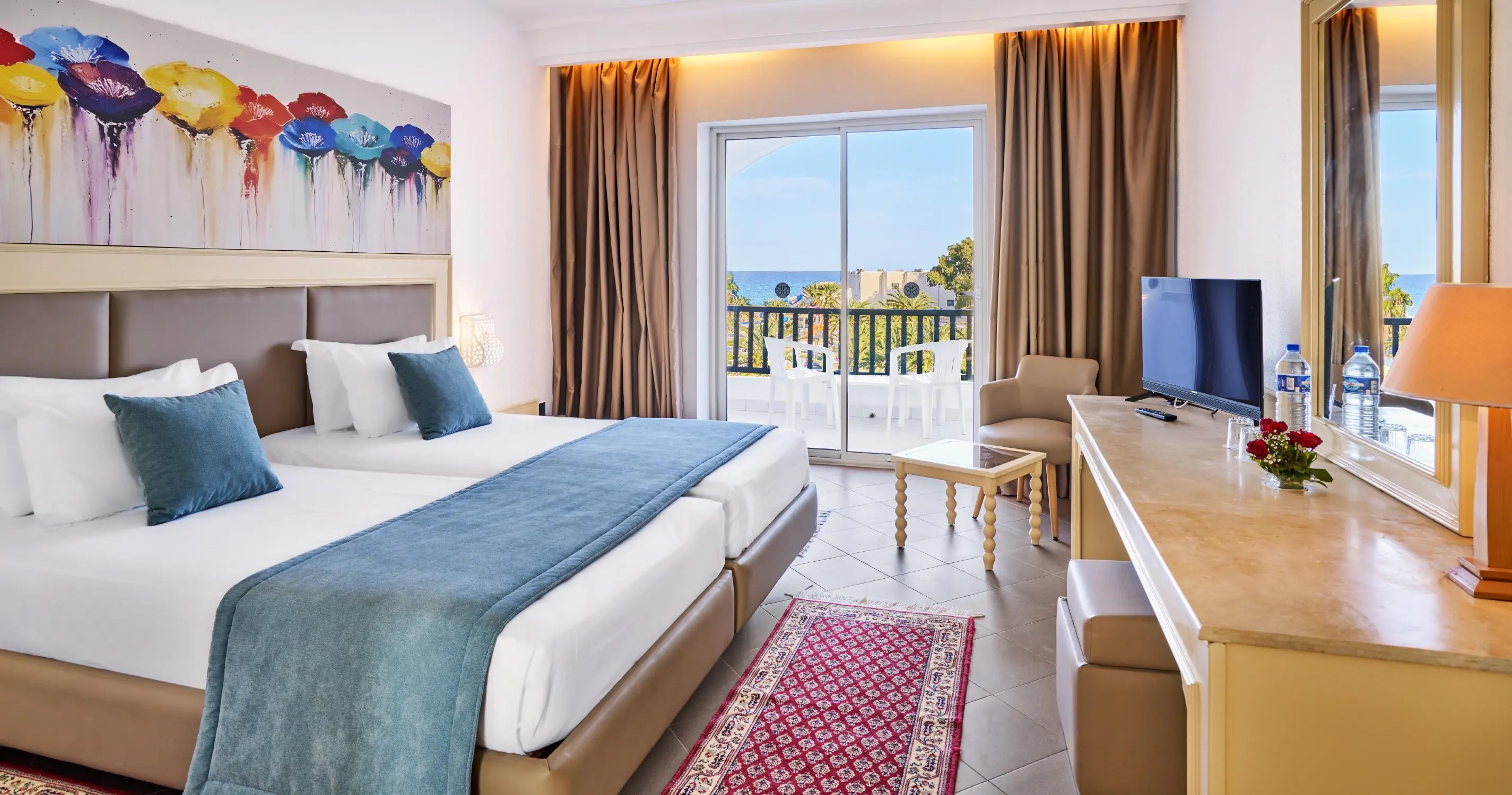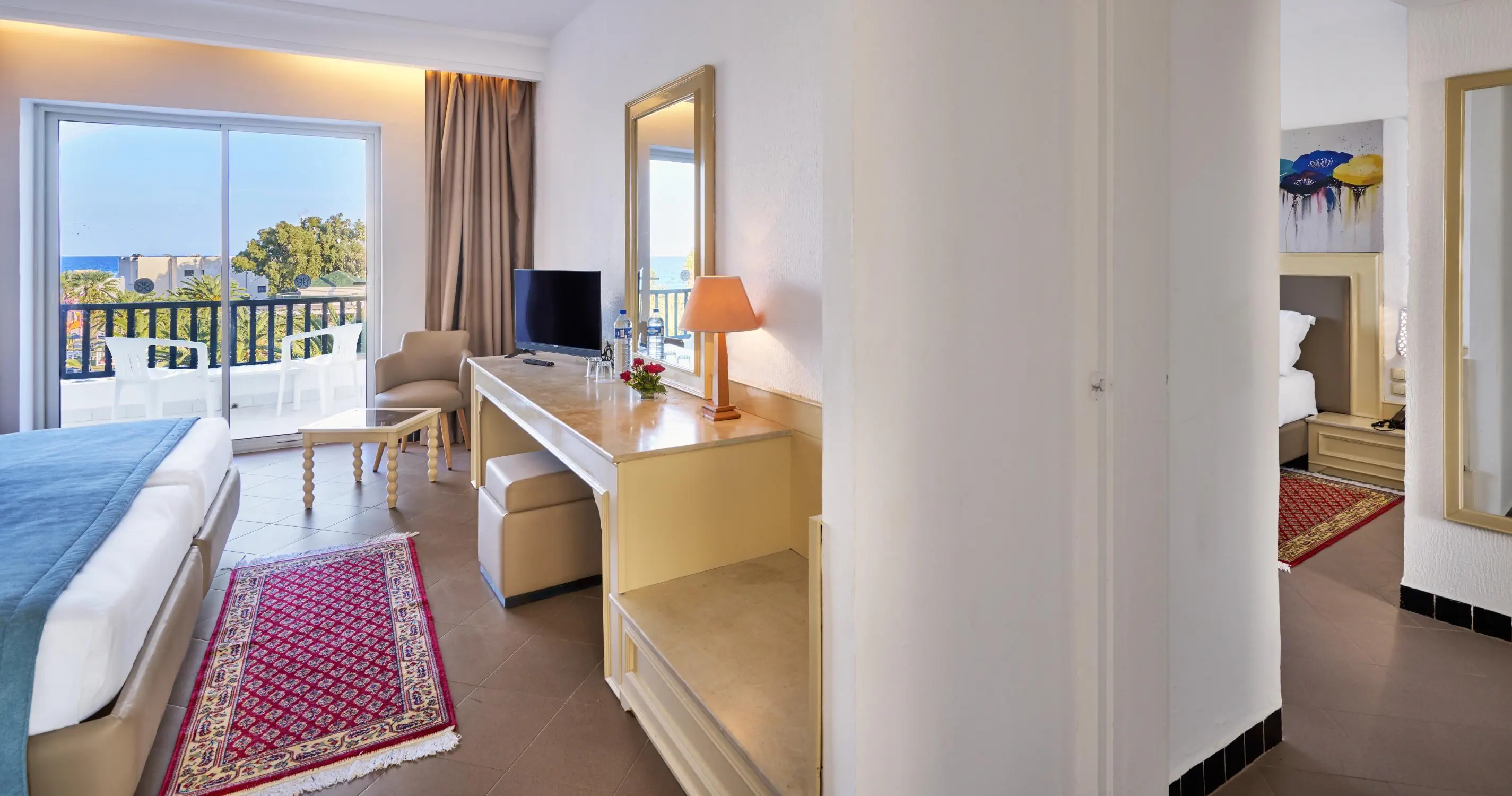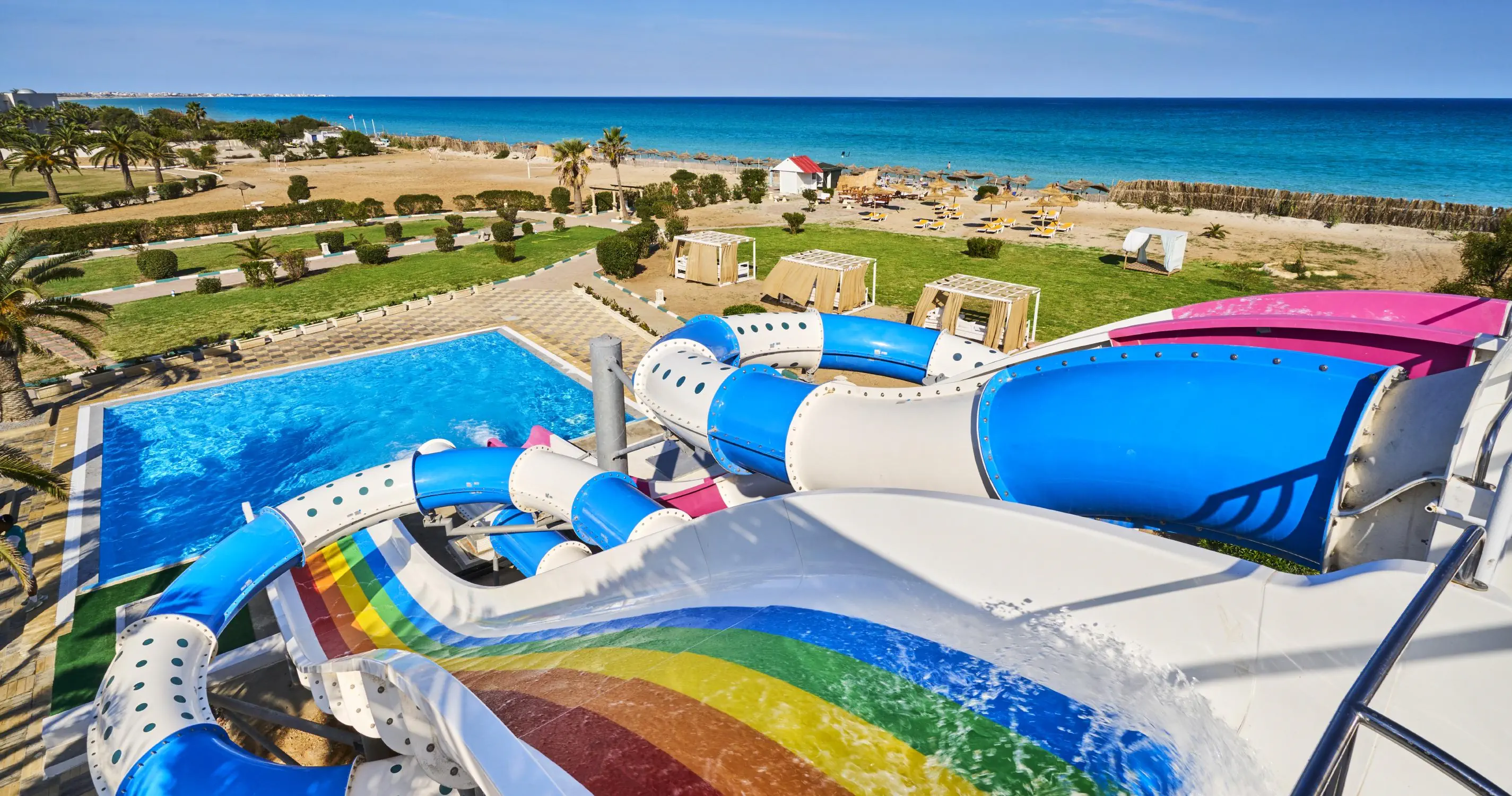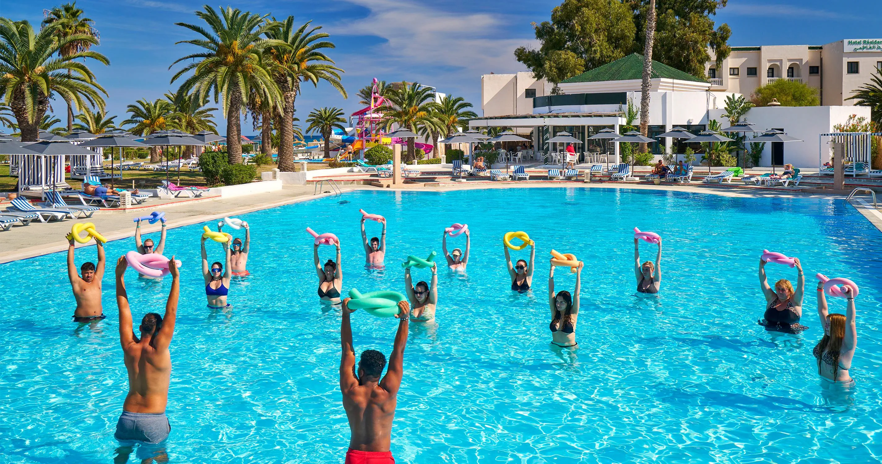 Recepcja 2 restauracje w tym 1 a'la carte (restauracja tunezyjska) 2 bary Kawiarenka mauretańska (kawa turecka, szisha oraz lokalne słodycze - płatne) 2 baseny zewnętrzne, w tym 1 dla dzieci Aquapark, czynny w godzinach 10:00-12:00 oraz 15:00-17:00 w ciągu dnia Amfiteatr Centrum SPA Sklepy Fryzjer Wyremontowany w 2025 Oficjalna kategoria 4*