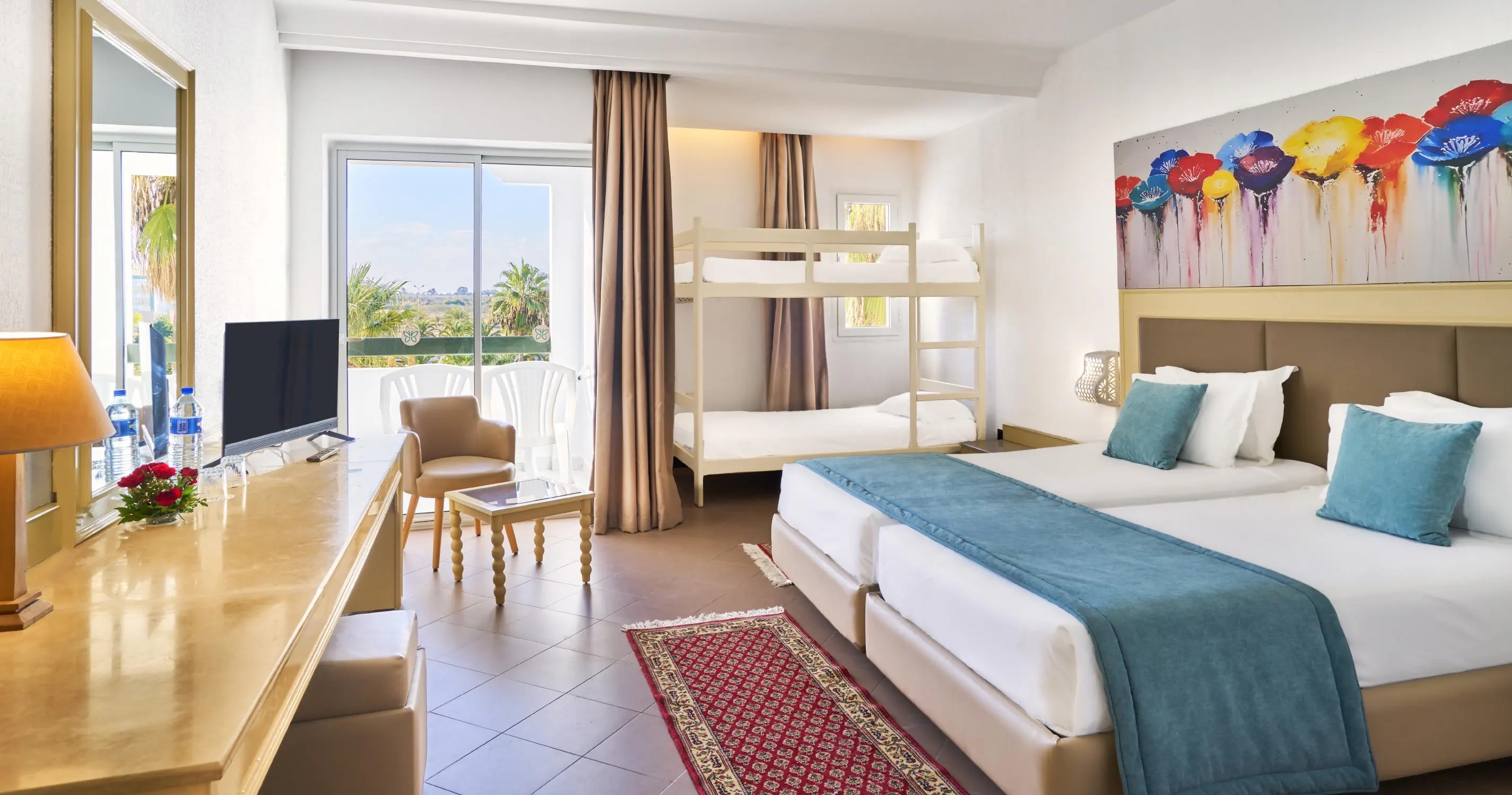 Pokój Standard: Klimatyzacja (15.06-15.09) Łazienka z wanna lub prysznicem, suszarka do włosów TV- Sat, telefon Sejf - bezpłatny Minilodówka - bezpłatna Łóżko pełnowymiarowe jako dostawka Łóżeczko dziecięce na zapytanie - bezpłatne Balkon lub Taras Widok na ogród - Standard Widok na morze - Standard SV Pokój Connecting room: Wyposażenie jak w pokoju Standard Dwa osobne pokoje Łazienka i oddzielna toaleta Widok na ogród - Connecting room Widok na morze - Connecting room Sea View Pokój Family: Wyposażenie jak w pokoju Standard Łóżka piętrowe dla dzieci Balkon lub taras Maksymalne obłożenie: 3 dorosłych + 1 dziecko lub 2 dorosłych + 2 dzieci W pokoju dla 2 dorosłych + 2 dzieci jest łóżko piętrowe dla dzieci