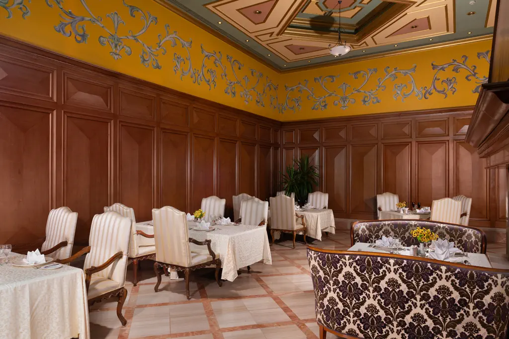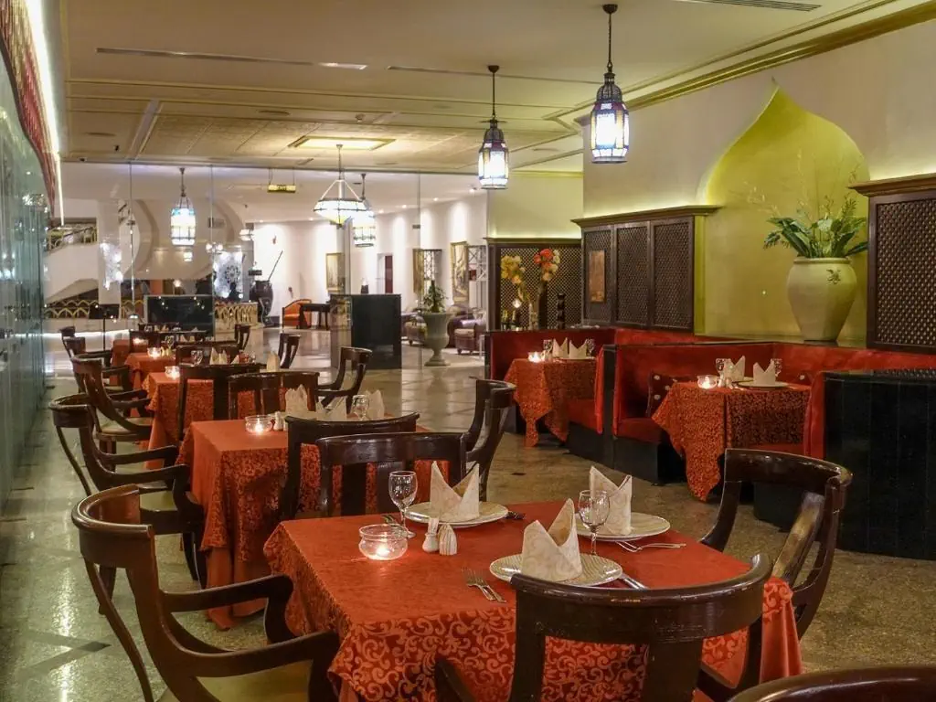 Śniadanie (07:00 - 10:00) - Le Cafe , stół szwedzki, Późne śniadanie (10:00 - 12:00) - The Waves , stół szwedzki, Obiad (12:30 - 15:00) - Le Cafe , stół szwedzki, Przekąski (12:00 - 17:00) - The Waves , określone menu, Podwieczorek (17:00 - 18:30) - Lobby Terrace, określone menu, Kolacja (18:30 - 21:30) - Le Cafe , stół szwedzki, Późna kolacja (22:00 - 05:00) - Blue Ginger , stół szwedzki, India Palace (18:30 - 21:30) (18:30 - 21:30), bez limitu, Kuchnia: indyjska, Wymagana rezerwacja: Nie, Fayrouz (18:30 - 21:30) (18:30 - 21:30), bez limitu, Kuchnia: Libańska, Wymagana rezerwacja: Tak, Blue Ginger Chinese (18:30 - 21:30) (18:30 - 21:30), bez limitu, Kuchnia: Chińska, Wymagana rezerwacja: Tak, The Grill (Grill) (18:30 - 21:30) (18:30 - 21:30), bez limitu, Kuchnia: międzynarodowa, Wymagana rezerwacja: Tak, Baldi (Egyptian Cuisines) (18:30 - 21:30) (18:30 - 21:30), bez limitu, Kuchnia: Egipska, Wymagana rezerwacja: Tak, Pyramid Bar (10:00 - 17:30), Napoje: alkohole lokalne (10:00 - 17:30), waves (10:00 - 17:30), Napoje: alkohole lokalne (10:00 - 17:30), Sky bar (24h), Napoje: alkohole lokalne (24h), napoje bezalkoholowe, alkohole lokalne, wybrane alkohole importowane ¹⁾, lody, pakiety dla nowożeńców, pakiety urodzinowe (na życzenie), cukiernia, room service ¹⁾, Minibar w pokoju ¹⁾ ¹⁾ - dodatkowo płatne