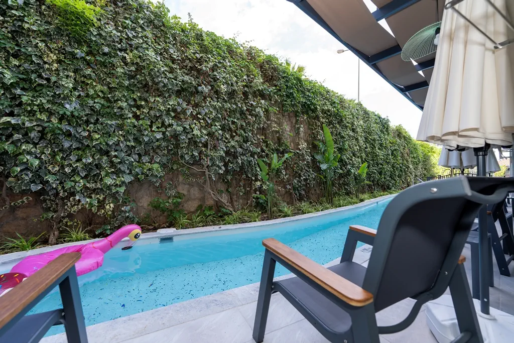 Dla max. 2 osób, Przestrzeń zewnętrzna: Balkon, Kanały telewizji: Angielski, Telefon w pokoju, prysznic, Powierzchnia pokoju: ok. 18 - 20 m2, Rodzaj podłogi: płytki, Sprzątanie codziennie, 1 sypialnia, Maksymalna liczba osób dorosłych: 2, Maksymalna liczba dzieci: 0, Widok na ogród i basen, Prywatny basen, Liczba łazienek: 1, Liczba toalet: 1, Zestaw do parzenia kawy i herbaty, Klimatyzacja: Klimatyzacja indywidualna