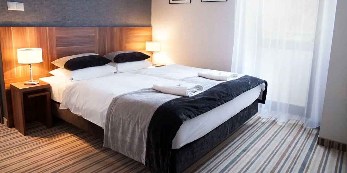 Gustownie urządzony, wygodny dwuosobowy pokój z klimatyzacją, łazienką, widokiem na las/park