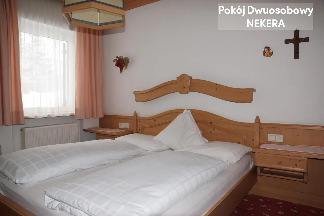 gustownie urządzone w alpejskim stylu pokoje dwuosobowe (DBL): ok. 20 m2; ogrzewanie, TV-Sat, telefon, większość pokoi z balkonem, prysznic, WC, suszarka.