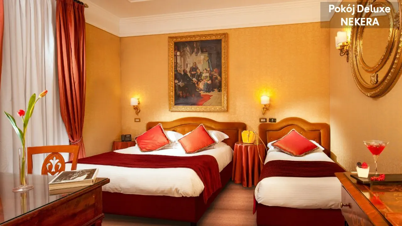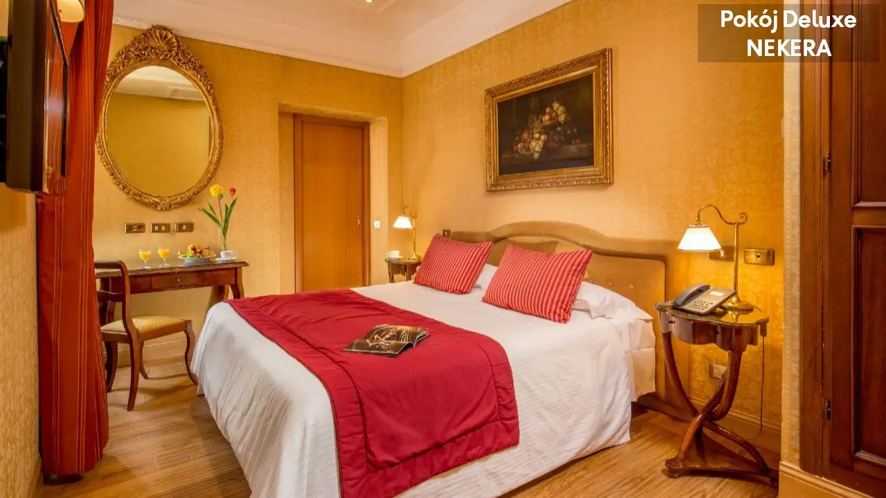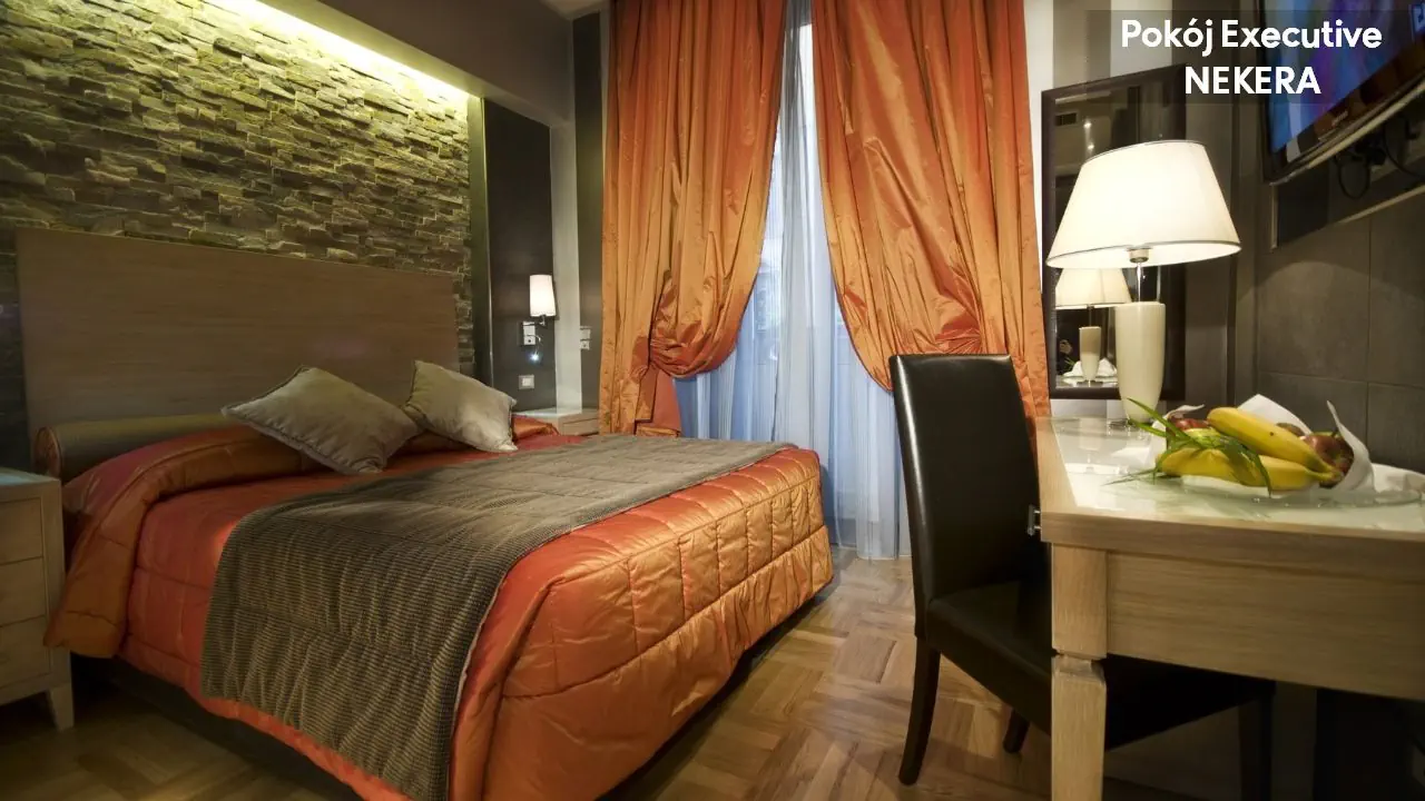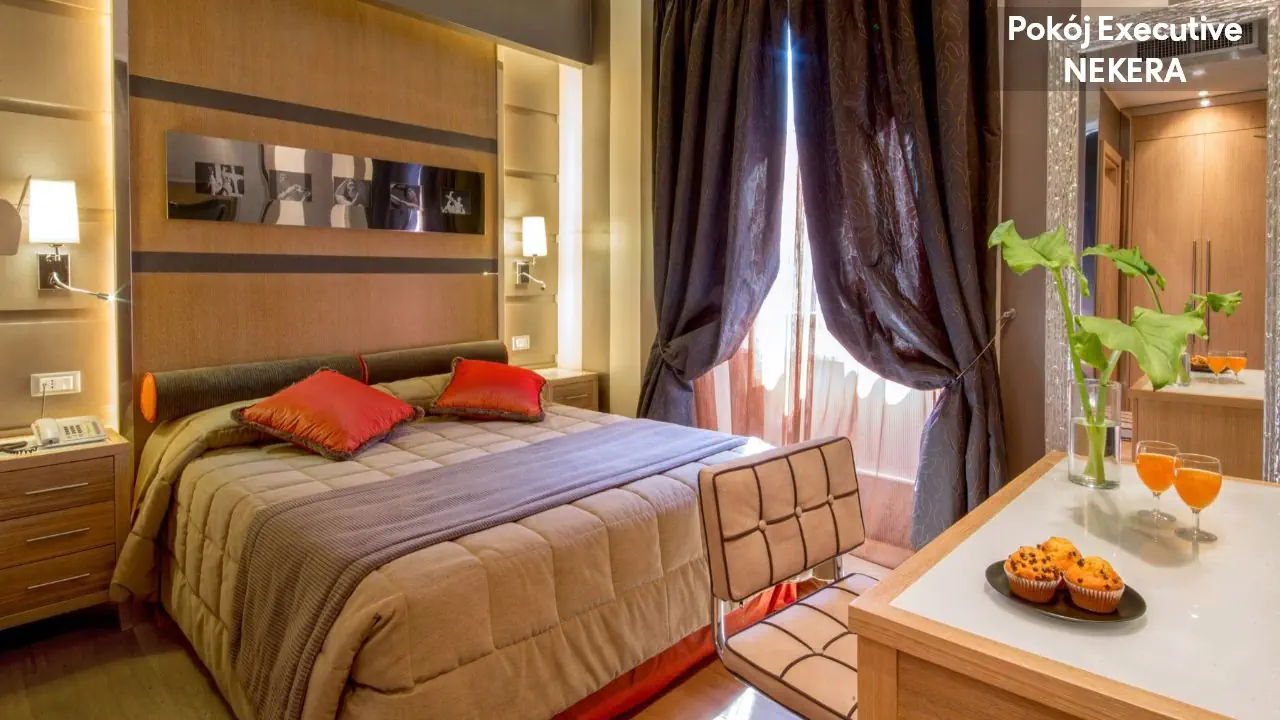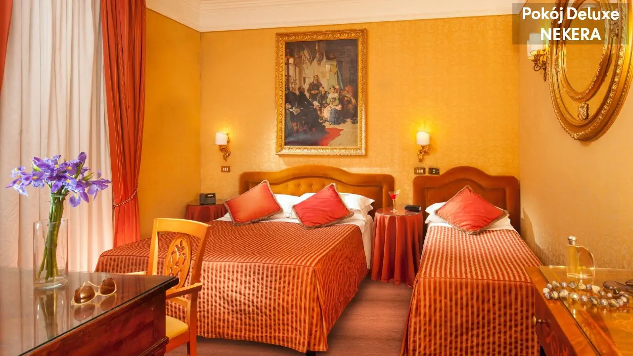 Pokój Deluxe dla max 4 osób dorosłych, łóżko podwójne lub 2 łóżka pojedyncze, możliwość dostawki, klimatyzacja, TV-Sat., telefon, sejf, minibar (płatny), prywatna łazienka (wanna lub prysznic, WC, bidet, suszarka do włosów, mini kosmetyki). Pokój Executive, dla max 4 osób dorosłych, łóżko podwójne lub 2 łóżka pojedyncze, możliwość dostawki, klimatyzacja, TV-Sat., telefon, sejf, minibar (płatny), prywatna łazienka (wanna lub prysznic, WC, bidet, suszarka do włosów, mini kosmetyki). Pokoje Executive są bardziej przestronne i reprezentacyjne, często położone na wyższych piętrach, z eleganckim wystrojem wnętrz oraz wydzieloną częścią wypoczynkową z fotelem lub niewielką sofą.