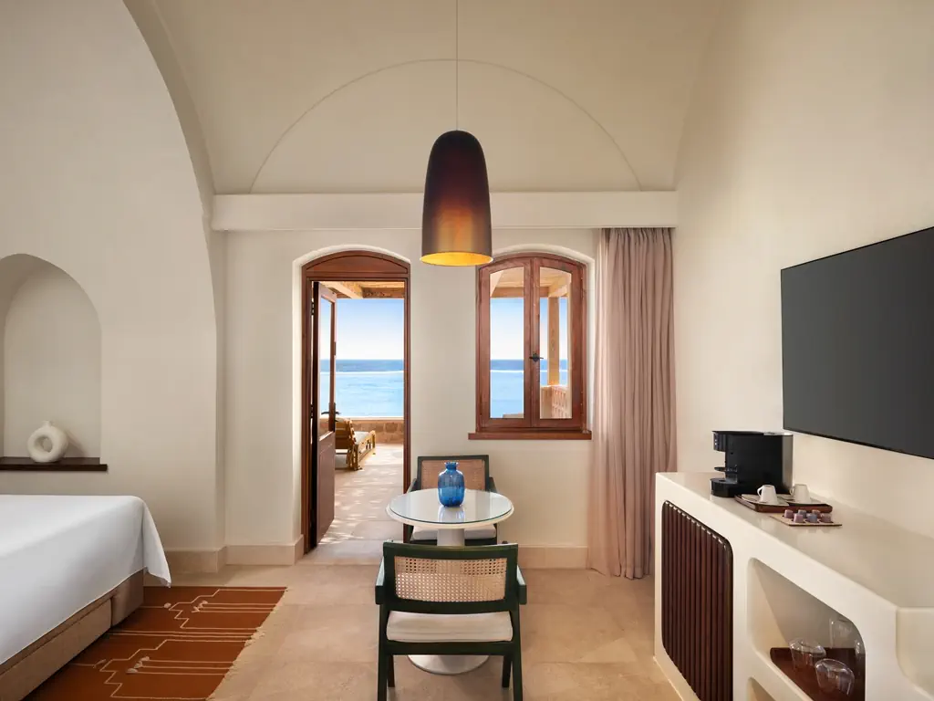 Dla max. 3 osób, Przestrzeń zewnętrzna: Taras, Kanały telewizji: Polski, Angielski, Telefon w pokoju, prysznic, Powierzchnia pokoju: ok. 26 - 28 m2, Dostawka: łóżko standardowe, Rodzaj podłogi: płytki, Sprzątanie codziennie, 1 sypialnia, Maksymalna liczba osób dorosłych: 2, Maksymalna liczba dzieci: 1, Widok na morze, Liczba łazienek: 1, Liczba toalet: 1, Zestaw do parzenia kawy i herbaty, Klimatyzacja: Klimatyzacja indywidualna