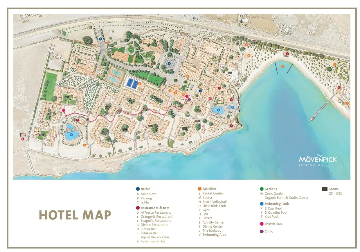 Hotel należący do znanej, luksusowej sieci Movenpick. Znajdziemy w nim wszystko czego potrzeba do udanych wakacji. Kompleks basenów, bary, restauracje z lokalną kuchnią, centrum SPA i zaplecze sportowe.