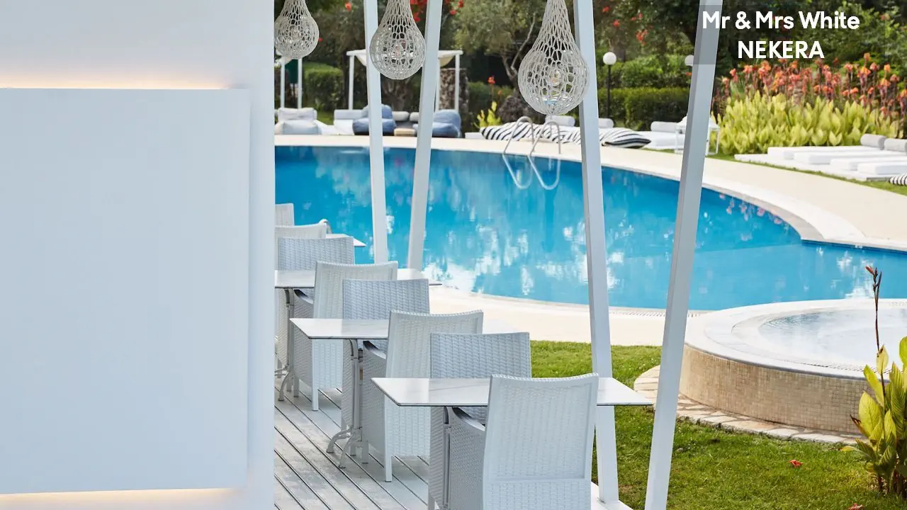 Pokój dwuosobowy Premium z widokiem na ogród Premium double room garden view: ok. 20-25 m² dla max 2 osób dorosłych, łóżko podwójne lub dwa pojedyncze, klimatyzacja, sejf, telefon, TV – Sat., mini lodówka, zestaw do parzenia kawy/herbaty, prywatna łazienka (prysznic, toaleta, suszarka do włosów, zestaw mini kosmetyków, kapcie, szlafrok), prywatny balkon z widokiem na ogród. Junior Suita ze współdzielonym basenem: ok. 20-25 m² dla max 2 osób dorosłych, łóżko podwójne lub dwa pojedyncze, dostęp do współdzielonego basenu, poza tym wyposażona jak pokoje dwuosobowe premium.