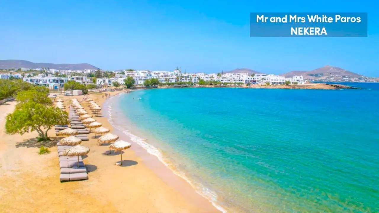 publiczna, piaszczysta i długa na ok. 1,5 km plaża Agio Anrygyroi ok. 1 km od hotelu. Łagodne zejście do wody ok. 650 m. Leżaki i parasole słoneczne: dodatkowo płatne. Mniejsza plaża miejska, piaszczysta, z łagodnym wejściem do wody tj. Piperi ok. 1,6 km od hotelu (serwis plażowy: dodatkowo płatny).