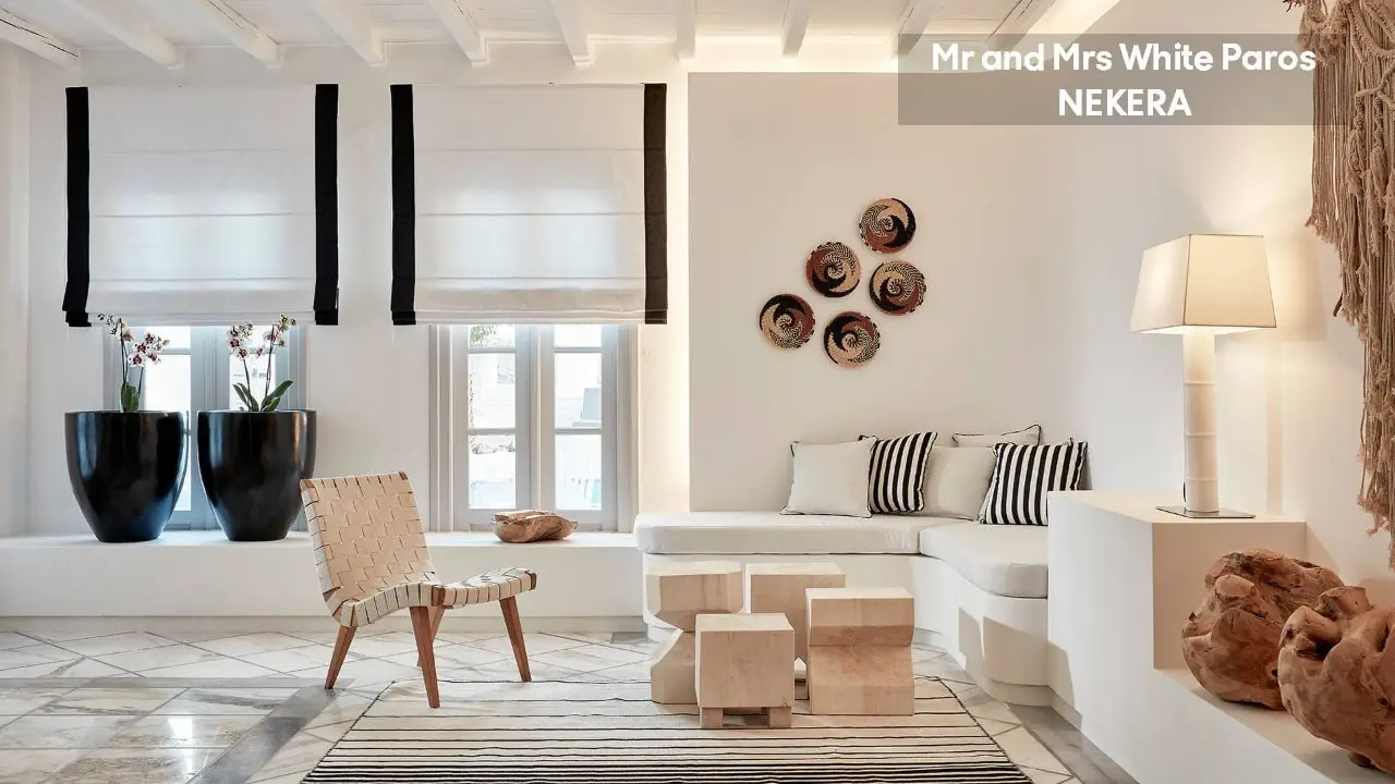 w północnej części wyspy, w Naoussie. Najbliższe sklepy i tawerny: ok. 550 m, Stare Miasto w Naoussa: ok. 1 km, port: ok. 1,2 km, Muzeum Archeologiczne w Parali: ok. 11 km, antyczne ruiny Świątyni Apolla: ok. 14 km, Rezerwat Motyli: ok. 18 km. Port lotniczy oddalony o ok. 21 km.
