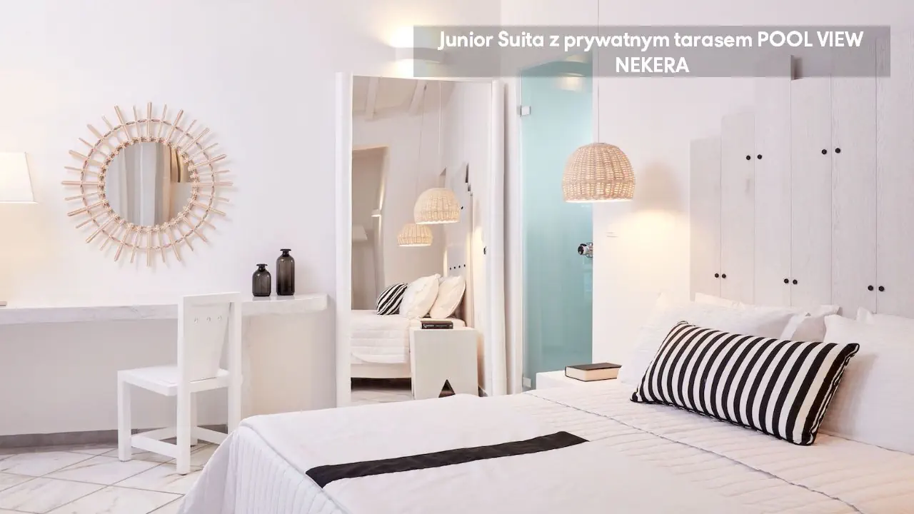 minimalistyczne pokoje w kolorach biało-czarnych. Pokój dwuosobowy z widokiem na ogród STANDARD GARDEN VIEW: ok. 15-17 m²; mogący pomieścić maks. 2 dorosłe osoby, łóżko podwójne o rozm. king-size. Wyposażenie: klimatyzacja indywidulanie sterowana, ’29-‘32 TV-Sat., sejf elektroniczny, telefon (płatny) minilodówka, prywatna łazienka (prysznic/wanna, toaleta, umywalka, suszarka do włosów, minikosmetyki), umeblowany balkon z widokiem na ogród lub ląd. Pokój dwuosobowy z widokiem na ogród SUPERIOR GARDEN VIEW: ok. 21-23 m²; mogący pomieścić maks. 3 dorosłe osoby, łóżko podwójne o rozm. king-size oraz sofa, prywatny ogród. Poza tym wyposażony jak pokój dwuosobowy z widokiem na ogród. Pokój dwuosobowy z widokiem na ogród PREMIUM GARDEN VIEW: ok. 18-20 m²; mogący pomieścić maks. 2 dorosłe osoby, łóżko podwójne o rozm. king-size z luksusową pościelą, prywatne patio. Poza tym wyposażony jak pokój dwuosobowy z widokiem na ogród. Ulokowane w najspokojniejszym miejscu w hotelu. Pokój dwuosobowy z widokiem na morze DELUXE SEA VIEW: ok. 15-17 m²; mogący pomieścić maks. 2 dorosłe osoby, łóżko podwójne o rozm. queen-size z luksusową pościelą. Poza tym wyposażony jak pokój dwuosobowy z widokiem na ogród. Taras z panoramicznym widokiem na odległe morze. Junior suita z widokiem na basen UNIQUE Junior SUITE POOL VIEW: ok. 26 m²; pokój z częścią wypoczynkową, mogący pomieścić maks. 2 dorosłe osoby, łóżko podwójne. W łazience natrysk z deszczownicą. Poza tym wyposażony jak pokój dwuosobowy z widokiem na ogród. Patio z prywatnymi leżakami. Pokój rodzinny z widokiem na morze FAMILY SEA VIEW: ok. 26-30 m²; sypialnia +salon, mogący pomieścić maks. 3 dorosłe osoby, łóżko podwójne o rozm. queen-size (sypialnia) oraz sofa (salon). Poza tym wyposażony jak pokój dwuosobowy z widokiem na ogród. Taras z panoramicznym widokiem na odległe morze.