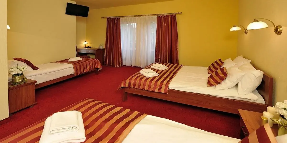 - Codzienne śniadanie w formie bufetu - Codzienna obiadokolacja - Wstęp do strefy wellness z saunami i tężnią solankową (w godzinach otwarcia) - Bal sylwestrowy 31 grudnia - Uroczysta obiadokolacja noworoczna z degustacją piwa 1 stycznia - Dla pobytów 30 grudnia-2 stycznia: codzienny bufet kawowy - Dostęp do siłowni - Bezpłatny parking - Internet Wi-Fi - Podatek VAT