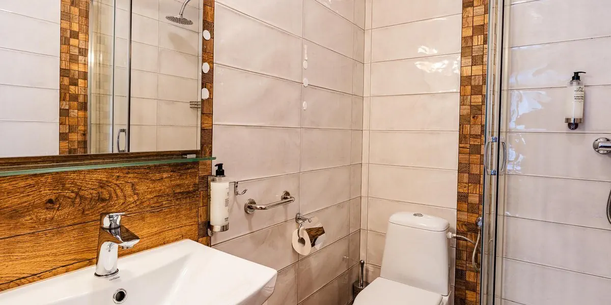 Klimatyzowany pokój z balkonem i widokiem na las (z wyjątkiem części pokoi na najwyższym piętrze z oknem dachowym), wyposażony w TV, dostęp do Wi-Fi, ręczniki. W łazience jest kabina prysznicowa, suszarka do włosów, kosmetyki.