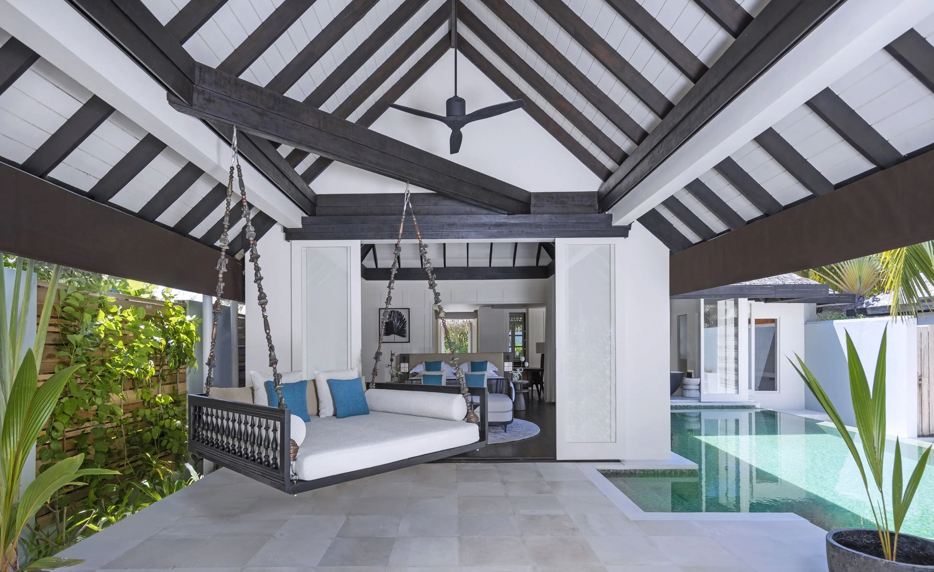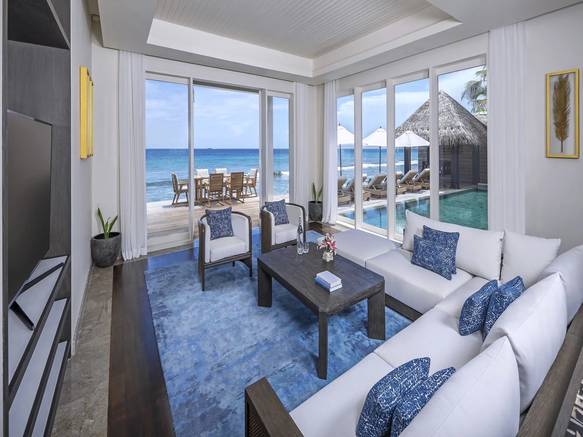 Dla max. 3 osób, Przestrzeń zewnętrzna: Taras, Kanały telewizji: Angielski, Telefon w pokoju, wanna i prysznic , Powierzchnia pokoju: ok. 300 m2, Dostawka: sofa, Rodzaj podłogi: drewno, Sprzątanie codziennie, część jadalniana, 1 sypialnia, Maksymalna liczba osób dorosłych: 3, Maksymalna liczba dzieci: 2, Concierge (bezpłatnie), Kwiaty i owoce, Sauna, Prysznic na świeżym powietrzu, Frontalny widok na plażę, Bezpośredni dostęp do plaży, Prywatny basen, Liczba łazienek: 1, Liczba toalet: 1, Zestaw do parzenia kawy i herbaty, Klimatyzacja: Klimatyzacja indywidualna