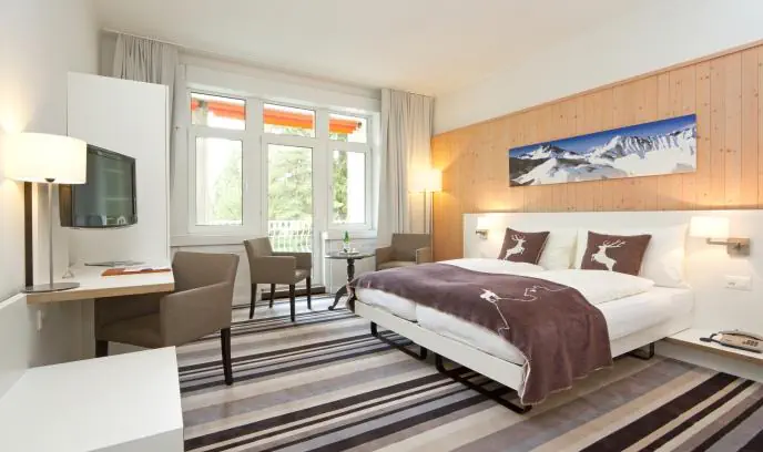 komfortowy 3-gwiazdkowy Hotel National znajduje się w spokojnej, ale mimo tego centralnej części miejscowości, ok. 100 m od centralnego placu Davos. Kolejka Jakobshorn ok. 400 m, ski bus ok. 100 m.