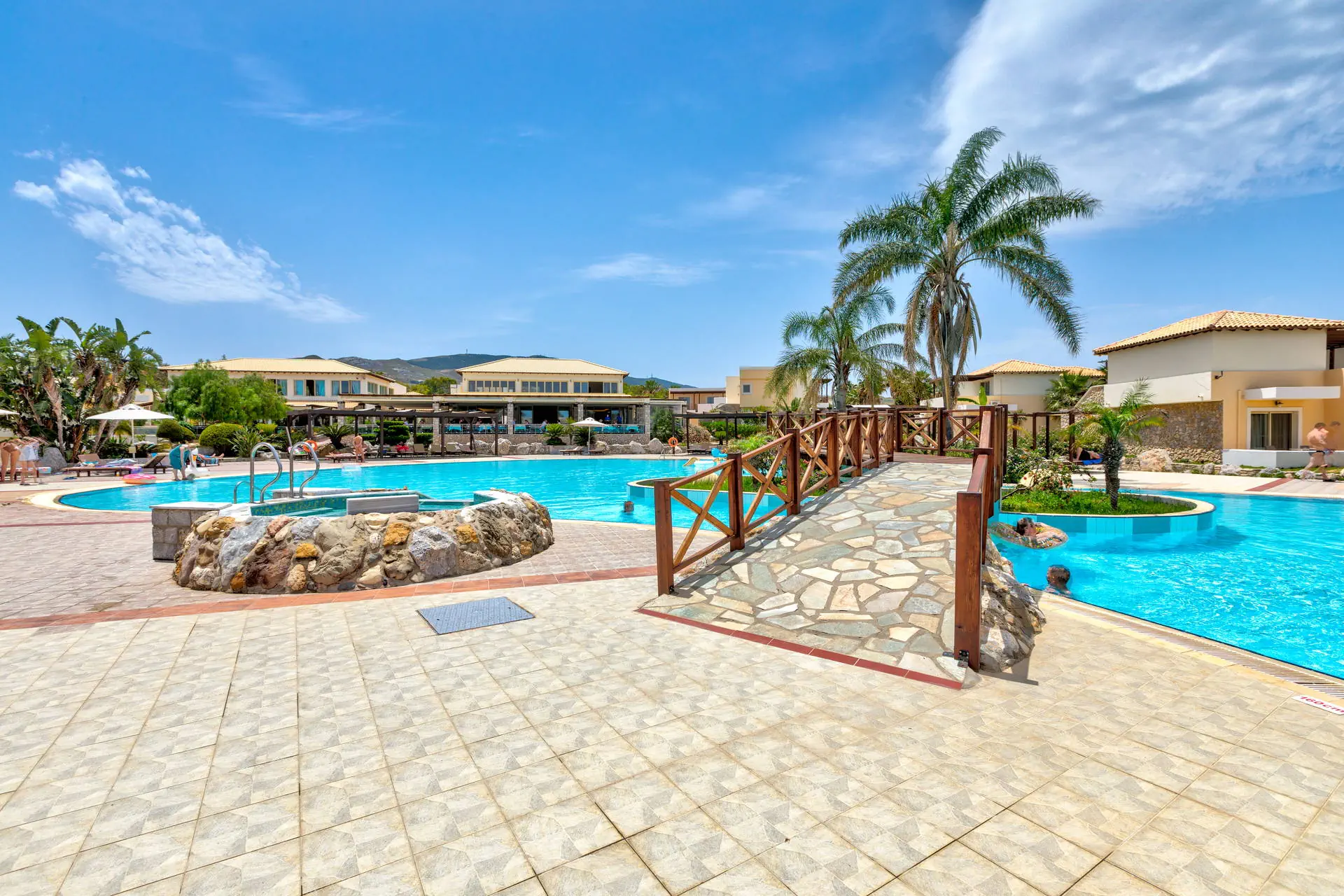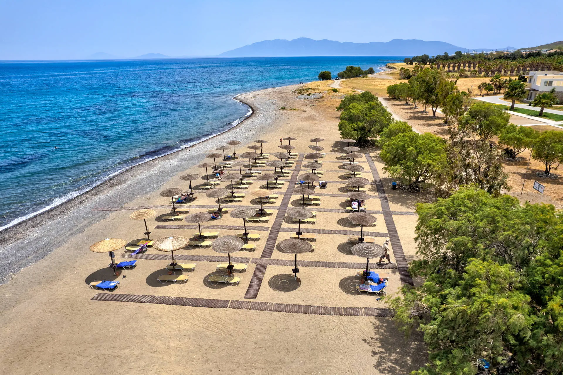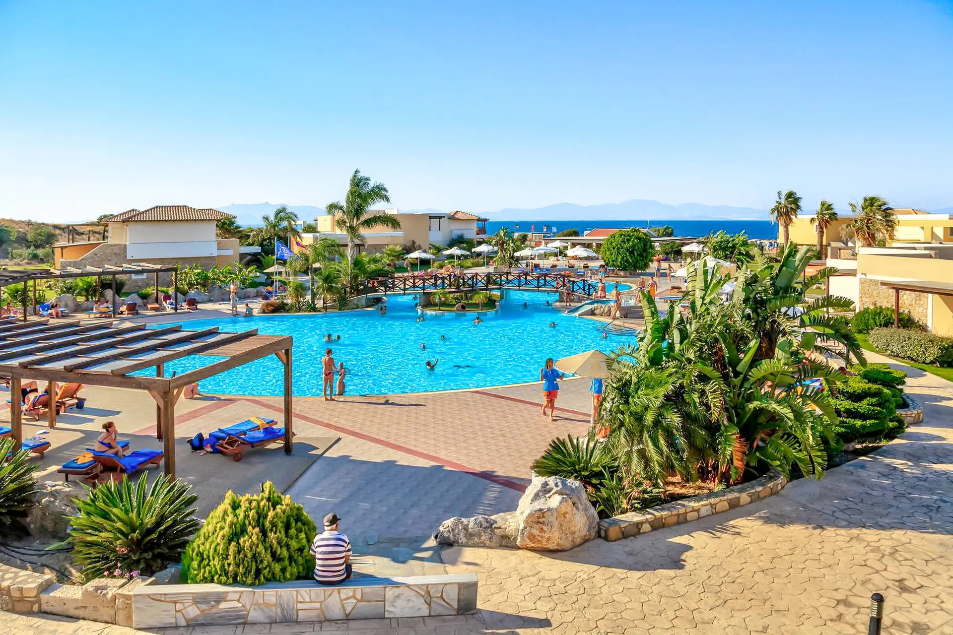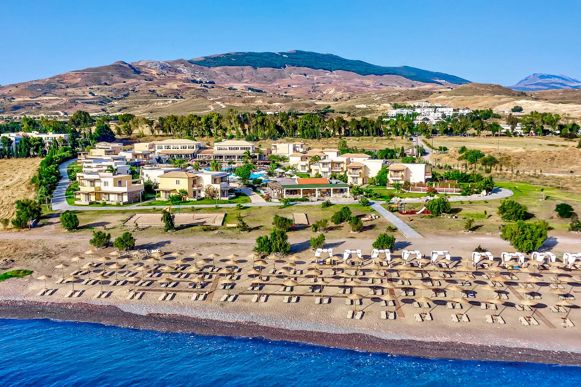 Do dyspozycji gości Recepcja z lobby dostępne dla Gości hotelu. 3 baseny ze słodką wodą, w tym 1 wewnętrzny (płatny), 2 brodziki dla dzieci, jacuzzi, leżaki i parasole przy basenach bezpłatnie, ręczniki kąpielowe dostępne za depozytem. Restauracje: klimatyzowana restauracja główna „Ambrosia” z zadaszonym tarasem zewnętrznym, bar główny. Pozostałe informacje: Internet Wi-Fi bezpłatny w częściach ogólnodostępnych, wypożyczalnia rowerów i samochodów (płatne), mini market (płatne). Kategoria lokalna ***** Naszym zdaniem Hotel oferuje pakiet all inclusive, który zapewnia pełen komfort podczas pobytu. To doskonałe miejsce dla osób ceniących spokój i relaks. Goście mogą w pełni oddać się odpoczynkowi, nie martwiąc się o dodatkowe koszty. Oferta jest idealna dla tych, którzy chcą spędzić wakacje w spokojnej atmosferze, z dala od zgiełku i codziennych trosk. Pokoje 175 elegancko urządzonych i przestronnych pokoi dla maksymalnie 5 osób (w zależności od typu pokoju). Na balkonie/tarasie meble ogrodowe (2 krzesła i stolik). Pokoje znajdują się w kilku budynkach typu bungalow. W pokojach łazienka (WC, wanna lub prysznic, suszarka do włosów), TV-Sat, telefon, klimatyzacja indywidualnie sterowana, sejf (bezpłatnie), lodówka. Hotel zapewnia wyłącznie łóżka typu Twin. Położenie Hotel położony jest w Psalidi, tuż przy plaży. Odległość od lotniska wynosi około 28 km. Obiekt znajduje się około 5 km od miasta Kos. Do miasta Kos można dostać się taksówką lub komunikacją miejską, a w pobliżu hotelu znajduje się przystanek autobusowy. UWAGA! Cena nie obejmuje lokalnego podatku turystycznego w wysokości ok. 15 EUR/pokój/dzień. Podatek jest obligatoryjny i płatny bezpośrednio w recepcji, przed zakwaterowaniem Klientów w hotelu. Program sportowy i animacyjny Dla każdego: siłownia, kort tenisowy i możliwość wypożyczenia sprzętu, tenis stołowy. Za dodatkową opłatą: bilard, centrum SPA z krytym basenem i sauną oferuje wiele zabiegów i masaży. Wyżywienie Rodzaje wyżywienia i posiłki: All Inclusive: Śniadania: obfity bufet 07:00 - 10:00. Obiady: 12:30 - 14:00, podczas obiadów piwo, wino, napoje bezalkoholowe i lody. Kolacje: obfity bufet 19:30 - 21:30, podczas kolacji piwo, wino, napoje bezalkoholowe i lody. Bary: Napoje bezalkoholowe i lokalne alkohole w godzinach 12:00 - 23:00 w wyznaczonych barach. Pozostałe informacje: Możliwość korzystania z all inclusive kończy się wraz z ostatnią dobą hotelową. Plaża Plaża bezpośrednio przy hotelu. Publiczna, kamienisto-piaszczysta. Leżaki i parasole bezpłatne. Internet Internet Wi-Fi w częściach ogólnodostępnych w cenie. Strona www