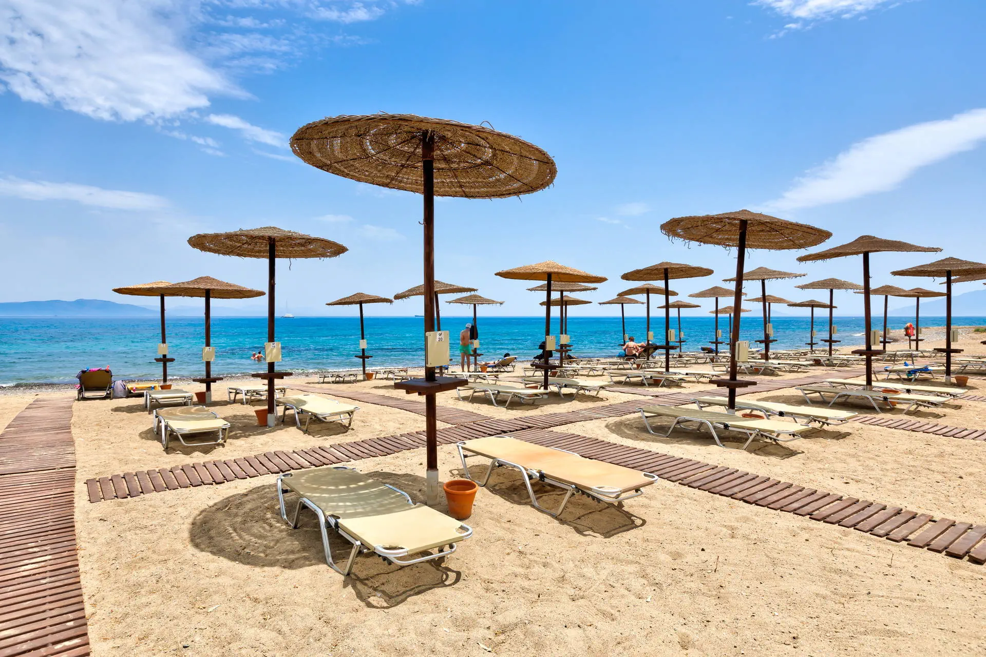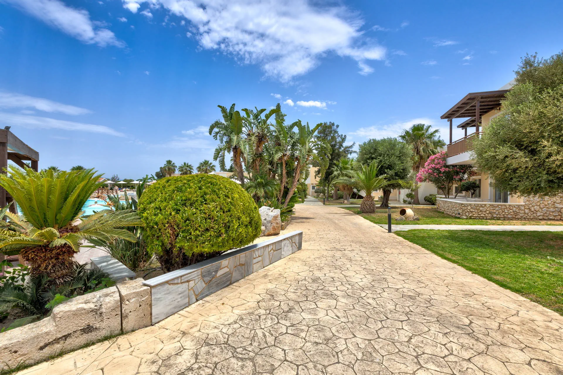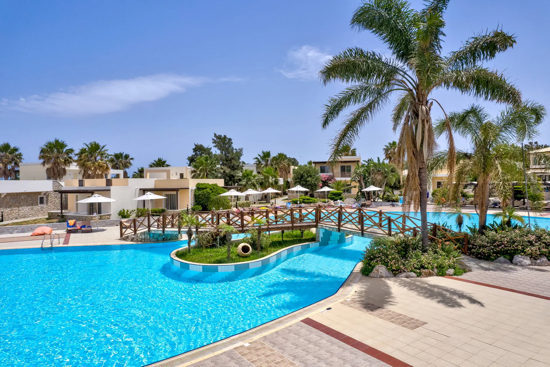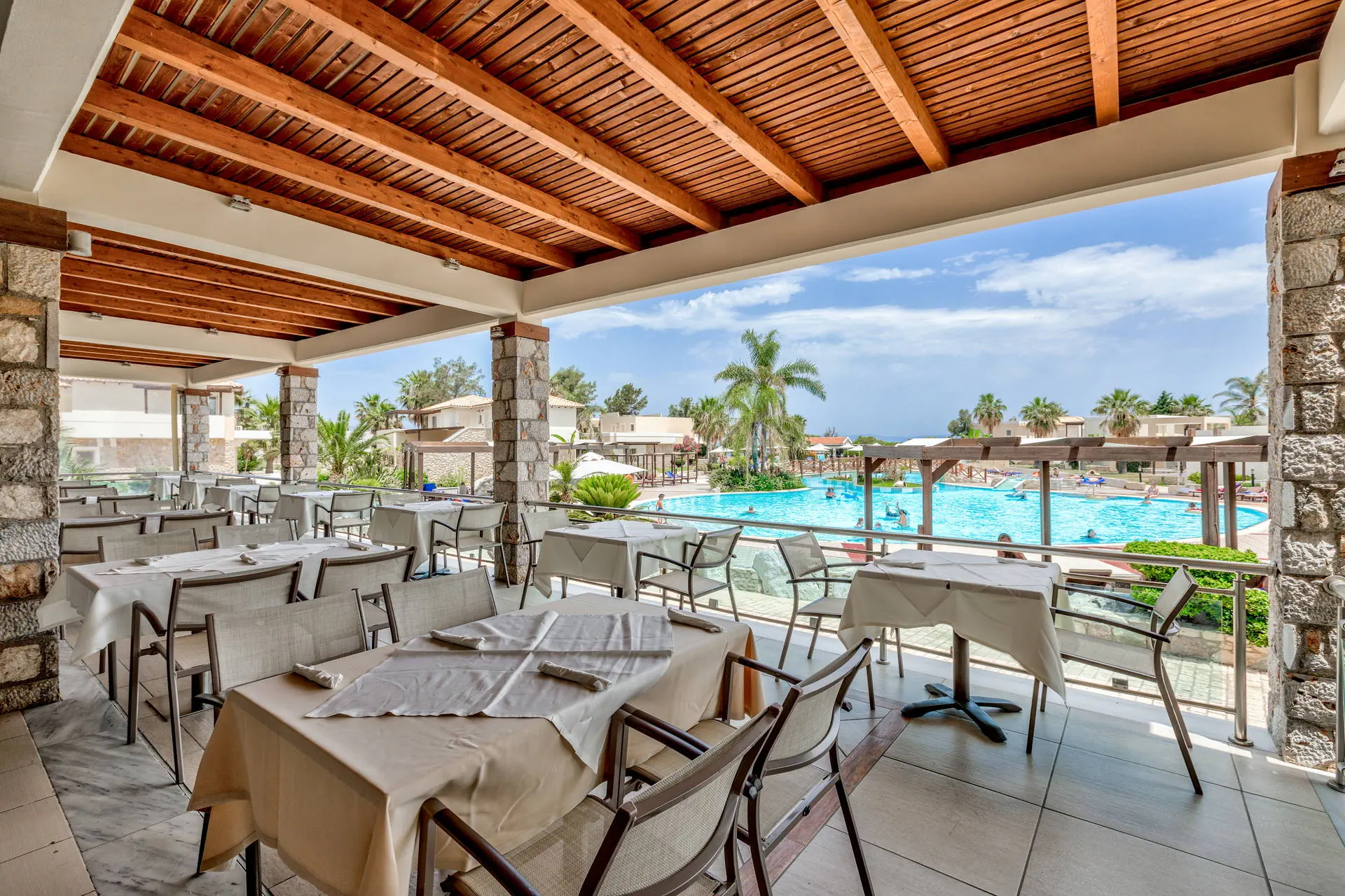 Do dyspozycji gości Recepcja z lobby dostępne dla Gości hotelu. 3 baseny ze słodką wodą, w tym 1 wewnętrzny (płatny), 2 brodziki dla dzieci, jacuzzi, leżaki i parasole przy basenach bezpłatnie, ręczniki kąpielowe dostępne za depozytem. Restauracje: klimatyzowana restauracja główna „Ambrosia” z zadaszonym tarasem zewnętrznym, bar główny. Pozostałe informacje: Internet Wi-Fi bezpłatny w częściach ogólnodostępnych, wypożyczalnia rowerów i samochodów (płatne), mini market (płatne). Kategoria lokalna ***** Naszym zdaniem Hotel oferuje pakiet all inclusive, który zapewnia pełen komfort podczas pobytu. To doskonałe miejsce dla osób ceniących spokój i relaks. Goście mogą w pełni oddać się odpoczynkowi, nie martwiąc się o dodatkowe koszty. Oferta jest idealna dla tych, którzy chcą spędzić wakacje w spokojnej atmosferze, z dala od zgiełku i codziennych trosk. Pokoje 175 elegancko urządzonych i przestronnych pokoi dla maksymalnie 5 osób (w zależności od typu pokoju). Na balkonie/tarasie meble ogrodowe (2 krzesła i stolik). Pokoje znajdują się w kilku budynkach typu bungalow. W pokojach łazienka (WC, wanna lub prysznic, suszarka do włosów), TV-Sat, telefon, klimatyzacja indywidualnie sterowana, sejf (bezpłatnie), lodówka. Hotel zapewnia wyłącznie łóżka typu Twin. Położenie Hotel położony jest w Psalidi, tuż przy plaży. Odległość od lotniska wynosi około 28 km. Obiekt znajduje się około 5 km od miasta Kos. Do miasta Kos można dostać się taksówką lub komunikacją miejską, a w pobliżu hotelu znajduje się przystanek autobusowy. UWAGA! Cena nie obejmuje lokalnego podatku turystycznego w wysokości ok. 15 EUR/pokój/dzień. Podatek jest obligatoryjny i płatny bezpośrednio w recepcji, przed zakwaterowaniem Klientów w hotelu. Program sportowy i animacyjny Dla każdego: siłownia, kort tenisowy i możliwość wypożyczenia sprzętu, tenis stołowy. Za dodatkową opłatą: bilard, centrum SPA z krytym basenem i sauną oferuje wiele zabiegów i masaży. Wyżywienie Rodzaje wyżywienia i posiłki: All Inclusive: Śniadania: obfity bufet 07:00 - 10:00. Obiady: 12:30 - 14:00, podczas obiadów piwo, wino, napoje bezalkoholowe i lody. Kolacje: obfity bufet 19:30 - 21:30, podczas kolacji piwo, wino, napoje bezalkoholowe i lody. Bary: Napoje bezalkoholowe i lokalne alkohole w godzinach 12:00 - 23:00 w wyznaczonych barach. Pozostałe informacje: Możliwość korzystania z all inclusive kończy się wraz z ostatnią dobą hotelową. Plaża Plaża bezpośrednio przy hotelu. Publiczna, kamienisto-piaszczysta. Leżaki i parasole bezpłatne. Internet Internet Wi-Fi w częściach ogólnodostępnych w cenie. Strona www