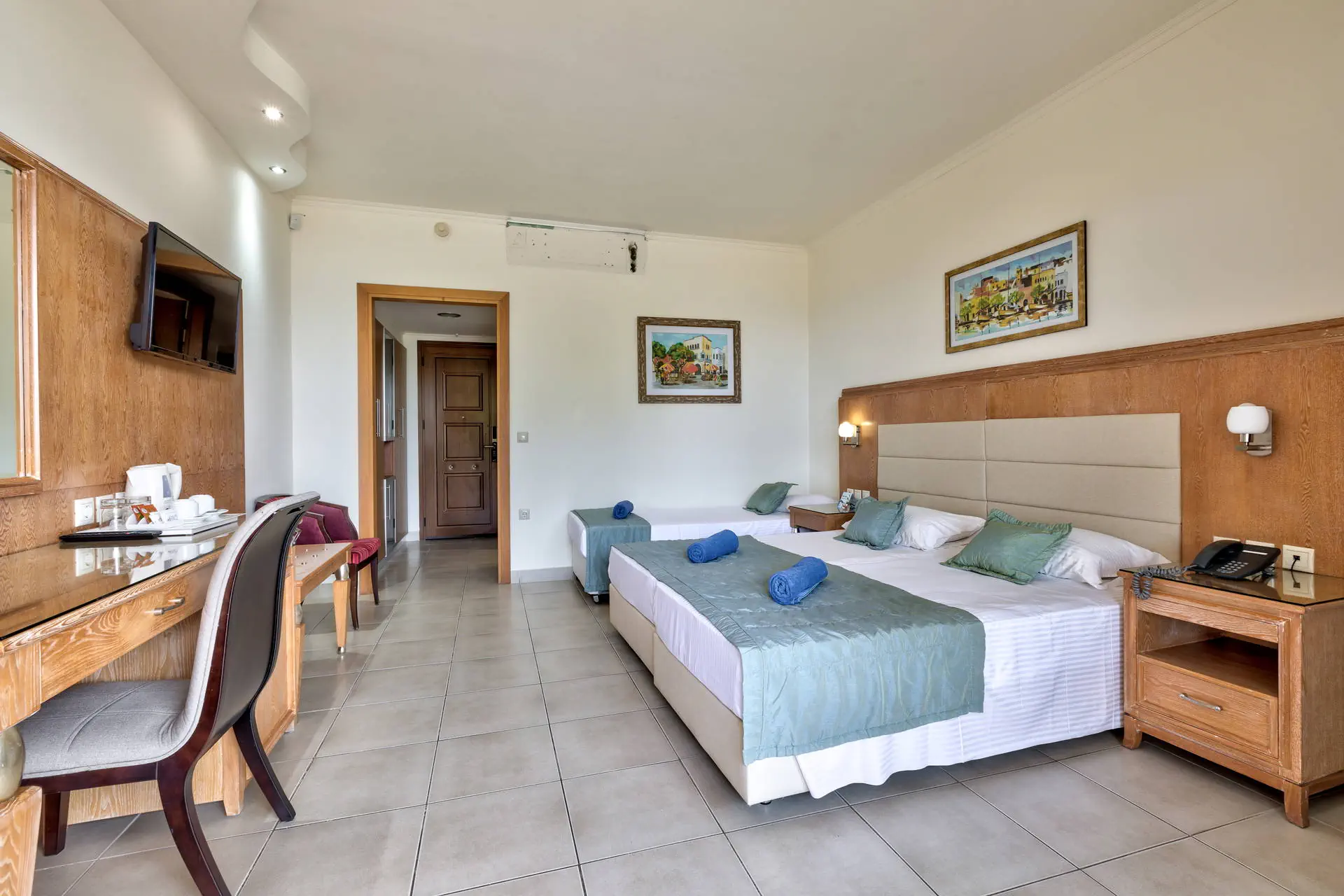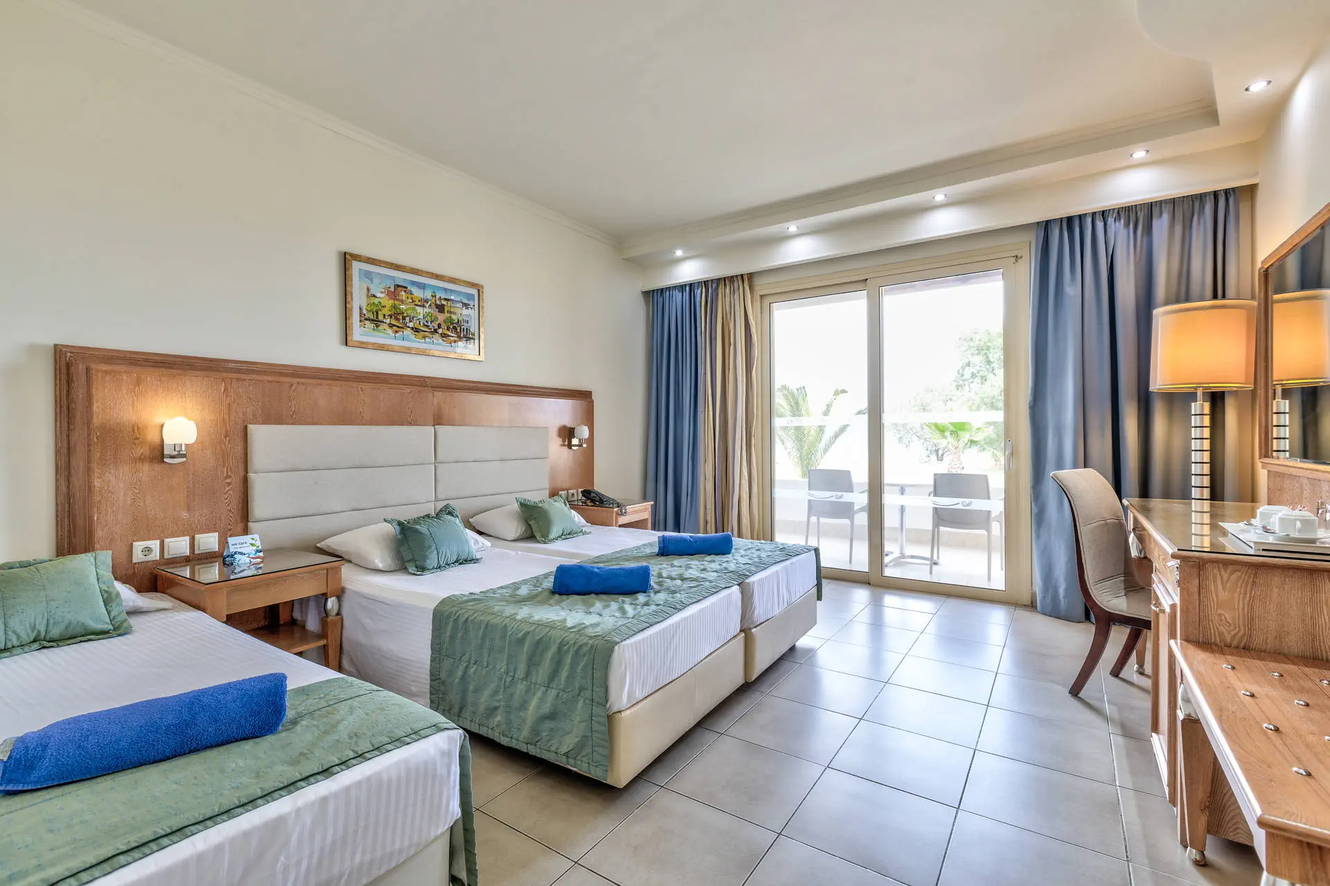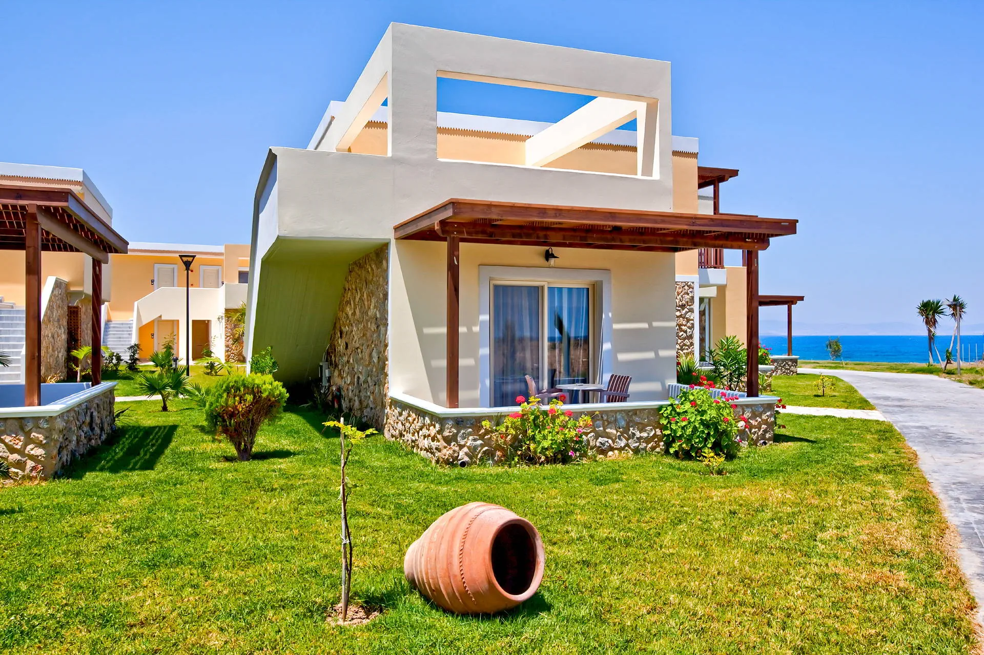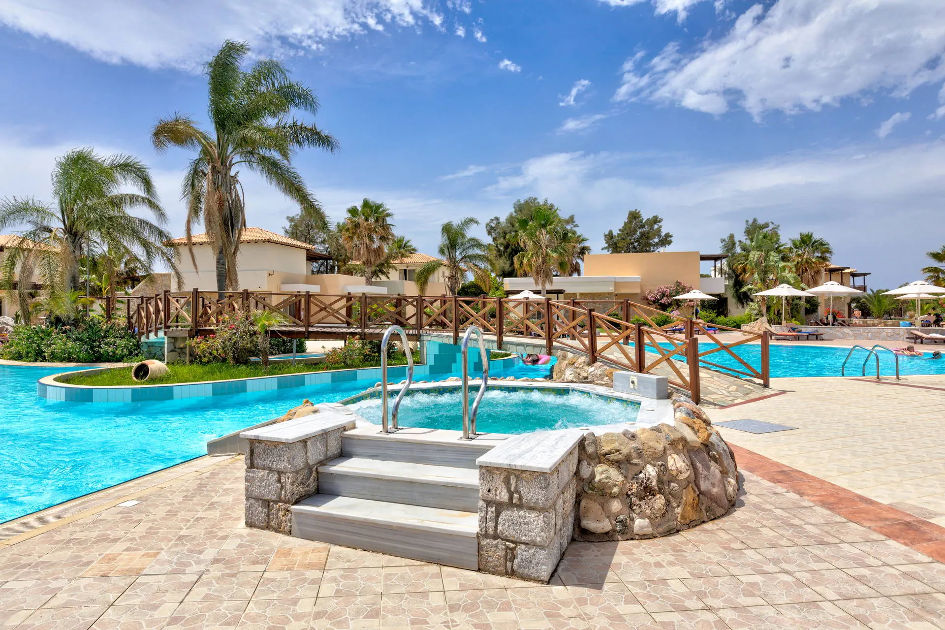 Do dyspozycji gości Recepcja z lobby dostępne dla Gości hotelu. 3 baseny ze słodką wodą, w tym 1 wewnętrzny (płatny), 2 brodziki dla dzieci, jacuzzi, leżaki i parasole przy basenach bezpłatnie, ręczniki kąpielowe dostępne za depozytem. Restauracje: klimatyzowana restauracja główna „Ambrosia” z zadaszonym tarasem zewnętrznym, bar główny. Pozostałe informacje: Internet Wi-Fi bezpłatny w częściach ogólnodostępnych, wypożyczalnia rowerów i samochodów (płatne), mini market (płatne). Kategoria lokalna ***** Naszym zdaniem Hotel oferuje pakiet all inclusive, który zapewnia pełen komfort podczas pobytu. To doskonałe miejsce dla osób ceniących spokój i relaks. Goście mogą w pełni oddać się odpoczynkowi, nie martwiąc się o dodatkowe koszty. Oferta jest idealna dla tych, którzy chcą spędzić wakacje w spokojnej atmosferze, z dala od zgiełku i codziennych trosk. Pokoje 175 elegancko urządzonych i przestronnych pokoi dla maksymalnie 5 osób (w zależności od typu pokoju). Na balkonie/tarasie meble ogrodowe (2 krzesła i stolik). Pokoje znajdują się w kilku budynkach typu bungalow. W pokojach łazienka (WC, wanna lub prysznic, suszarka do włosów), TV-Sat, telefon, klimatyzacja indywidualnie sterowana, sejf (bezpłatnie), lodówka. Hotel zapewnia wyłącznie łóżka typu Twin. Położenie Hotel położony jest w Psalidi, tuż przy plaży. Odległość od lotniska wynosi około 28 km. Obiekt znajduje się około 5 km od miasta Kos. Do miasta Kos można dostać się taksówką lub komunikacją miejską, a w pobliżu hotelu znajduje się przystanek autobusowy. UWAGA! Cena nie obejmuje lokalnego podatku turystycznego w wysokości ok. 15 EUR/pokój/dzień. Podatek jest obligatoryjny i płatny bezpośrednio w recepcji, przed zakwaterowaniem Klientów w hotelu. Program sportowy i animacyjny Dla każdego: siłownia, kort tenisowy i możliwość wypożyczenia sprzętu, tenis stołowy. Za dodatkową opłatą: bilard, centrum SPA z krytym basenem i sauną oferuje wiele zabiegów i masaży. Wyżywienie Rodzaje wyżywienia i posiłki: All Inclusive: Śniadania: obfity bufet 07:00 - 10:00. Obiady: 12:30 - 14:00, podczas obiadów piwo, wino, napoje bezalkoholowe i lody. Kolacje: obfity bufet 19:30 - 21:30, podczas kolacji piwo, wino, napoje bezalkoholowe i lody. Bary: Napoje bezalkoholowe i lokalne alkohole w godzinach 12:00 - 23:00 w wyznaczonych barach. Pozostałe informacje: Możliwość korzystania z all inclusive kończy się wraz z ostatnią dobą hotelową. Plaża Plaża bezpośrednio przy hotelu. Publiczna, kamienisto-piaszczysta. Leżaki i parasole bezpłatne. Internet Internet Wi-Fi w częściach ogólnodostępnych w cenie. Strona www