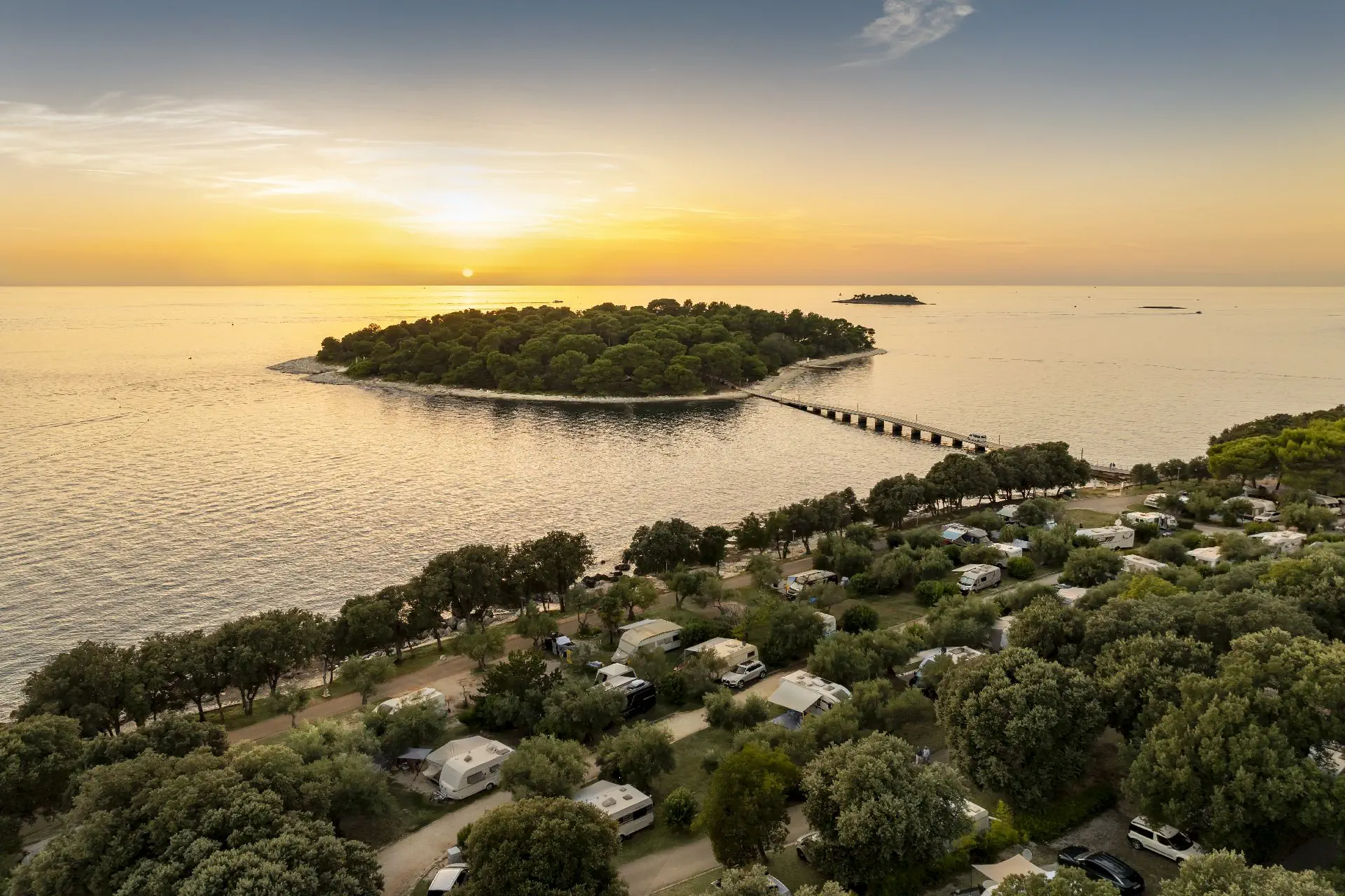 ok. 1000 m od centrum miejscowości Vrsar, przy ujściu pięknego kanału Limskiego. Lotnisko w Puli oddalone o ok. 55 km. Otoczony jest śródziemnomorską zielenią, morzem i naturalnymi plażami.
