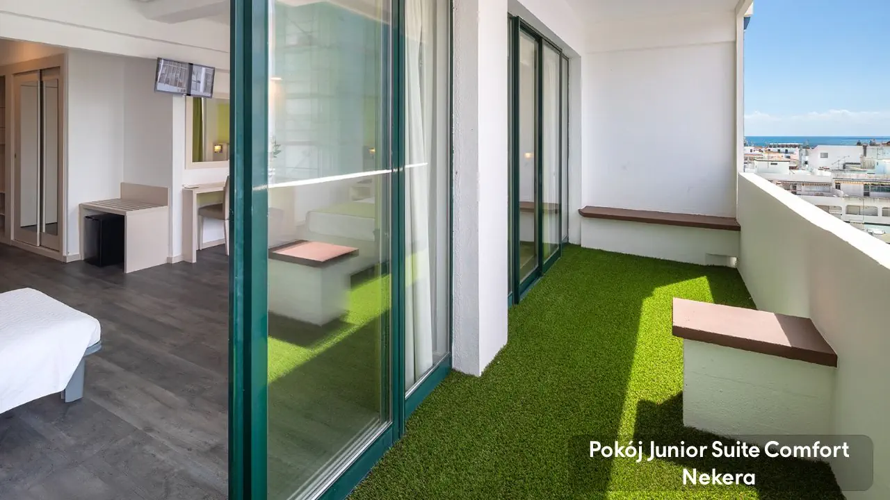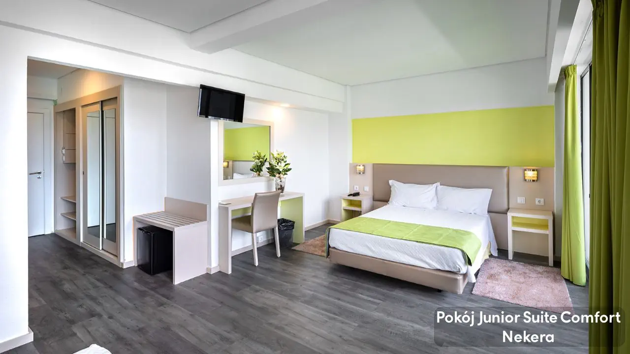 - maksymalne obłożenie 4 osoby dorosłe + 1 dziecko - dostępne łóżka - małżeńskie, jedno pojedyncze i sofa rozkładana, - łazienka z wanną lub prysznicem, suszarka do włosów - klimatyzacja, - TV LCD, - minibar, - sejf, - telefon, - balkon,