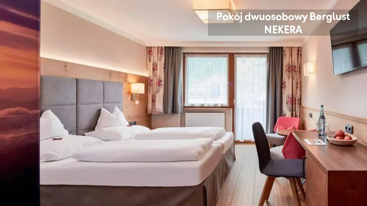 Czterogwiazdkowy hotel oferuje nowocześnie urządzone pokoje w budynku głównym i budynku bocznym Berglust połączonym podziemnym korytarzem. Do dyspozycji gości: recepcja, lobby, restauracja a la carte serwująca dania kuchni tradycyjnej, winiarnia, siłownia, basen kryty i zewnętrzny, parking, przechowalnia sprzętu narciarskiego.