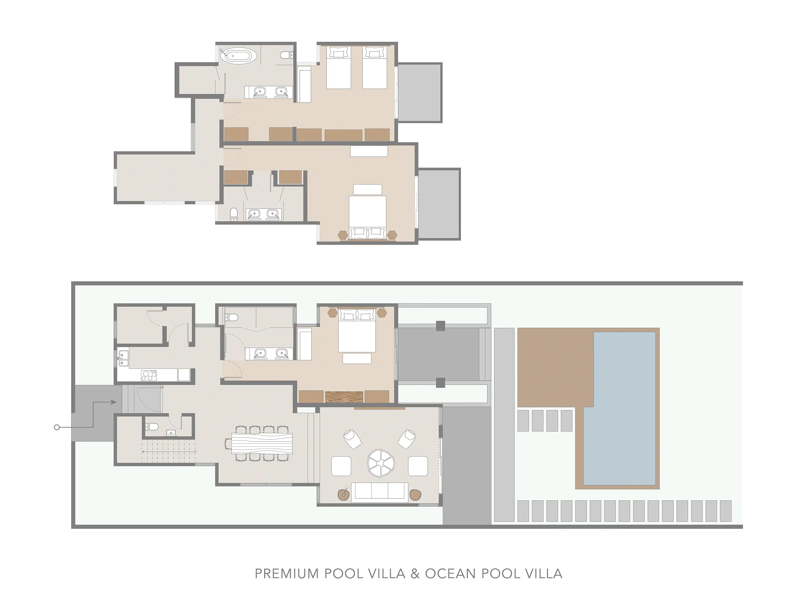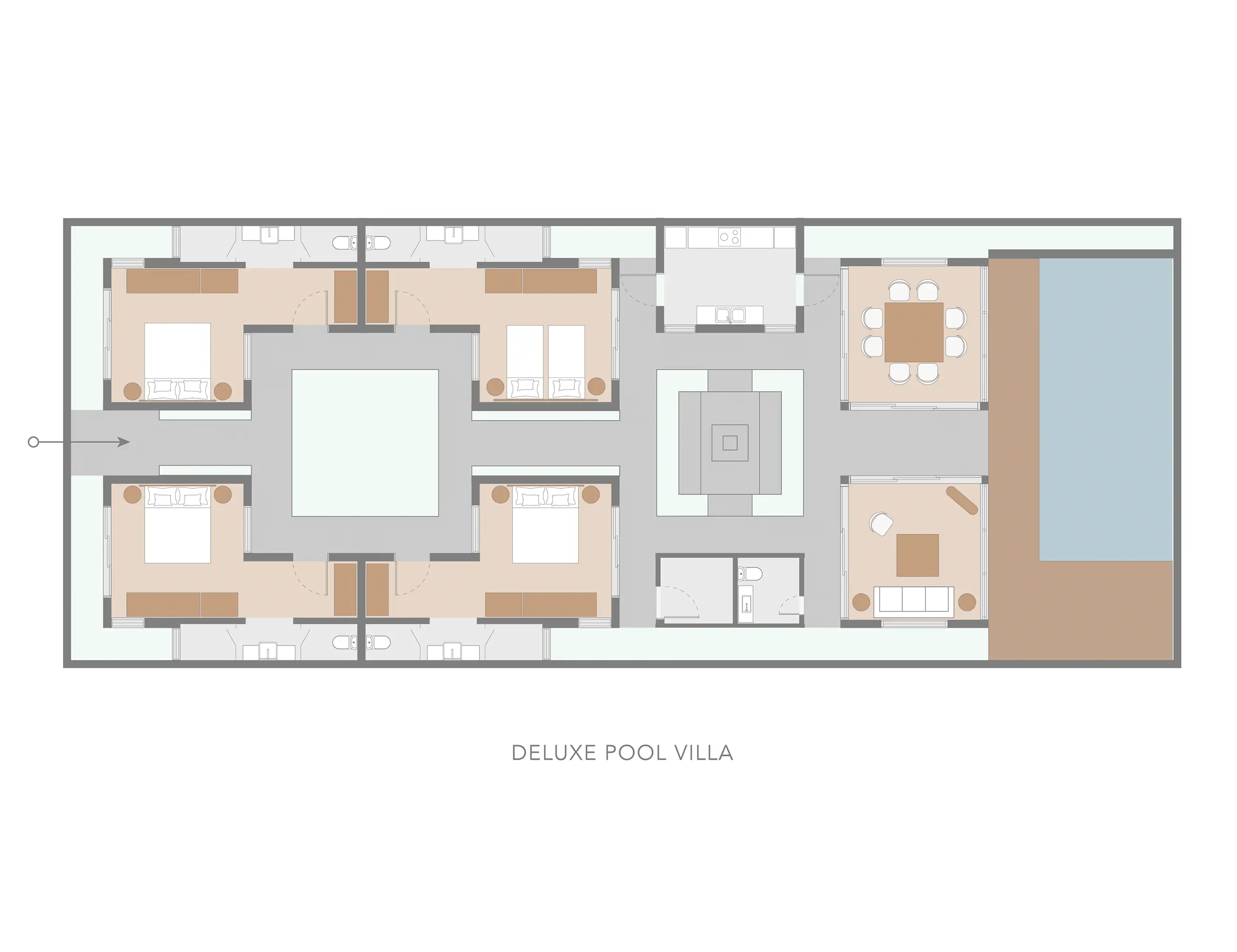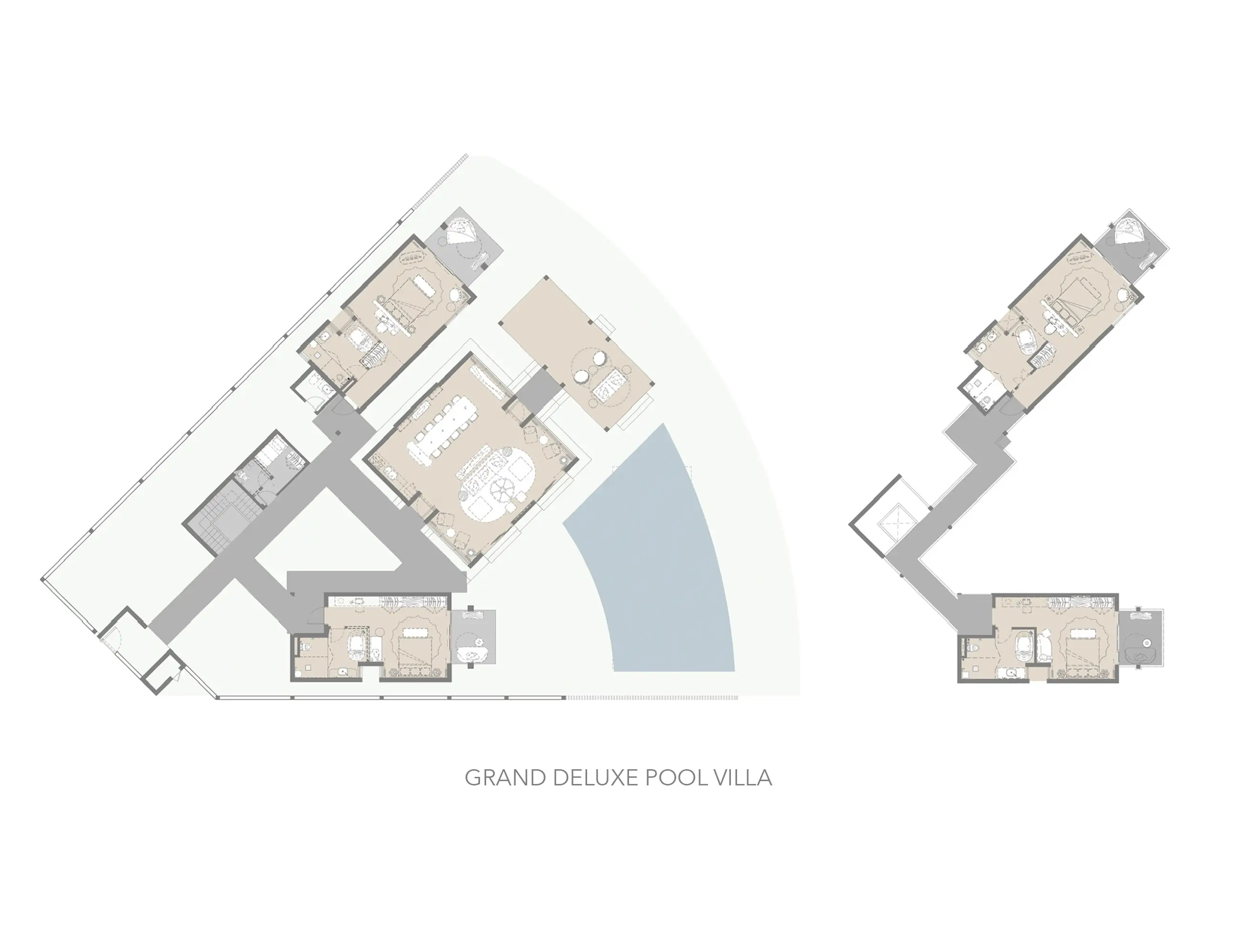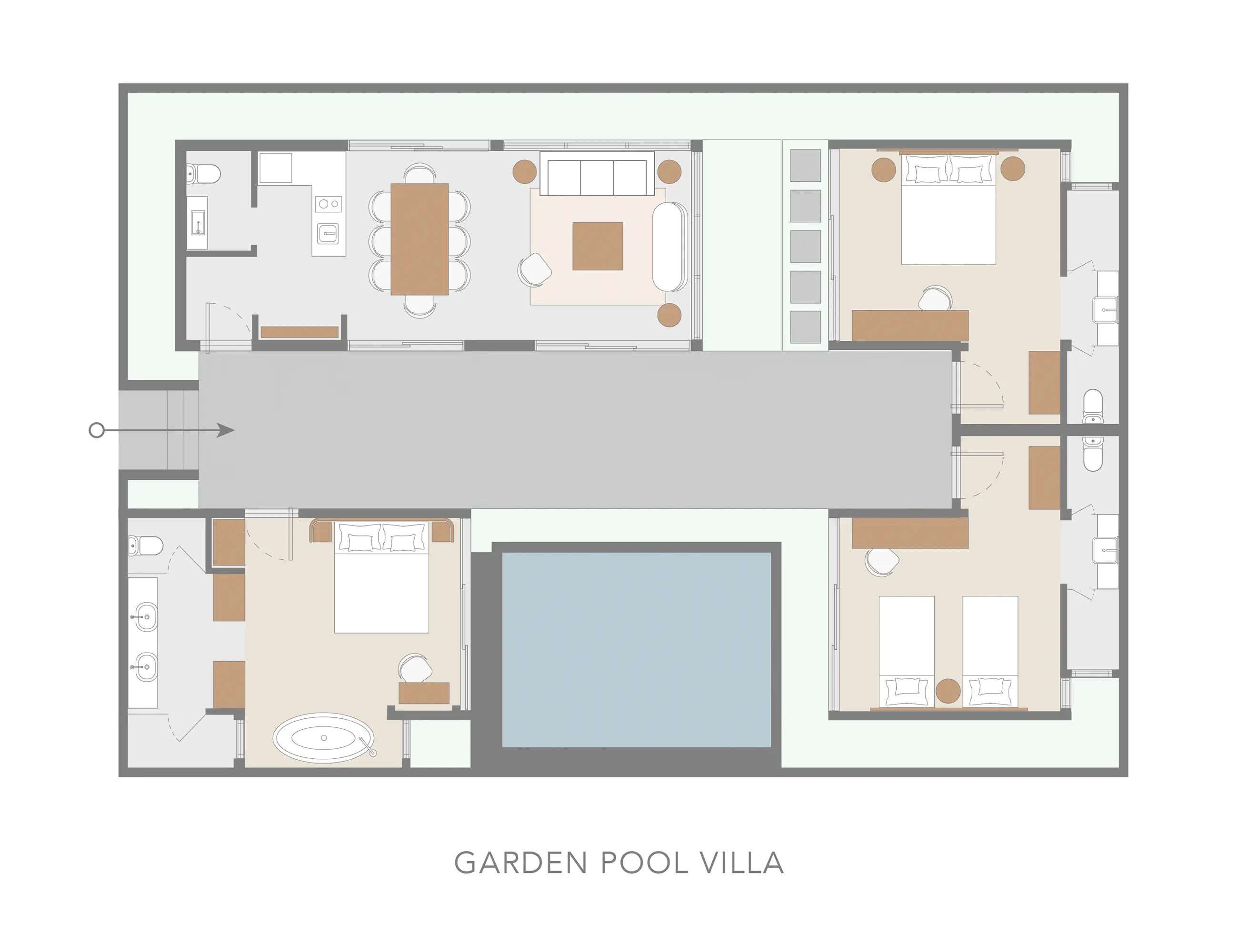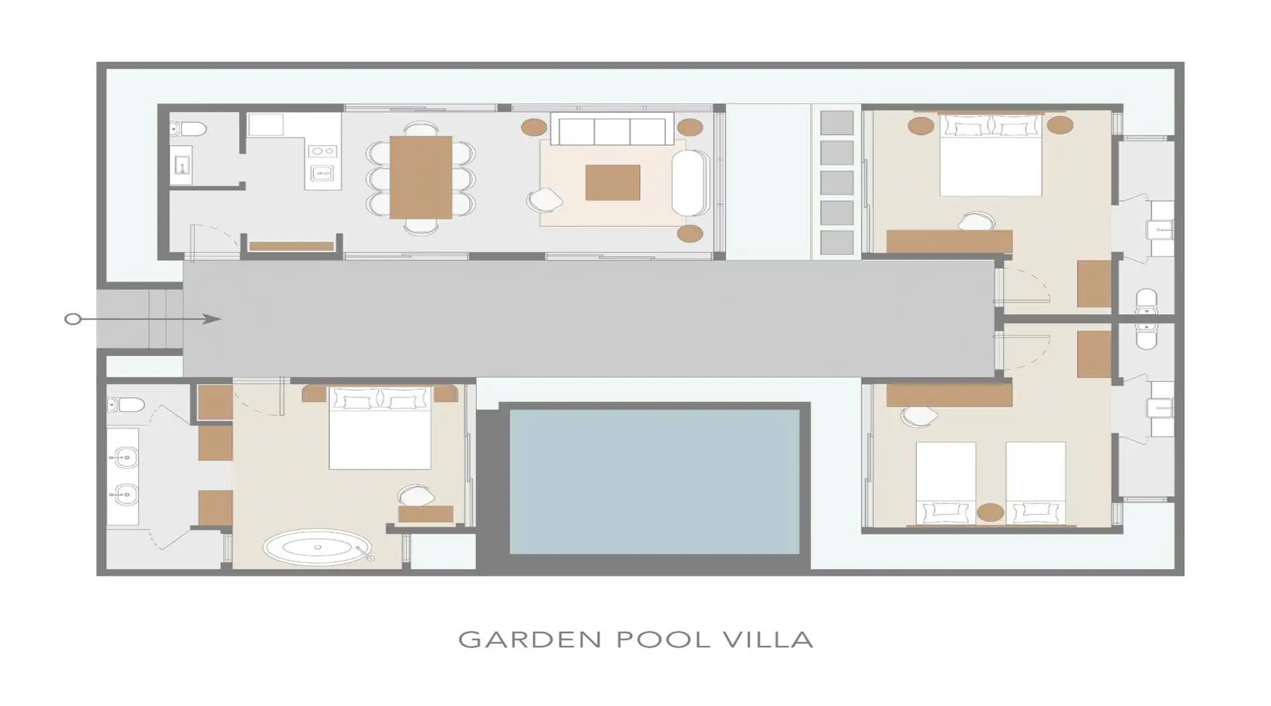 Informacje dodatkowe - 2 Bedroom Garden Pool Villa: wszystkie Garden Pool Villa są pierwotnie zaprojektowane jako wille 3-sypialniane (3 bedrooms) W przypadku rezerwacji 2-sypialnianej Garden Pool Villa (2 bedrooms) hotel zamyka jedną sypialnię Wszystkie sypialnie znajdują się w tym samym budynku willi i nie są rozmieszczone w oddzielnych budynkach (przejście między sypialniami przez patio).