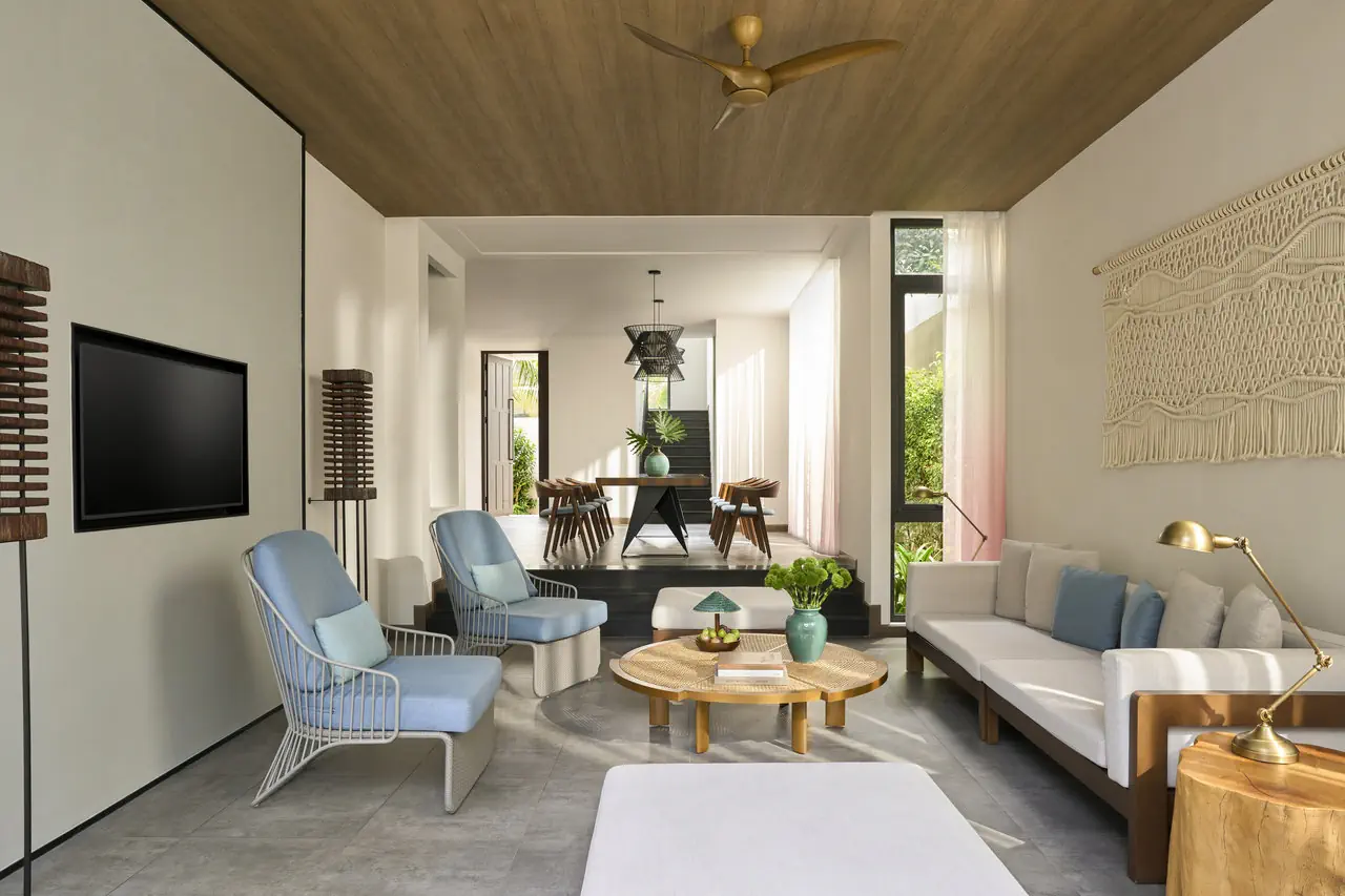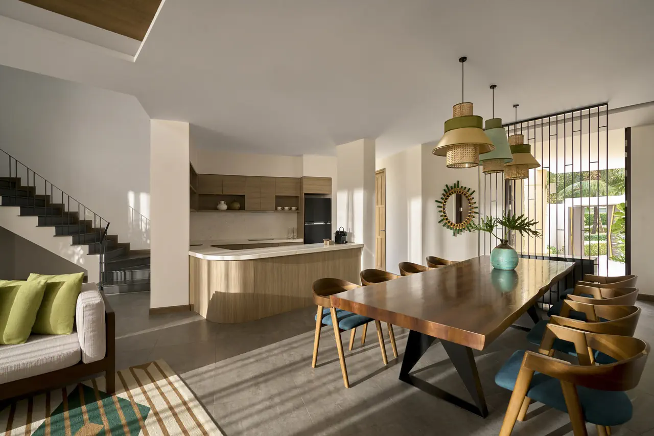 Dla max. 6 osób, Kanały telewizji: Angielski, Telefon w pokoju, Aneks kuchenny, wanna i prysznic , Powierzchnia pokoju: ok. 247 m2, Rodzaj podłogi: płytki, Sprzątanie codziennie, Salon, Jadalnia , część jadalniana, 2 sypialnie, Drzwi łączące między pokojami, Maksymalna liczba osób dorosłych: 4, Maksymalna liczba dzieci: 2, Widok na ogród i basen, Liczba łazienek: 2, Liczba toalet: 3, Zestaw do parzenia kawy i herbaty, Klimatyzacja: Klimatyzacja indywidualna