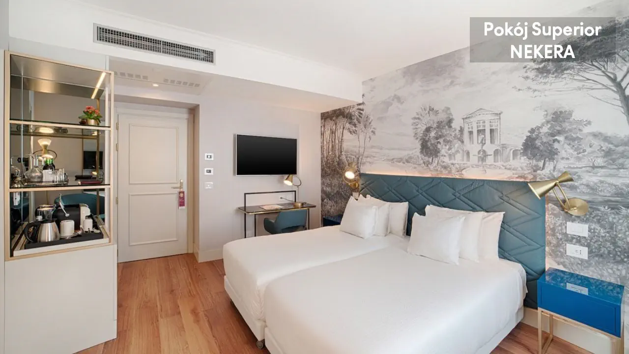 Pokój Superior: ok. 23 m2, mogący zakwaterować do dwóch osób, jedno łóżko podwójne lub dwa łóżka pojedyncze, TV, Wi-Fi, klimatyzacja, ekspres do kawy, prywatna łazienka (prysznic z deszczownicą, toaleta, umywalka, suszarka do włosów, zestaw kosmetyków, szlafrok, kapcie). Pokój Premium z widokiem: ok. 25 m2, mogący zakwaterować do dwóch osób, jedno łóżko podwójne lub dwa łóżka pojedyncze; poza tym wyposażony jak pokój Superior. Pokój rodzinny: ok. 41 m2, mogący zakwaterować do pięciu osób, jedno łóżko podwójne i dwa łóżka pojedyncze; poza tym wyposażony jak pokój Superior.