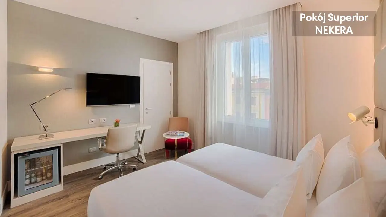 Pokój Superior: ok. 17 m2, mogący zakwaterować do dwóch osób, jedno łóżko podwójne lub dwa łóżka pojedyncze, klimatyzacja, TV, Wi-Fi, ekspres do kawy, czajnik, minibar (za opłatą), prywatna łazienka (wanna lub prysznic, toaleta, umywalka, suszarka do włosów, szlafrok kapcie). Pokój Premium: pokój większy, ok. 22 m2; poza tym wyposażony jak pokój Superior.