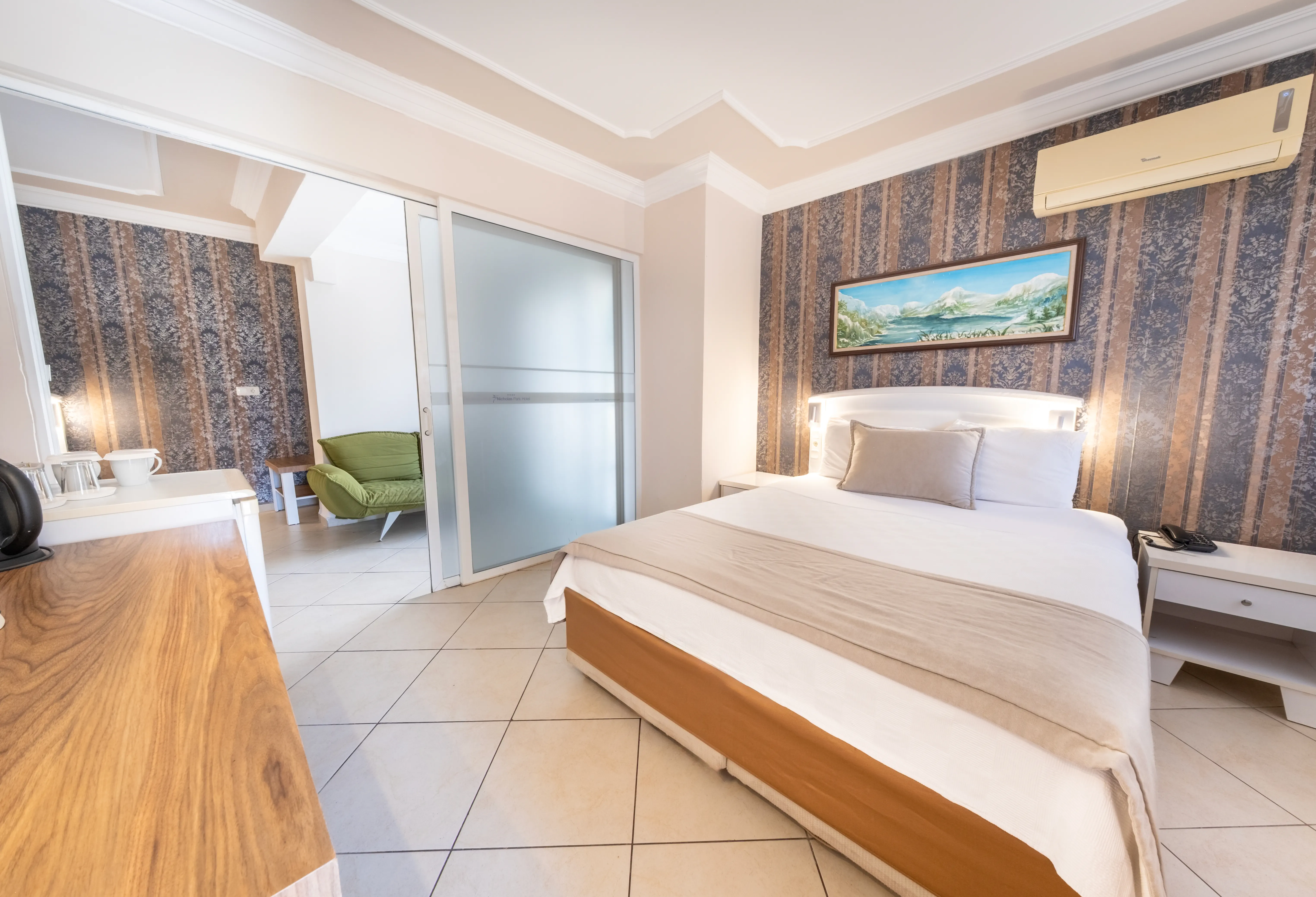 Dla max. 2 osób, Przestrzeń zewnętrzna: Balkon lub taras, Kanały telewizji: Angielski, Telefon w pokoju, prysznic, Powierzchnia pokoju: ok. 18 - 22 m2, Dostawka: sofa, Rodzaj podłogi: płytki, Sprzątanie codziennie, 1 sypialnia, Maksymalna liczba osób dorosłych: 3, Maksymalna liczba dzieci: 2, Widok na morze, Liczba łazienek: 1, Liczba toalet: 1, Zestaw do parzenia kawy i herbaty, Klimatyzacja: Klimatyzacja indywidualna