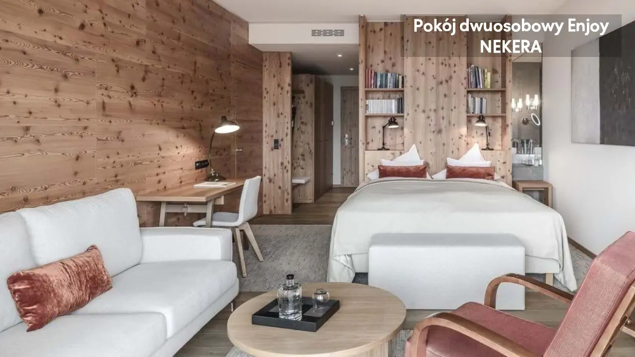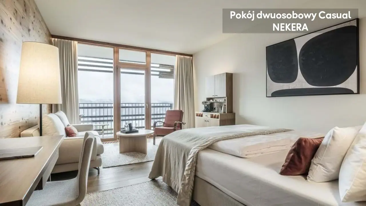 Pokój dwuosobowy Casual: ok. 35 m2, mogący zakwaterować do dwóch osób, jedno łóżko podwójne, TV, Wi-Fi, biurko, szafa, sejf, czajnik, ogrzewanie, prywatna łazienka (prysznic, toaleta, umywalka, suszarka do włosów, ręczniki, szlafrok), balkon lub taras z widokiem na góry. Pokój dwuosobowy Enjoy: ok. 36 m2, mogący zakwaterować do dwóch osób, ekspres do kawy, pokój z balkonem z widokiem na góry; poza tym wyposażony jak pokój dwuosobowy Casual.