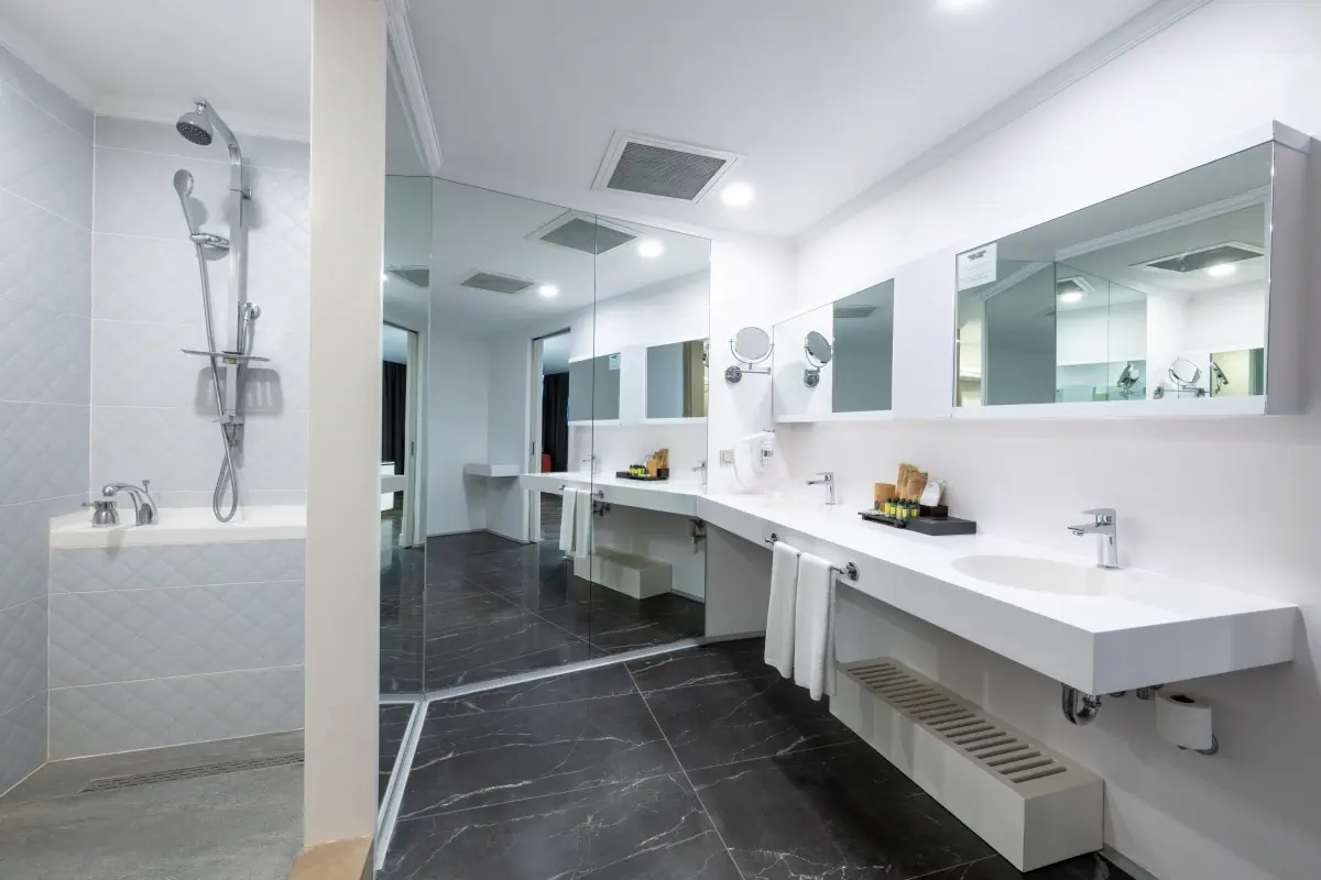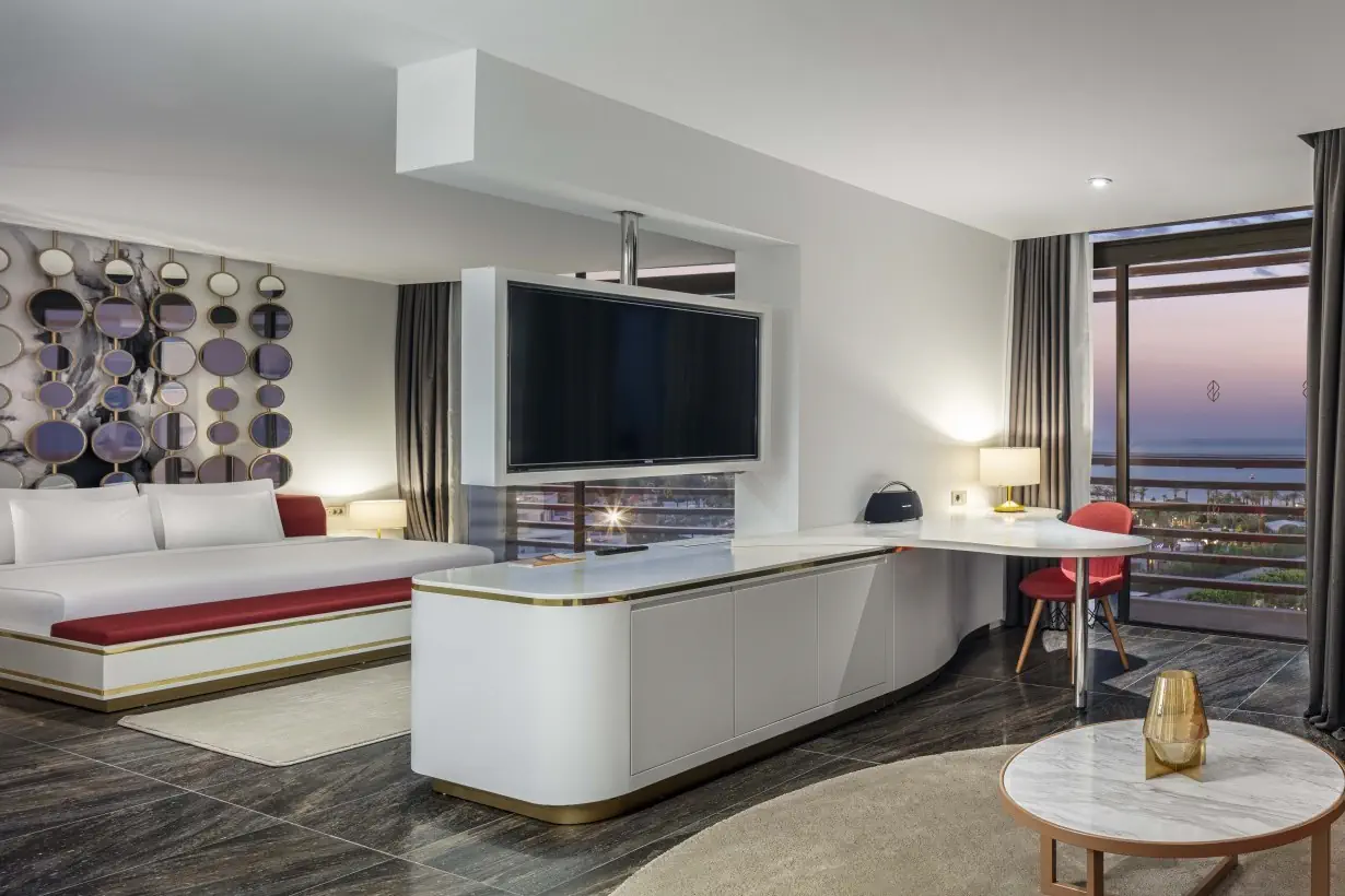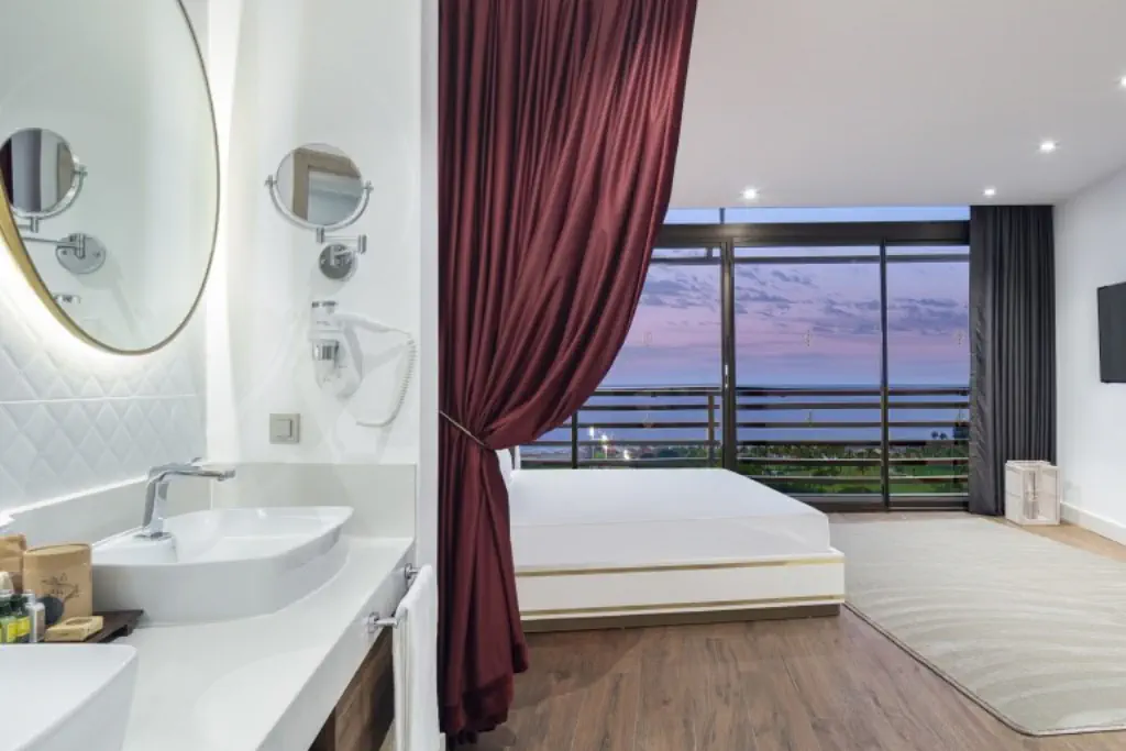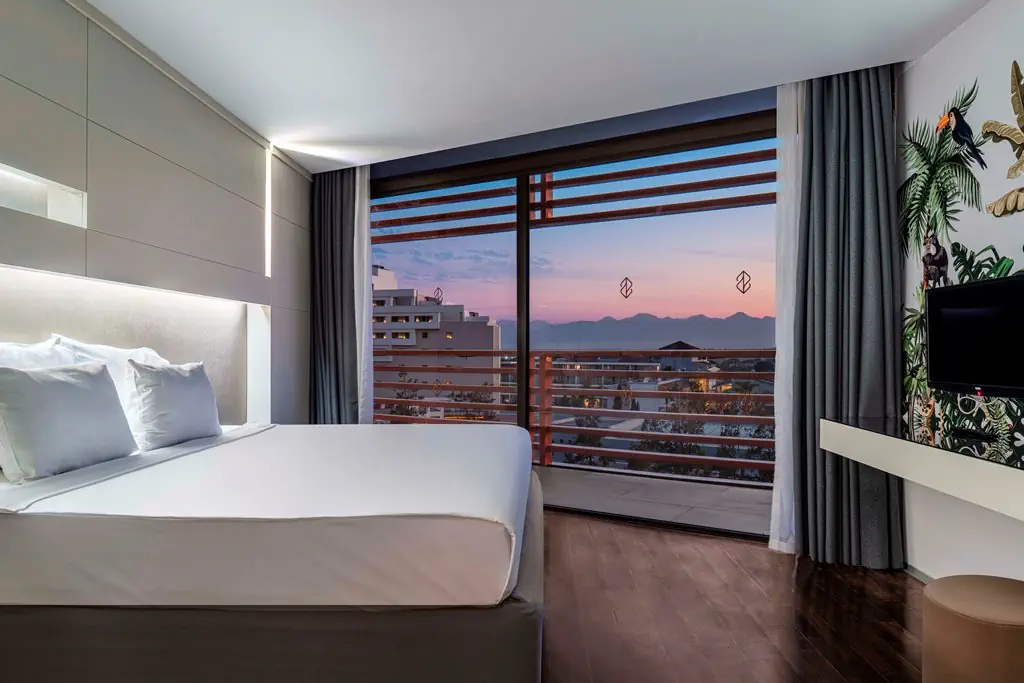 Dla max. 3 osób, Przestrzeń zewnętrzna: Balkon, Kanały telewizji: Angielski, Telefon w pokoju, prysznic, Powierzchnia pokoju: ok. 32 m2, Dostawka: łóżko rozkładane, Rodzaj podłogi: laminat, Sprzątanie codziennie, 1 sypialnia, Maksymalna liczba osób dorosłych: 2, Maksymalna liczba dzieci: 2, Od strony morza, Liczba łazienek: 1, Liczba toalet: 1, Zestaw do parzenia kawy i herbaty, Klimatyzacja: Klimatyzacja centralna, Działa w godzinach: 24h