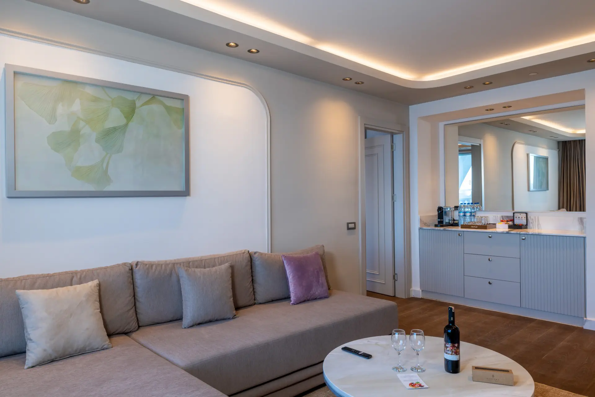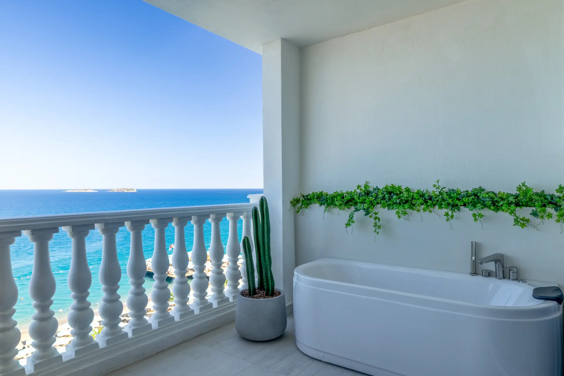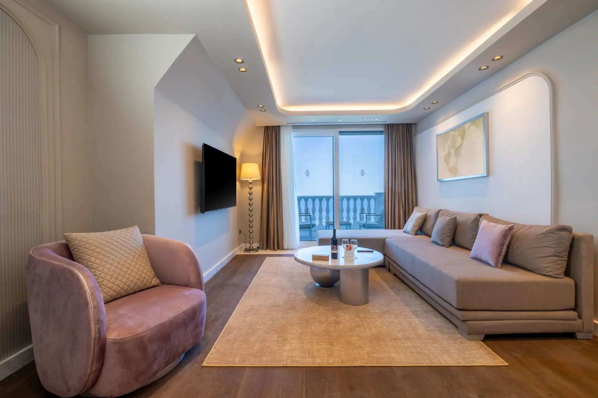 Dla max. 4 osób, Przestrzeń zewnętrzna: Balkon, Kanały telewizji: Angielski, Telefon w pokoju, wanna i prysznic , Powierzchnia pokoju: ok. 78 m2, Dostawka: sofa, Rodzaj podłogi: wykładzina, Sprzątanie codziennie, Salon, 1 sypialnia, Drzwi łączące między pokojami, Maksymalna liczba osób dorosłych: 3, Maksymalna liczba dzieci: 2, Widok na morze, Liczba łazienek: 1, Liczba toalet: 1, Klimatyzacja: Klimatyzacja centralna