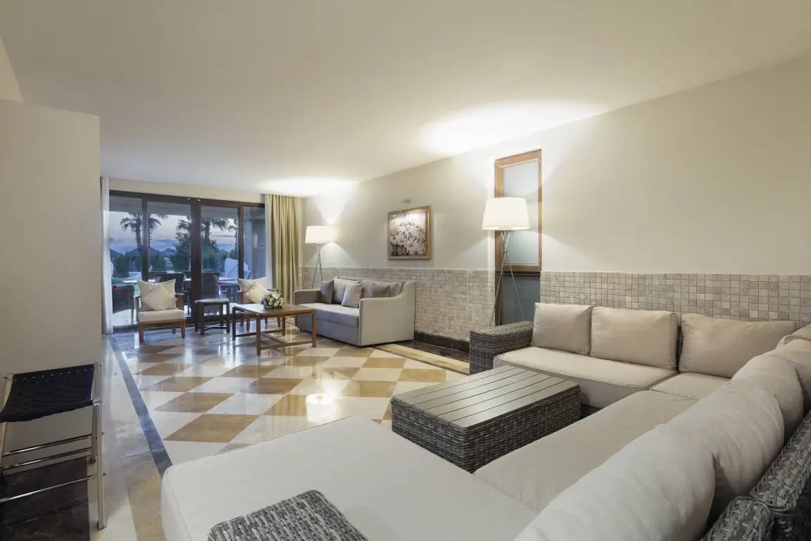 Dla max. 6 osób, Przestrzeń zewnętrzna: Taras, Kanały telewizji: Angielski, Telefon w pokoju, prysznic, Powierzchnia pokoju: ok. 86 m2, Dostawka: sofa, Rodzaj podłogi: płytki, Sprzątanie codziennie, Salon, 2 sypialnie, Drzwi łączące między pokojami, Maksymalna liczba osób dorosłych: 4, Maksymalna liczba dzieci: 2, Od strony basenu,Frontalny widok na basen,Widok na basen, Liczba łazienek: 2, Liczba toalet: 2, Zestaw do parzenia kawy i herbaty, Klimatyzacja: Klimatyzacja centralna, Działa w godzinach: 24hStyczeń, Luty, Marzec, Kwiecień, Maj, Czerwiec, Lipiec, Sierpień, Wrzesień, Październik, Listopad, Grudzień, Nieznany