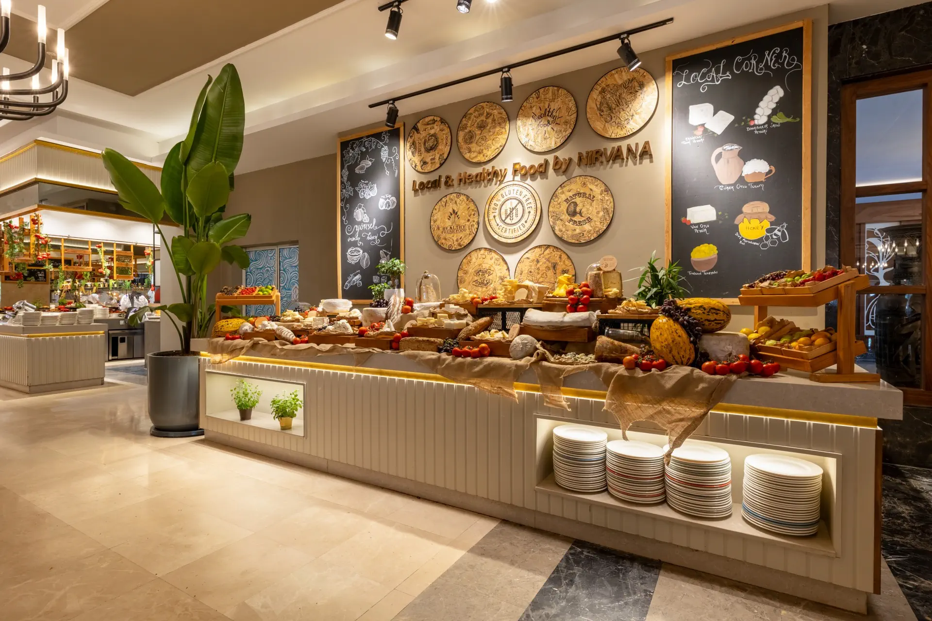 Śniadanie (07:00 - 10:30) - samsara main restaurant, stół szwedzki, Śniadanie (09:00 - 11:00) - Blue Sky Lounge, a la carte, Późne śniadanie (10:30 - 11:00) - samsara main restaurant, stół szwedzki, Obiad (12:30 - 14:30) - samsara main restaurant, stół szwedzki, Przekąski (12:00 - 17:00) - THE SEA CLUB, a la carte ¹⁾, Podwieczorek (10:00 - 23:00) - Patisserie, określone menu, Kolacja (19:00 - 21:30) - samsara main restaurant, stół szwedzki, Późna kolacja (24h) - FELLINI BISTRO 24, a la carte, the sea club (19:00 - 23:00) (19:00 - 23:00), bez limitu, Kuchnia: owoce morza , Wymagana rezerwacja: Tak ¹⁾, welldone steakhouse (19:00 - 23:00) (19:00 - 23:00), bez limitu, Kuchnia: międzynarodowa, Wymagana rezerwacja: Tak ¹⁾, the georgian (19:00 - 23:00) (19:00 - 23:00), raz podczas pobytu, Kuchnia: Włoska, Wymagana rezerwacja: Tak ¹⁾, MYHN (19:00 - 23:00) (19:00 - 23:00), raz podczas pobytu, Kuchnia: lokalna, Wymagana rezerwacja: Tak, BLUE SKY LOUNGE (19:00 - 23:00) (19:00 - 23:00), raz podczas pobytu, Kuchnia: międzynarodowa, Wymagana rezerwacja: Tak, Lobby Bar (24h), Napoje: alkohole lokalne, wybrane alkohole importowane, napoje bezalkoholowe (24h), Pier Bar (09:00 - 02:00), Napoje: alkohole lokalne, wybrane alkohole importowane, napoje bezalkoholowe (09:00 - 02:00), BRAHMAN LAGOON BAR (09:00 - 18:00), Napoje: alkohole lokalne, wybrane alkohole importowane, napoje bezalkoholowe (09:00 - 18:00), VICNA LAGOON BAR (09:00 - 18:00), Napoje: alkohole lokalne, wybrane alkohole importowane, napoje bezalkoholowe (09:00 - 18:00), Ramona Lagoon Bar (09:00 - 18:00), Napoje: alkohole lokalne, wybrane alkohole importowane, napoje bezalkoholowe (09:00 - 18:00), Pena Lagoon Bar (09:00 - 18:00), Napoje: alkohole lokalne, wybrane alkohole importowane, napoje bezalkoholowe (09:00 - 18:00), Karman Lagoon Bar (09:00 - 18:00), Napoje: alkohole lokalne, wybrane alkohole importowane, napoje bezalkoholowe (09:00 - 18:00), Jazar Lagoon Bar (09:00 - 18:00), Napoje: alkohole lokalne, wybrane alkohole importowane, napoje bezalkoholowe (09:00 - 18:00), SPLENDID BAR (09:00 - 00:00), Napoje: alkohole lokalne, wybrane alkohole importowane, napoje bezalkoholowe (09:00 - 00:00), SKY BAR (23:00 - 02:00), Napoje: alkohole lokalne, wybrane alkohole importowane, napoje bezalkoholowe (23:00 - 02:00), STARBUCKS (10:00 - 23:00), Napoje: napoje bezalkoholowe (10:00 - 23:00), napoje bezalkoholowe, alkohole lokalne, wybrane alkohole importowane, lody, pakiety dla nowożeńców, pakiety urodzinowe (na życzenie), cukiernia, room service ¹⁾, Minibar w pokoju ¹⁾ - dodatkowo płatne