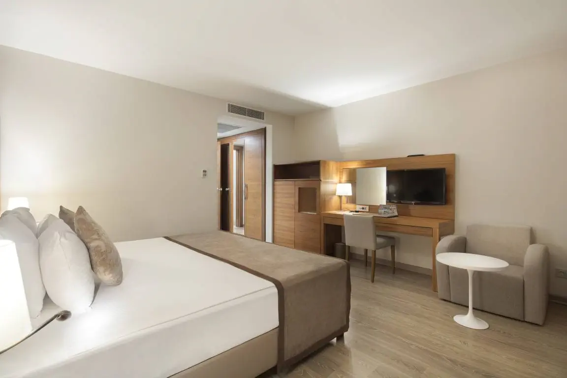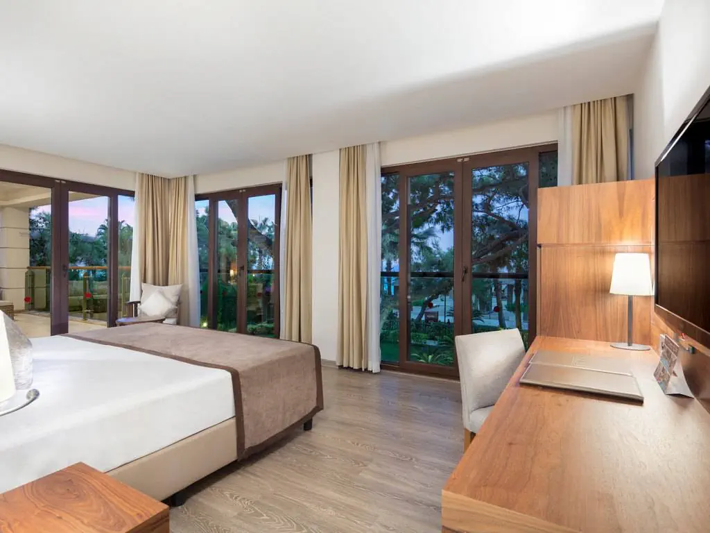 Dla max. 4 osób, Przestrzeń zewnętrzna: Balkon, Kanały telewizji: Angielski, Telefon w pokoju, prysznic, Powierzchnia pokoju: ok. 33 m2, Dostawka: sofa, Rodzaj podłogi: laminat, Sprzątanie codziennie, 1 sypialnia, Maksymalna liczba osób dorosłych: 3, Maksymalna liczba dzieci: 2, Widok na ogród,Widok na basen,Widok na morze, Liczba łazienek: 1, Liczba toalet: 1, Zestaw do parzenia kawy i herbaty, Klimatyzacja: Klimatyzacja centralna, Działa w godzinach: 24hStyczeń, Luty, Marzec, Kwiecień, Maj, Czerwiec, Lipiec, Sierpień, Wrzesień, Październik, Listopad, Grudzień, Nieznany