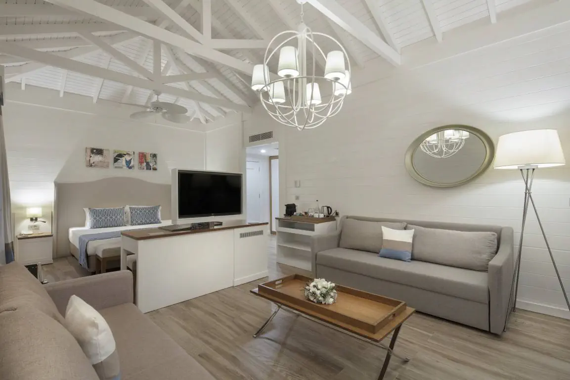 Dla max. 4 osób, Przestrzeń zewnętrzna: Balkon lub taras, Kanały telewizji: Angielski, Telefon w pokoju, prysznic, Powierzchnia pokoju: ok. 56 m2, Dostawka: sofa, Rodzaj podłogi: laminat, Sprzątanie codziennie, Salon, część jadalniana, 1 sypialnia, Drzwi łączące między pokojami, Maksymalna liczba osób dorosłych: 4, Maksymalna liczba dzieci: 2, Widok na ogród,Od strony basenu,Frontalny widok na basen,Widok na basen, Wyjście do wspólnego basenu, Liczba łazienek: 1, Liczba toalet: 1, Zestaw do parzenia kawy i herbaty, Klimatyzacja: Klimatyzacja centralna, Działa w godzinach: 24h, przez cały rok