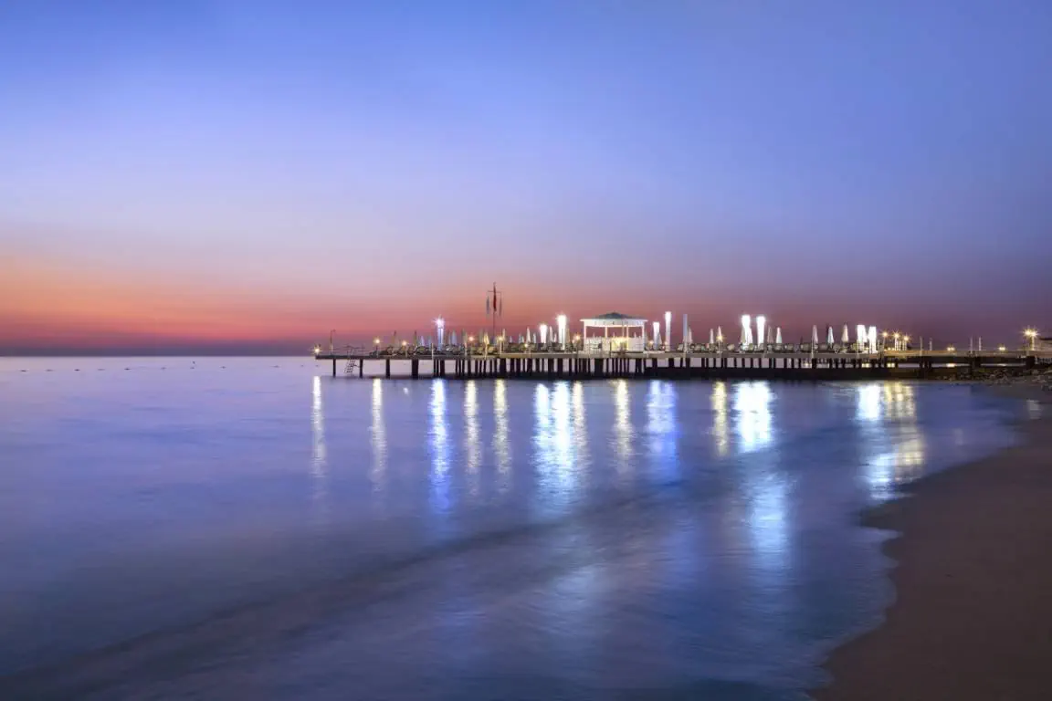 Prywatna, Piaszczysta, Piaszczysto-żwirowe zejście do morza, długość plaży: 900 m, pomost na plaży, Parasole - bezpłatnie, Leżaki - bezpłatnie, Ręczniki - bezpłatnie, Pawilony na plaży - płatne, Beach Bar - bezpłatnie, Prysznic
