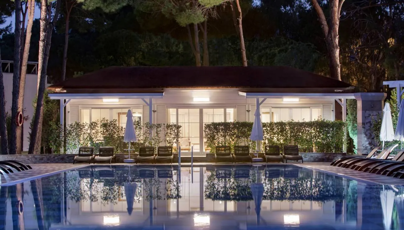 Duży kompleks hotelowy, który obejmuje główne budynki i kilka luksusowych willi, znajduje się w miejscowości Beldibi, 16 km od miasta Kemer, nad brzegiem morza. Hotel prezentuje wyjątkową koncepcję wypoczynku w zgodzie z naturą, z priorytetem zdrowej kuchni i zdrowego stylu życia. Malowniczo położony z pięknymi widokami na morze i góry Taurus zachęca do spędzenia rodzinnych wakacji w otoczeniu pachnącego, sosnowego lasu. Oferuje połączenie niezliczonych atrakcji i zabawy w miniklubie dla dzieci.