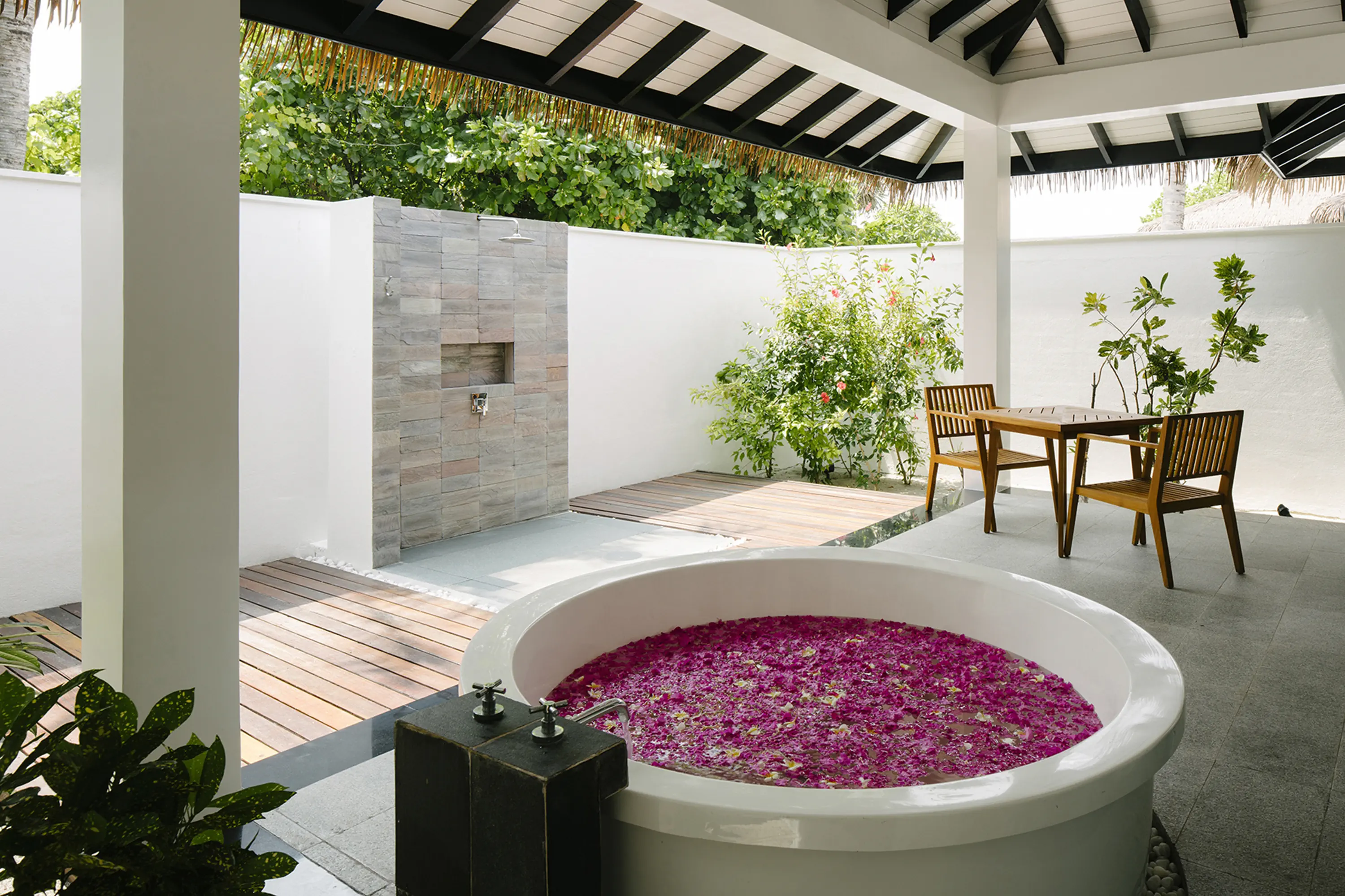 Dla max. 4 osób, Przestrzeń zewnętrzna: Taras, Kanały telewizji: Angielski, Telefon w pokoju, wanna i prysznic , Powierzchnia pokoju: ok. 186 m2, Dostawka: łóżko standardowe, Rodzaj podłogi: drewno, Sprzątanie codziennie, 1 sypialnia, Maksymalna liczba osób dorosłych: 3, Maksymalna liczba dzieci: 2, Concierge (bezpłatnie), Widok na lagunę, Liczba łazienek: 1, Liczba toalet: 1, Zestaw do parzenia kawy i herbaty, Klimatyzacja: Klimatyzacja indywidualna