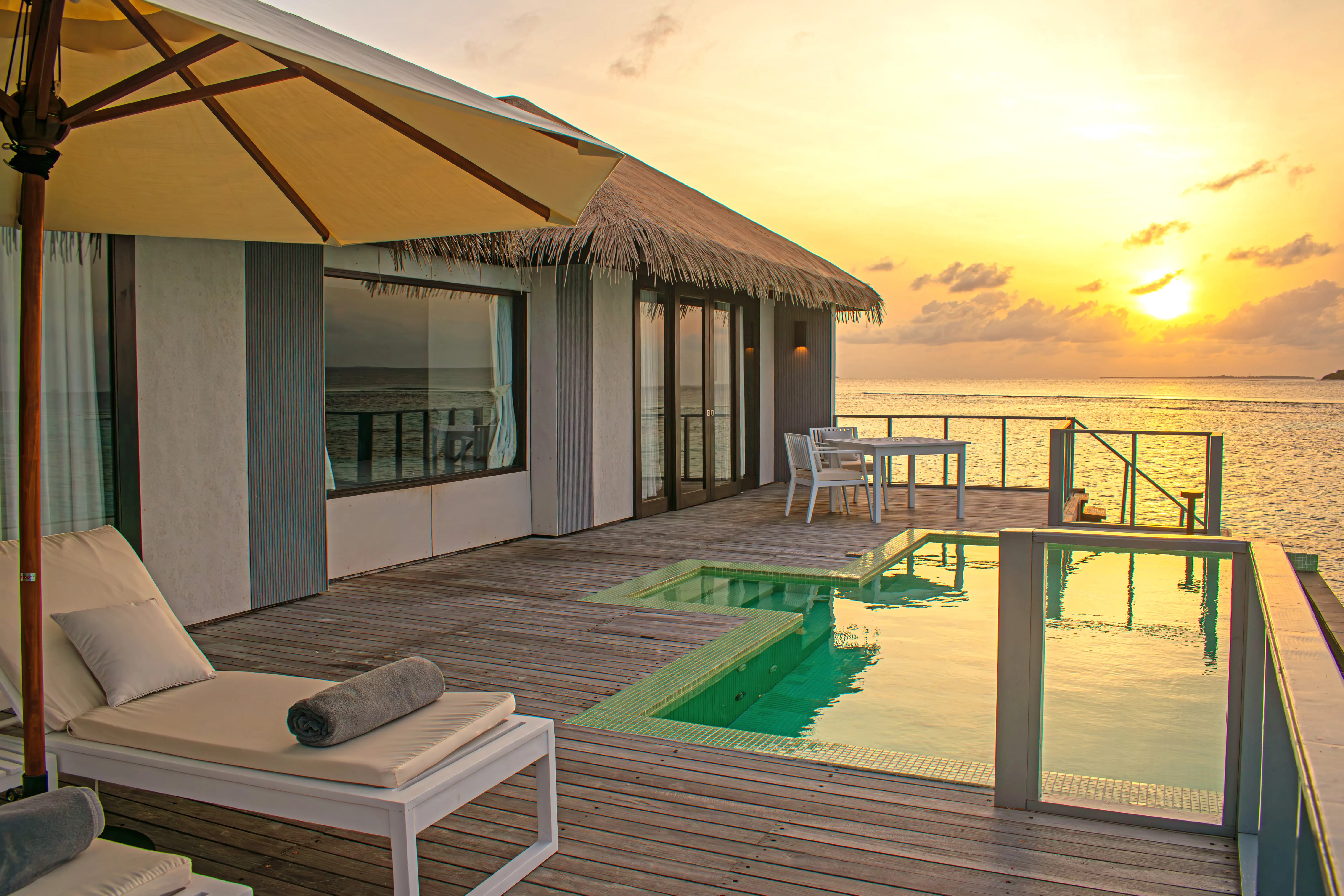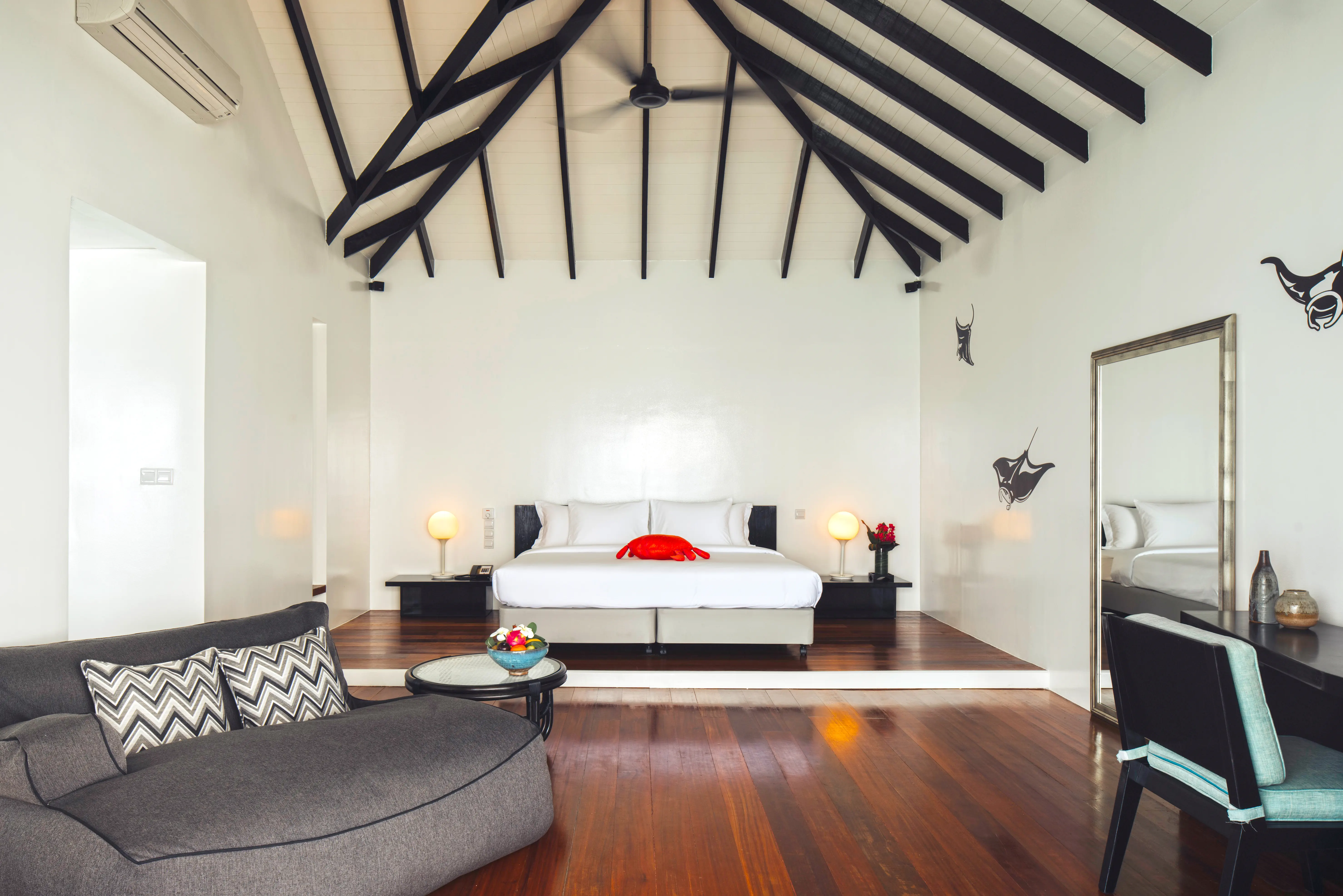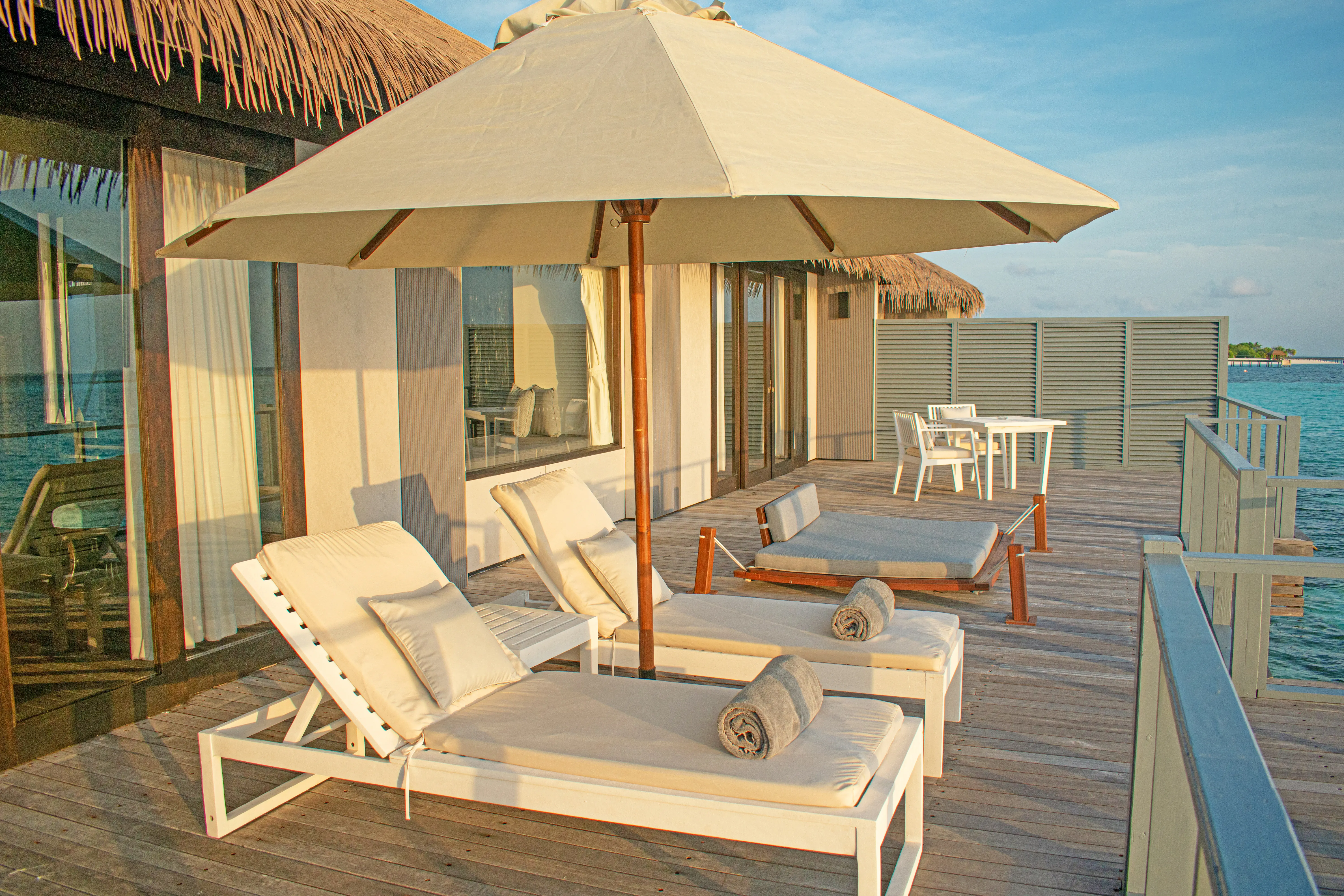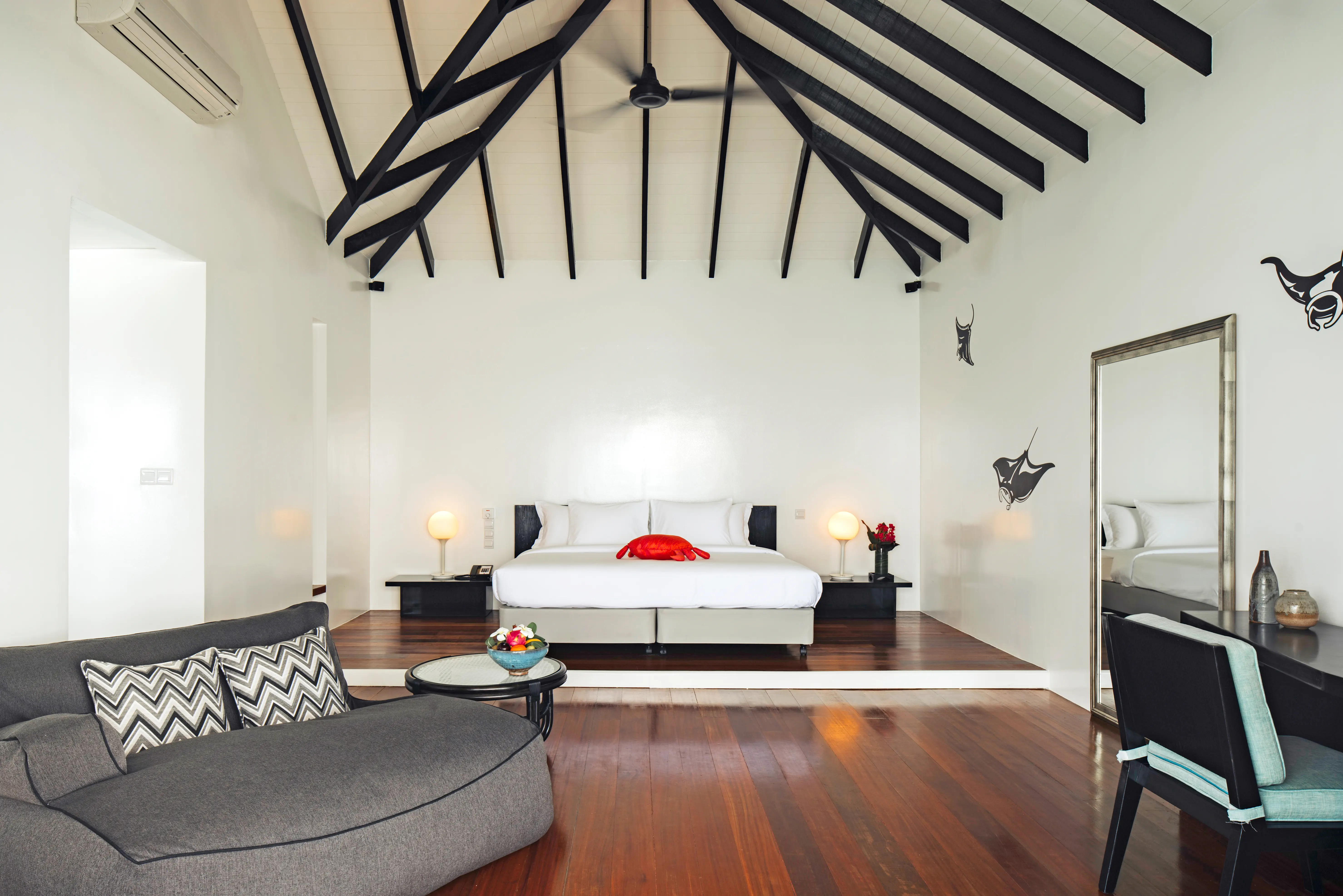 Dla max. 4 osób, Przestrzeń zewnętrzna: Taras, Kanały telewizji: Angielski, Telefon w pokoju, wanna i prysznic , Powierzchnia pokoju: ok. 175 m2, Dostawka: łóżko standardowe, Rodzaj podłogi: drewno, Sprzątanie codziennie, 1 sypialnia, Maksymalna liczba osób dorosłych: 3, Maksymalna liczba dzieci: 2, Concierge (bezpłatnie), Frontalny widok na plażę,Widok na lagunę, Liczba łazienek: 1, Liczba toalet: 1, Zestaw do parzenia kawy i herbaty, Klimatyzacja: Klimatyzacja indywidualna