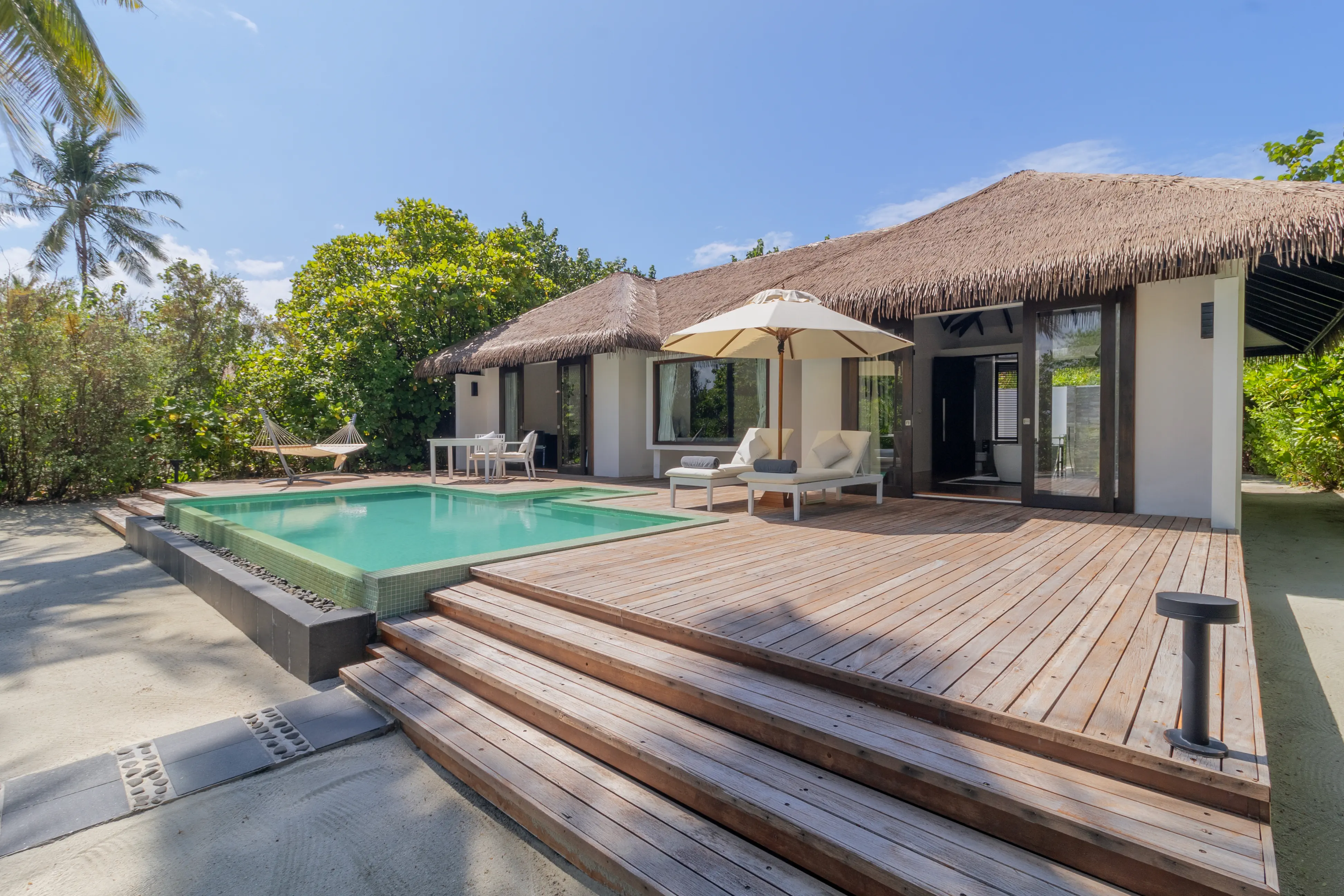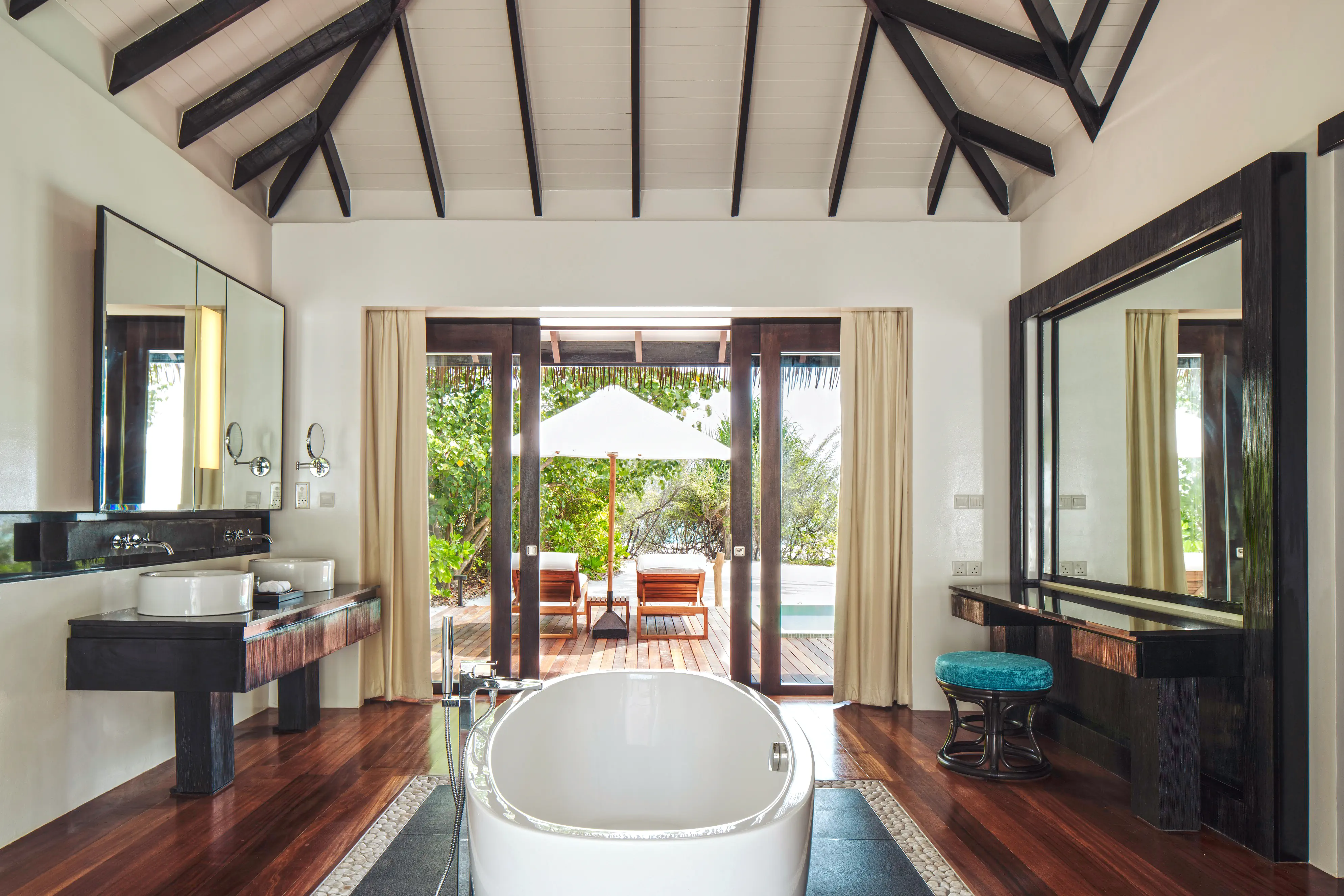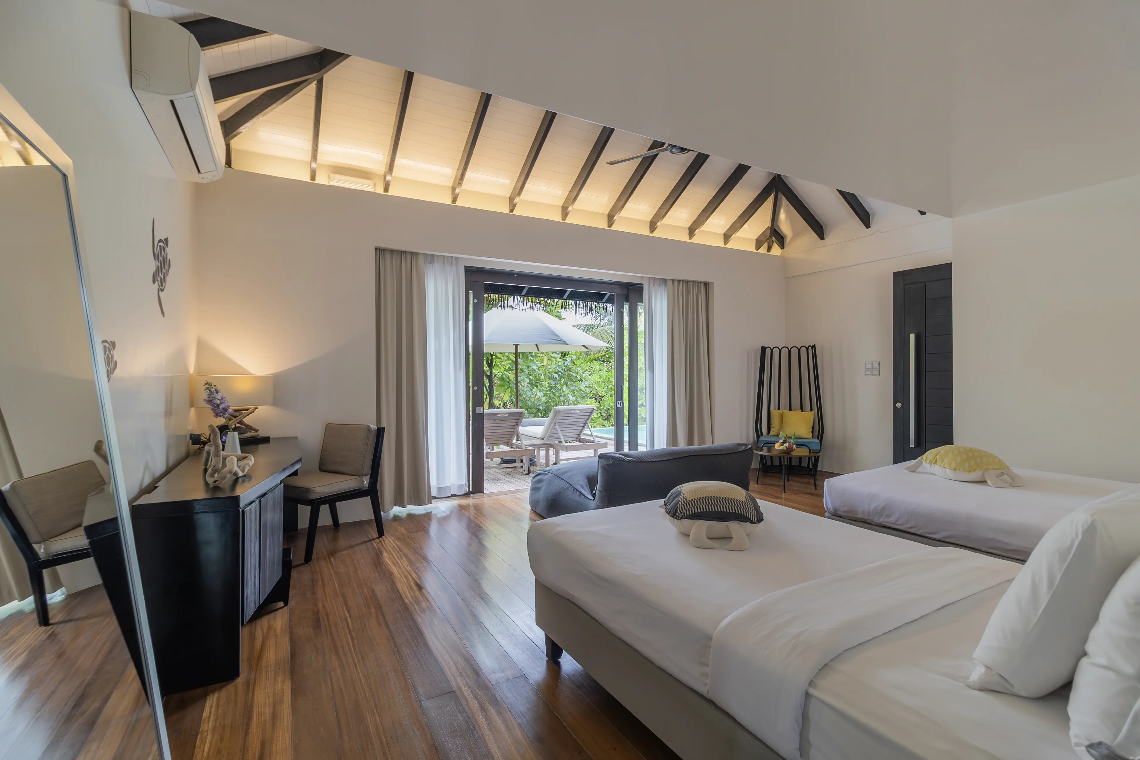 Dla max. 4 osób, Przestrzeń zewnętrzna: Taras, Kanały telewizji: Angielski, Telefon w pokoju, wanna i prysznic , Powierzchnia pokoju: ok. 175 m2, Dostawka: łóżko standardowe, Rodzaj podłogi: drewno, Sprzątanie codziennie, 1 sypialnia, Maksymalna liczba osób dorosłych: 3, Maksymalna liczba dzieci: 2, Concierge (bezpłatnie), Frontalny widok na plażę,Widok na lagunę, Liczba łazienek: 1, Liczba toalet: 1, Zestaw do parzenia kawy i herbaty, Klimatyzacja: Klimatyzacja indywidualna