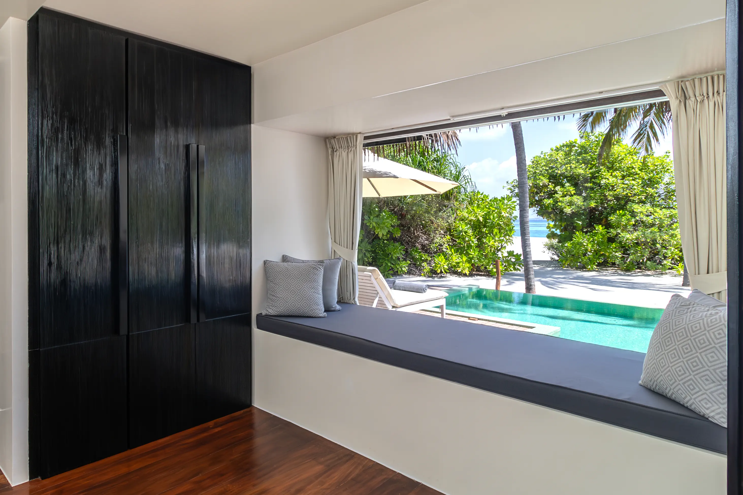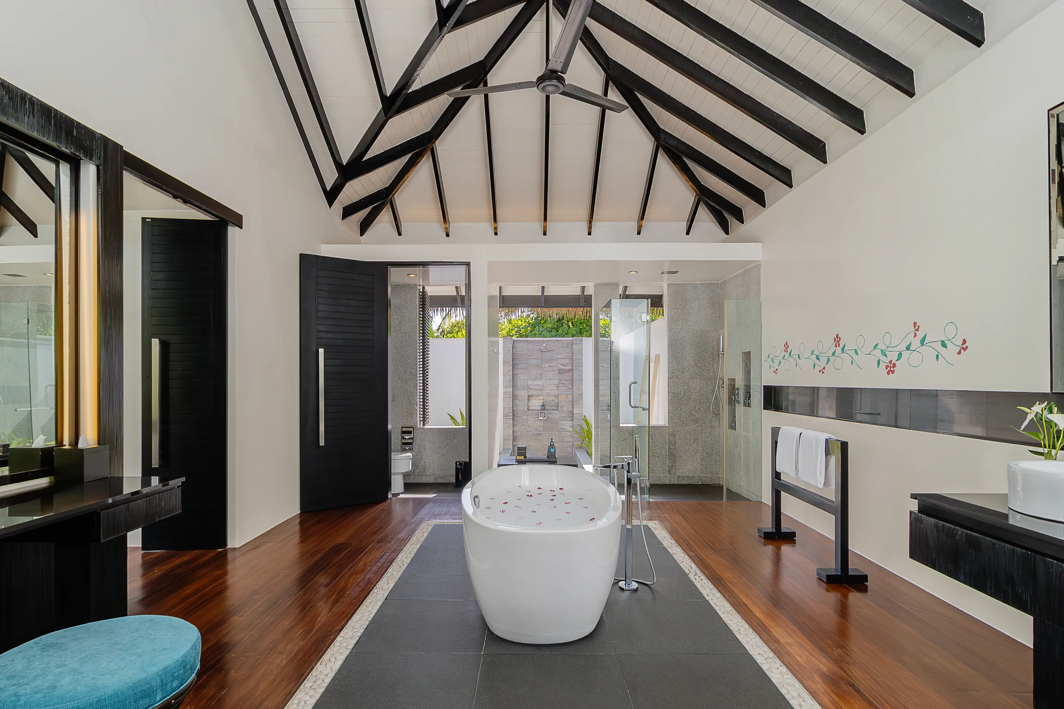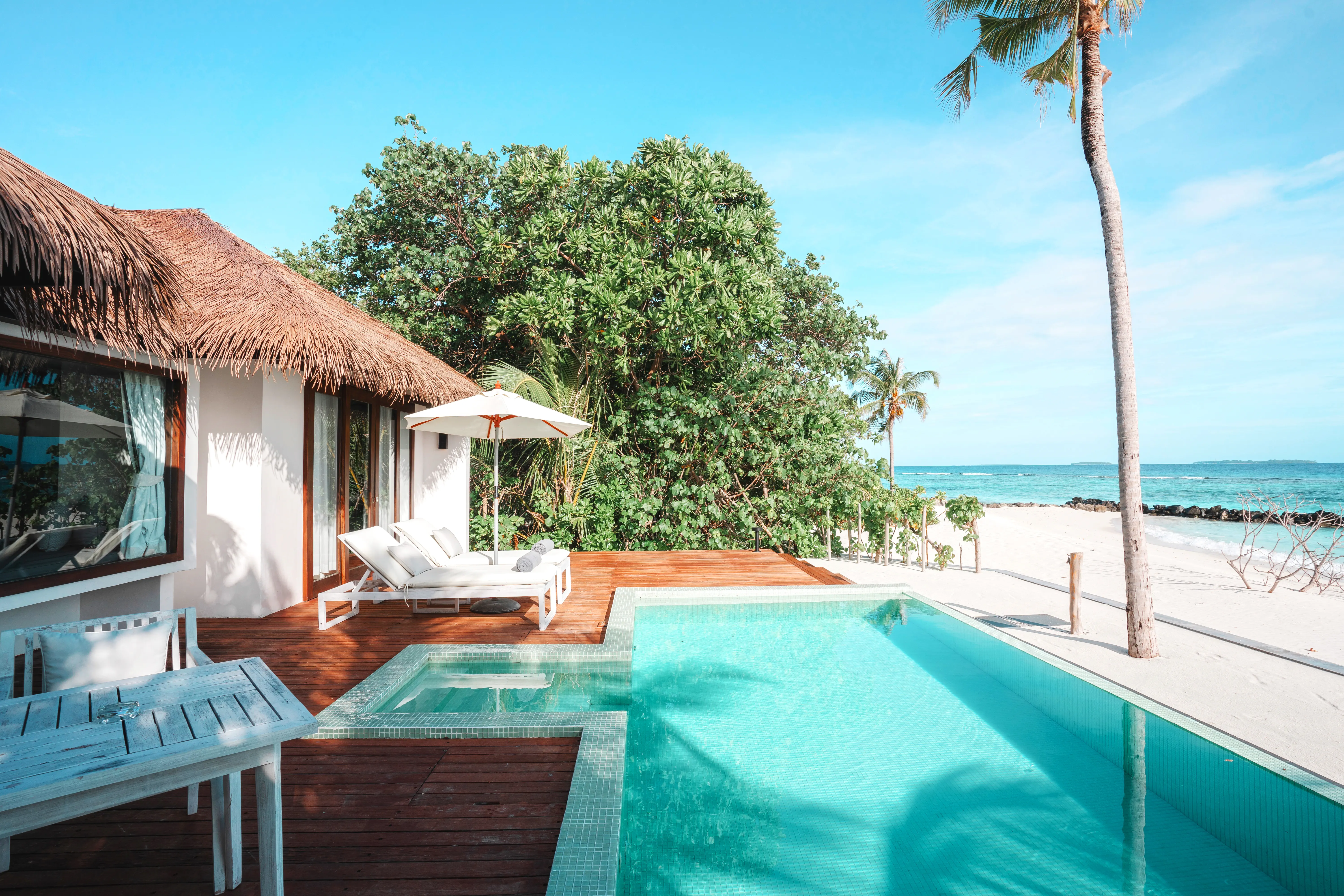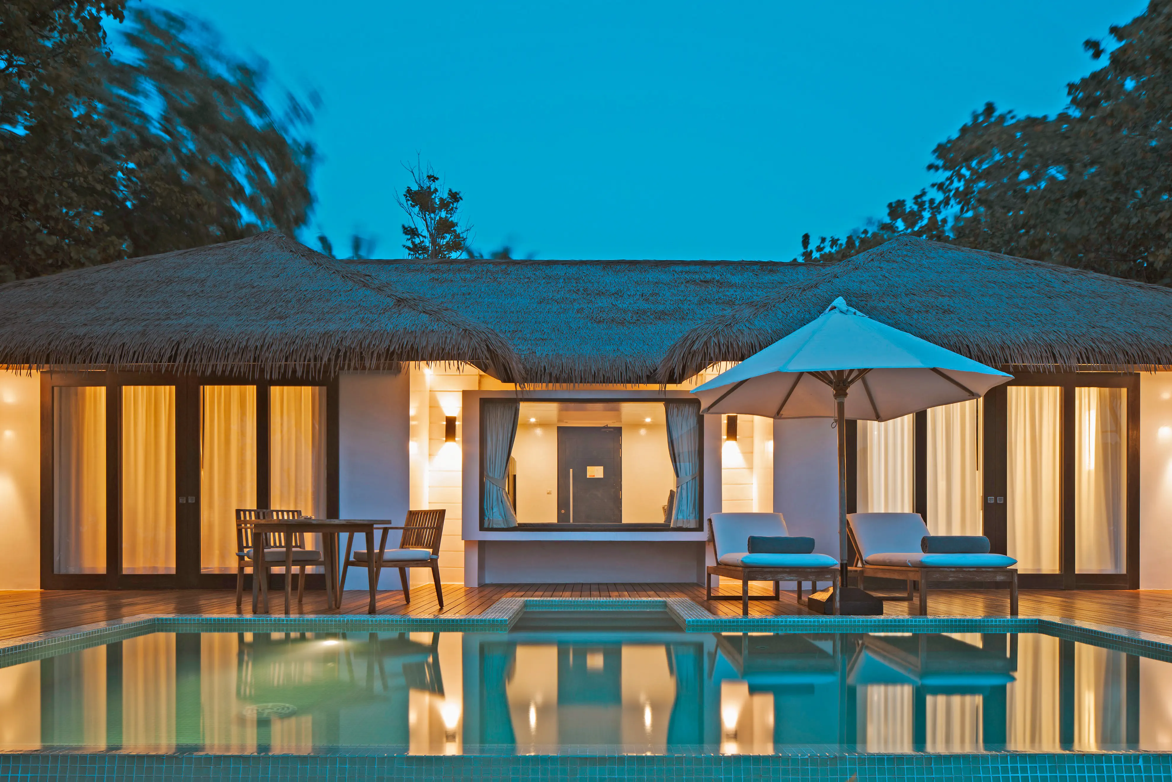 Dla max. 4 osób, Przestrzeń zewnętrzna: Taras, Kanały telewizji: Angielski, Telefon w pokoju, wanna i prysznic , Powierzchnia pokoju: ok. 175 m2, Dostawka: łóżko standardowe, Rodzaj podłogi: drewno, Sprzątanie codziennie, 1 sypialnia, Maksymalna liczba osób dorosłych: 3, Maksymalna liczba dzieci: 2, Concierge (bezpłatnie), Frontalny widok na plażę,Widok na lagunę, Liczba łazienek: 1, Liczba toalet: 1, Zestaw do parzenia kawy i herbaty, Klimatyzacja: Klimatyzacja indywidualna