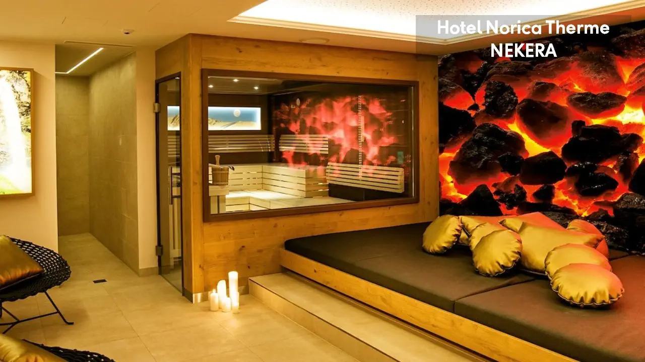 w hotelu: Celtyckie Relax-Spa (1600 m2), oferujące basen termalny (8x12 m, 32 stopnie, 7.00 - 20.00), kabinę na podczerwień, 3 sauny, solankową łaźnię parową, prysznice wrażeń, 3 pomieszczenia relaksacyjne (w godz. 15-19:00). Dodatkowo dla Gości hotelu nielimitowany wstęp do Alpejskich Term (Alpentherme Gastein, pow. 36.000 m2), połączonych z hotelem łącznikiem. W termach: świat saun (bio-sauna, sauna na podczerwień, sauna fińska, łaźnia parowa, Laconium), przestronne pomieszczenia do relaksu i wypoczynku, "szmaragdowe" jezioro z wodą termalną (pow. 1300 m2), basen "Krystaliczna Woda Górska" o pow. 370 m2 (oba baseny bez chlorowanej wody), eleganckie saunarium tylko dla kobiet, strefa dla rodzin z basenem ze zjeżdżalniami, nową 28-metrową zjeżdżalnią z czterema torami, leniwą rzeką, multimedialnym demem wrażeń, pokojem gier video i TV, pokojem zabaw dla najmłodszych. Oddziela strefa wypoczynku z basenem zewnętrznym i wewnętrznym, basenem sportowym, basenem dla aktywnych, basenem z wodą źródlaną, łożami wodnymi, gejzerami, masażami podwodnymi. Za dodatkową opłatą: masaże i zabiegi kosmetyczno-pielęgnacyjne na twarz i ciało.