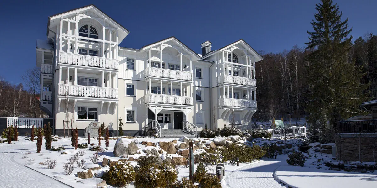 Norweska Dolina Family Resort to nowoczesny kompleks apartamentów w Szklarskiej Porębie. Stylowe wille nawiązują architekturą do tradycyjnej zabudowy norweskiej. Każda willa ma swój wyjątkowy charakter i jest indywidualnie zaprojektowana. Przy budowie zostały wykorzystane najwyższej jakości naturalne materiały oraz liczne rozwiązania ekologiczne. Do wyboru są eleganckie i świetnie wyposażone apartamenty, restauracja oraz strefa wellness i rozrywki. To świetna baza wypadowa na całoroczne górskie wycieczki i zimowe szaleństwo. Udogodnienia: Basen kryty, Jacuzzi, Sauna, Wellness, Bar / restauracja, Sala zabaw dla dzieci, Pokój gier, Kącik zabaw dla dzieci, Ogród / Park, Plac zabaw dla dzieci, Kręgielnia, Pobyt z pupilem, Winda, Parking, Płatność kartą, Małpi gaj