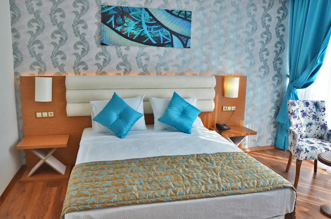 Zlokalizowane są w 2 budynkach (liczba pięter: 5, liczba wind: 4) Typy pokoi: - sea view standard dla max. 2 os.: 1 sypialnia, klimatyzacja centralna, sejf (bezpłatny), zestaw do parzenia kawy/herbaty (płatne), minibar (pusty), TV, telefon, łazienka (prysznic, WC), balkon - family 2 bedrooms sea view dla max. 4 os.: 2 sypialnie, drzwi łączące między pokojami, klimatyzacja centralna, sejf (bezpłatny), zestaw do parzenia kawy/herbaty (płatne), minibar (pusty), TV, telefon, łazienka (prysznic, WC), balkon