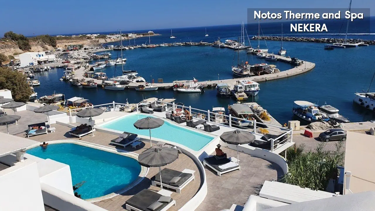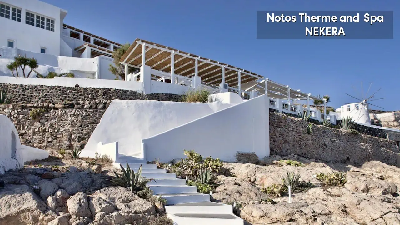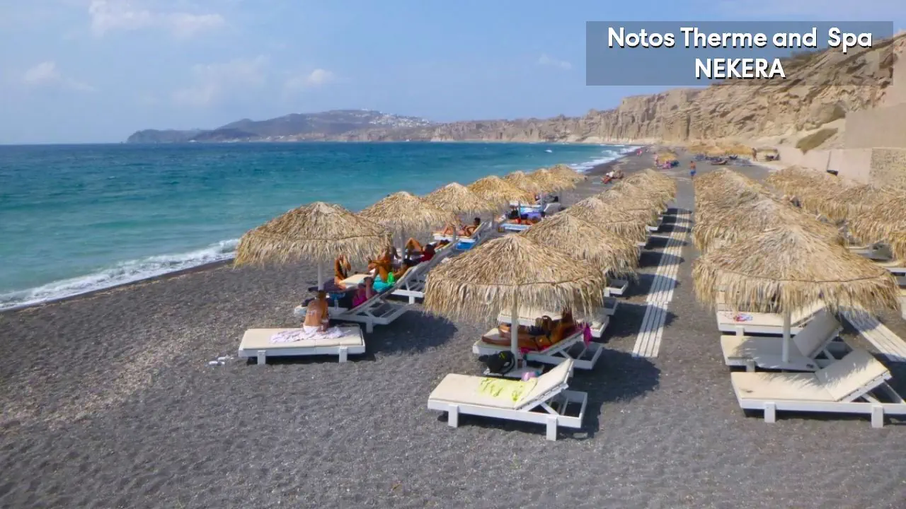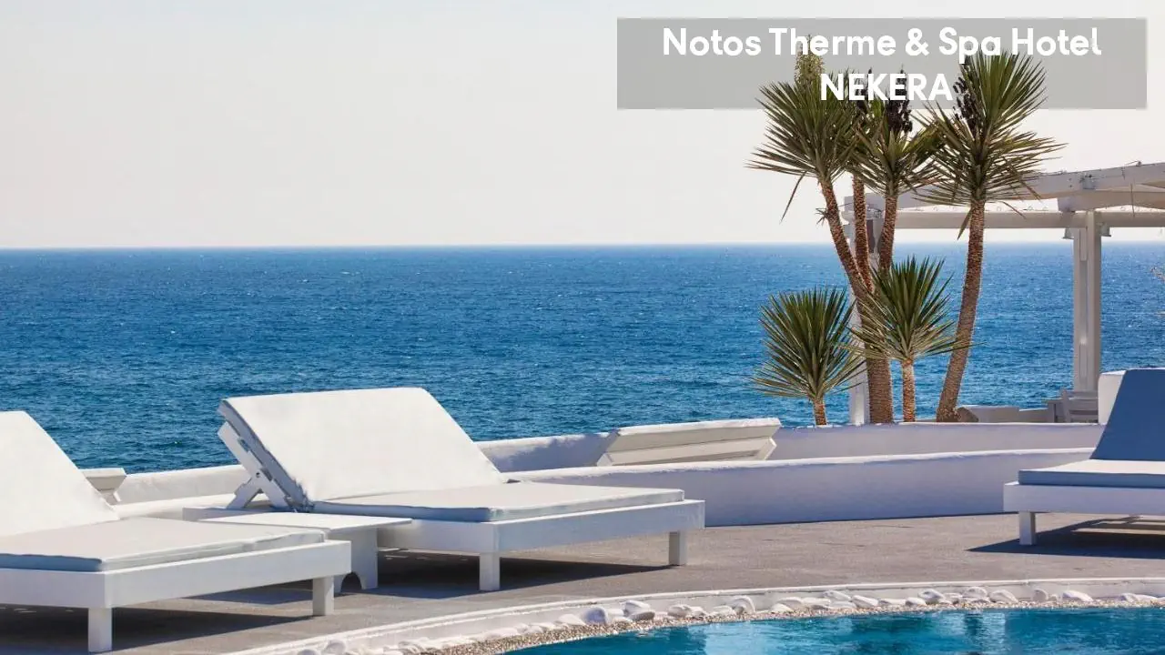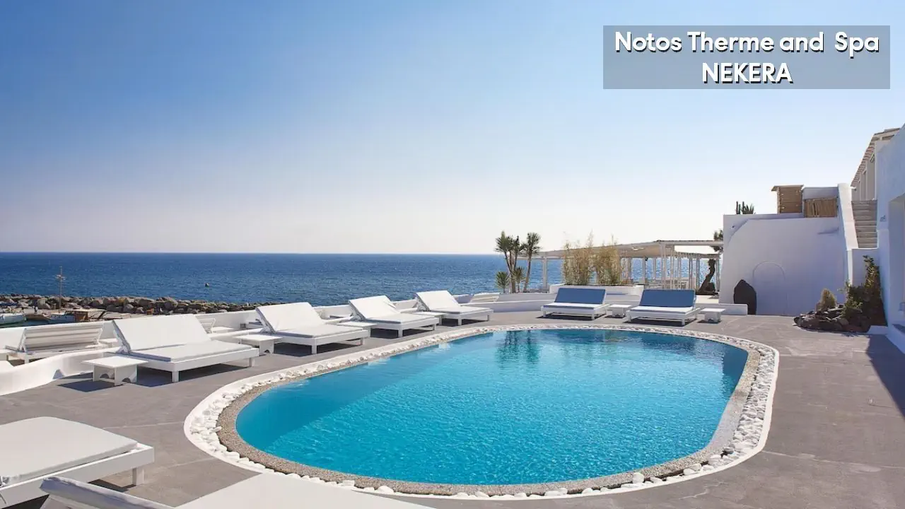Notos Therme & Spa na Santorini to luksusowy kompleks, który łączy nowoczesność z tradycyjną grecką gościnnością. Położony w malowniczym regionie wyspy, hotel oferuje komfortowe pokoje z widokiem na morze lub okoliczne krajobrazy. Goście mogą zrelaksować się w strefie wellness, korzystając z basenów termalnych, sauny oraz zabiegów spa. W restauracji serwowane są wyśmienite dania kuchni śródziemnomorskiej, a bliskość plaży i lokalnych atrakcji sprawia, że Notos Therme & Spa jest doskonałym wyborem na relaksujący wypoczynek.