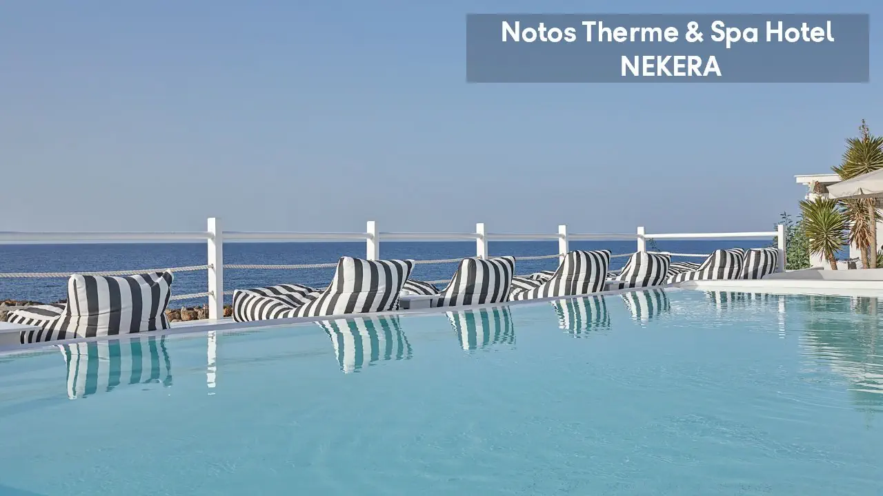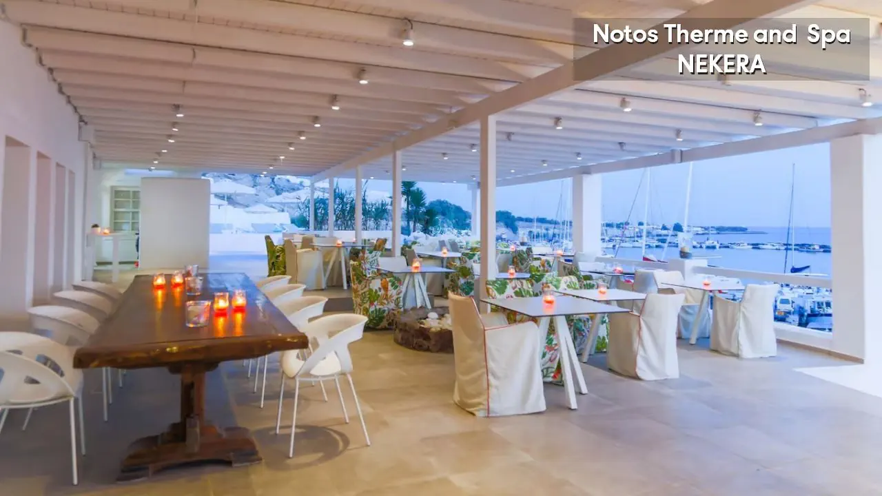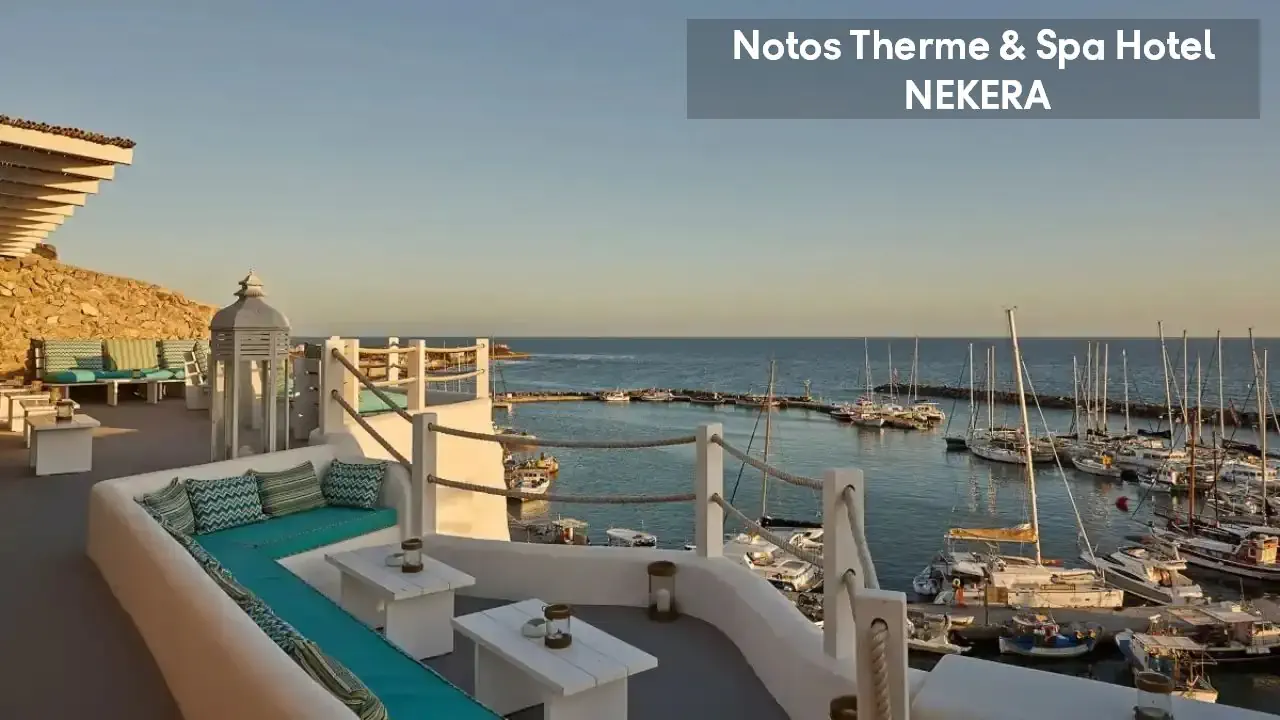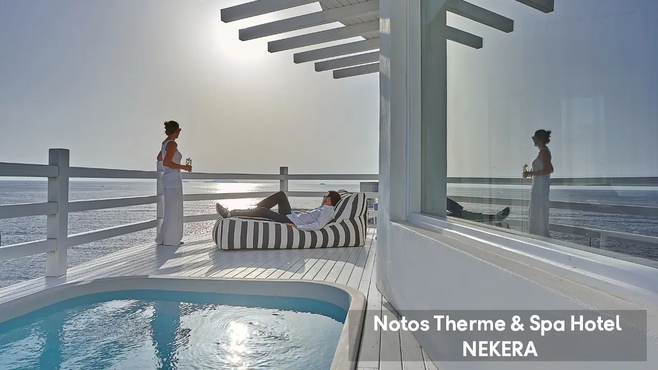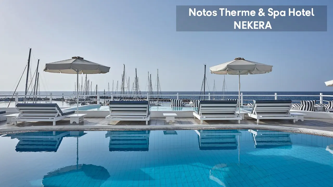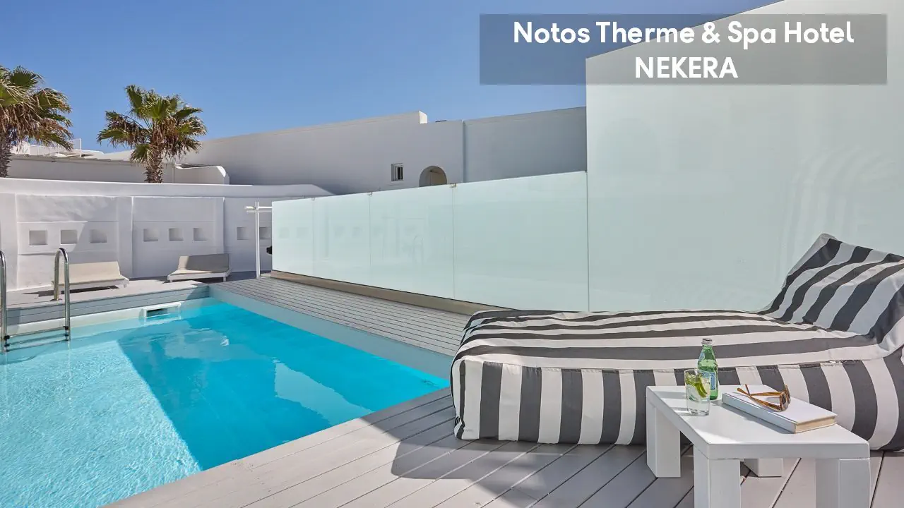 Notos Therme & Spa na Santorini to luksusowy kompleks, który łączy nowoczesność z tradycyjną grecką gościnnością. Położony w malowniczym regionie wyspy, hotel oferuje komfortowe pokoje z widokiem na morze lub okoliczne krajobrazy. Goście mogą zrelaksować się w strefie wellness, korzystając z basenów termalnych, sauny oraz zabiegów spa. W restauracji serwowane są wyśmienite dania kuchni śródziemnomorskiej, a bliskość plaży i lokalnych atrakcji sprawia, że Notos Therme & Spa jest doskonałym wyborem na relaksujący wypoczynek.