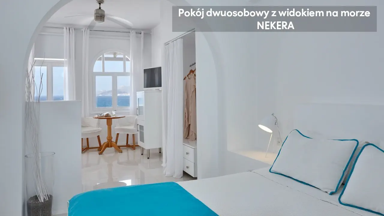 • czterogwiazdkowy • 30 pokoi i suit • 1 budynek (2 piętra) zbudowany tarasowo • recepcja 24h • lobby • klimatyzacja • w tradycyjnym cykladzkim stylu